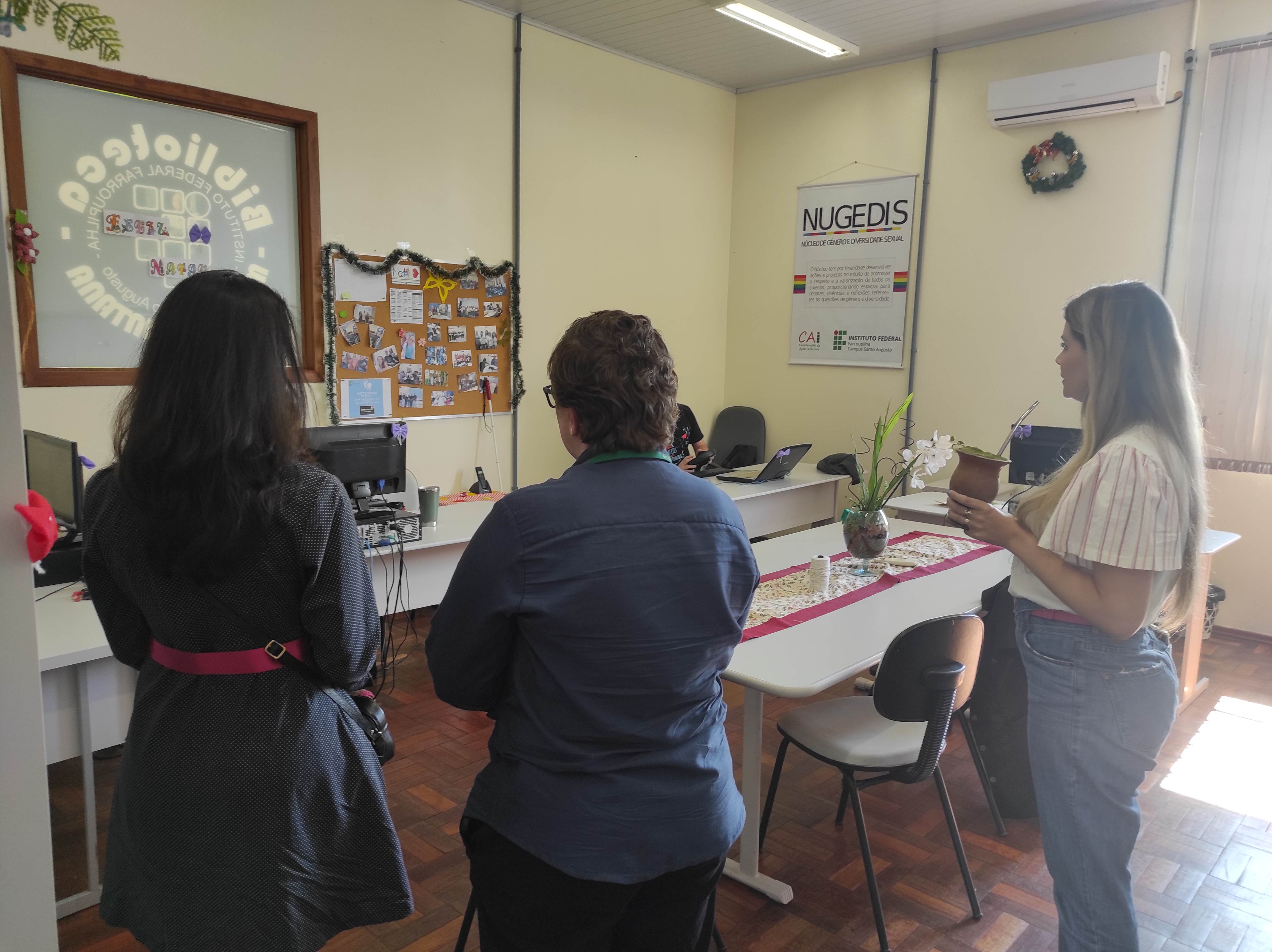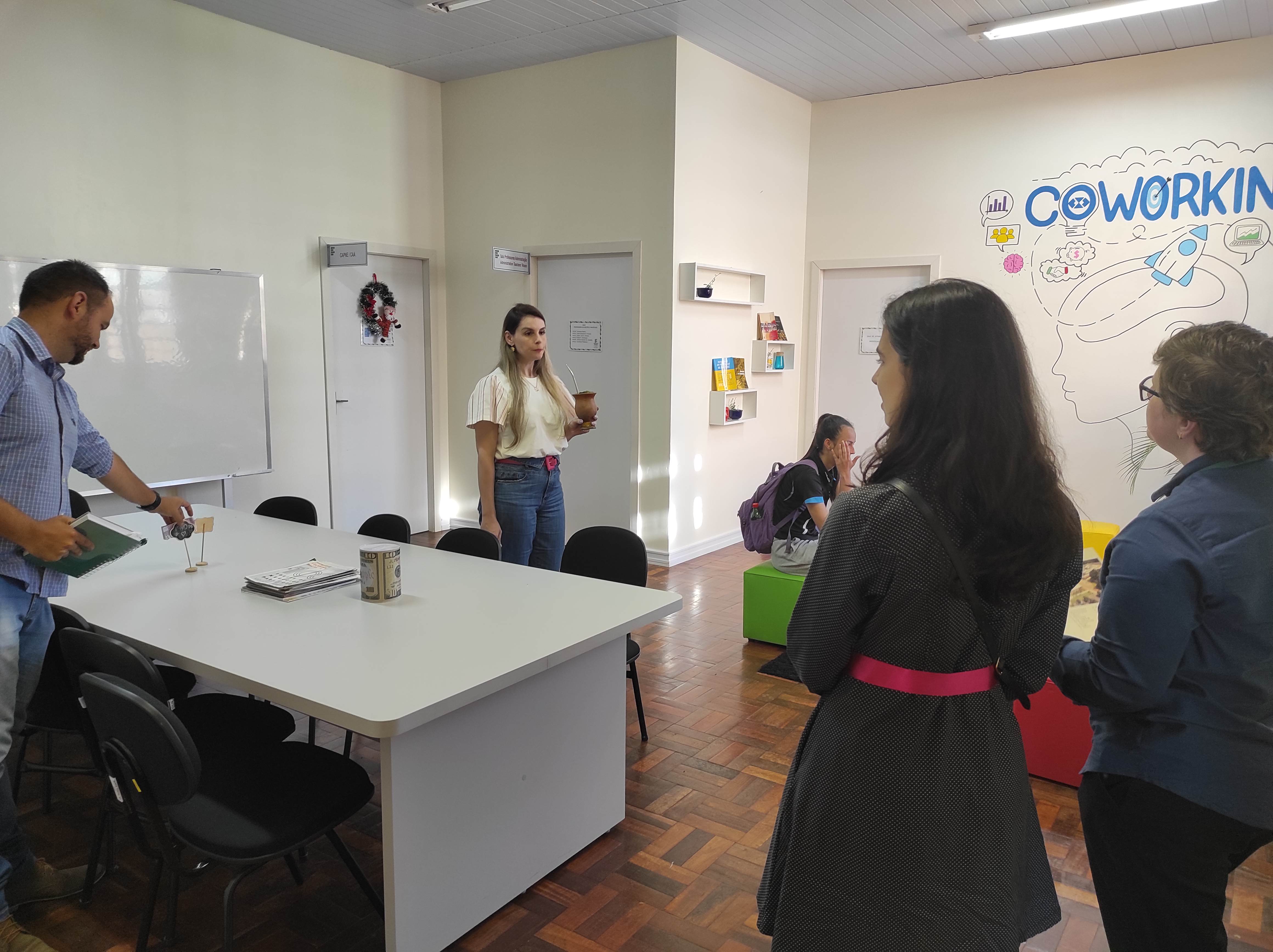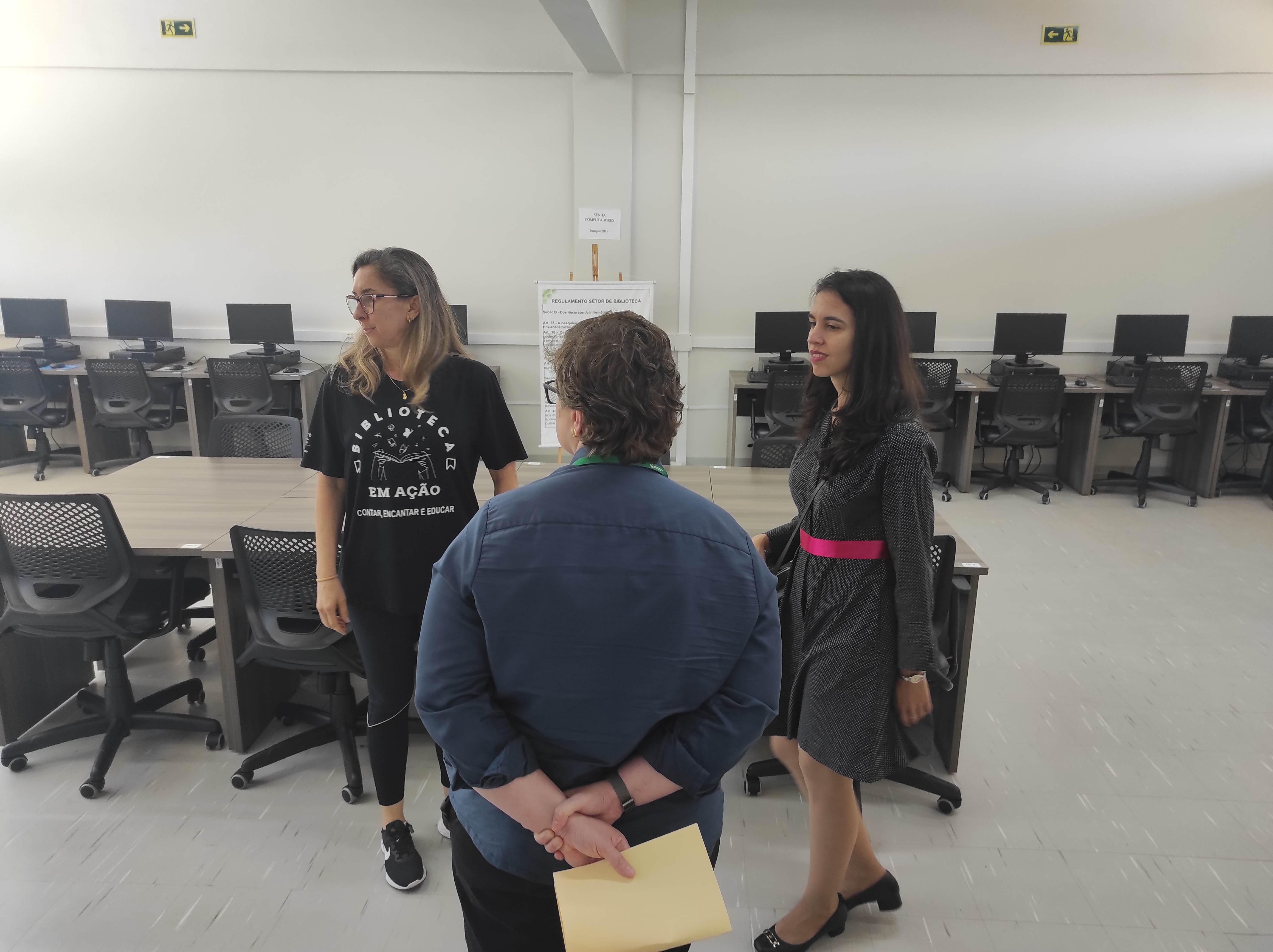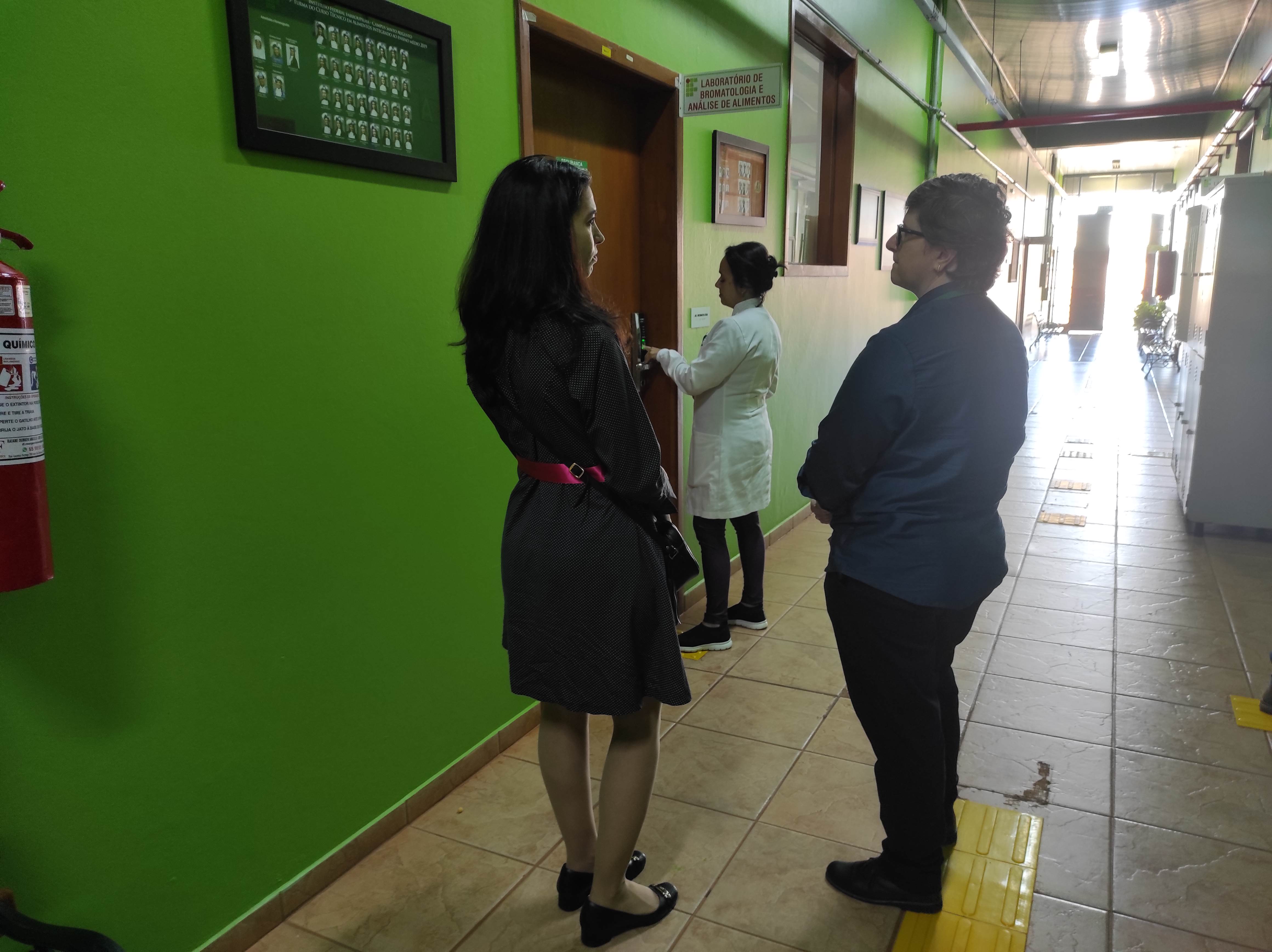 Após breve reunião no Gabinete da Direção, a Drª Lais foi guiada em uma visita pelo Campus, passando pelo auditório, cooworking, laboratórios de informática e alimentos, salas de aula, refeitório, Coordenação de Assistência Estudantil e Setor de Saúde, Prédio de Ciência e Tecnologia, Ginásio de Esportes e por fim a Biblioteca Mario Quintana.