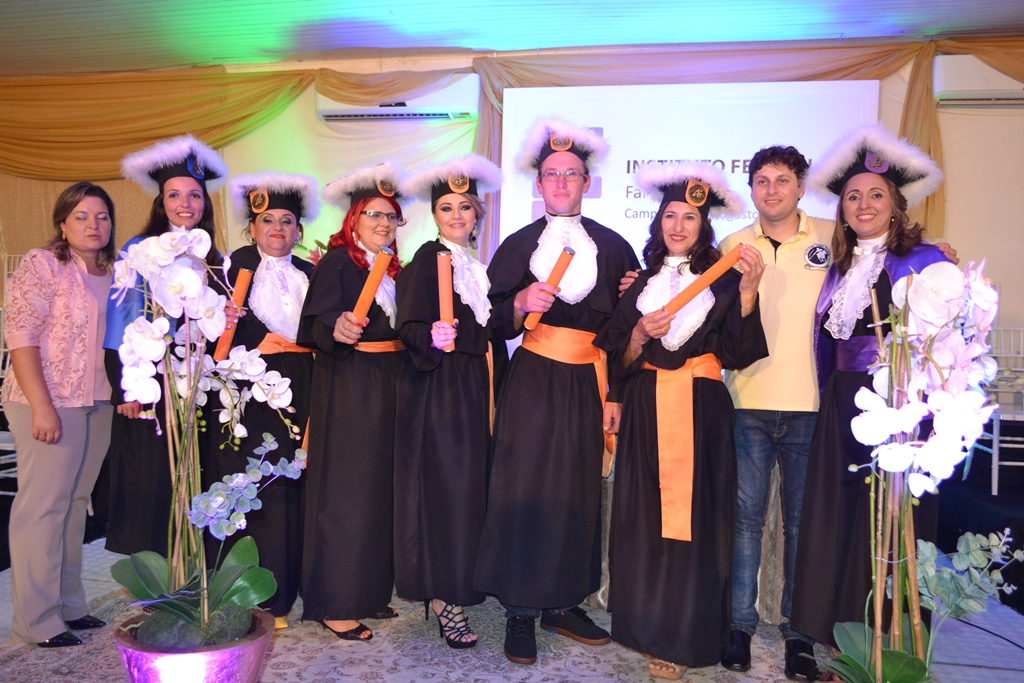 No dia 06, foi realizada a certificação da 1ª turma do curso Técnico em Agroindústria, integrado ao ensino médio, na modalidade PROEJA, e das 6ªs turmas dos cursos Técnicos integrados ao Ensino Médio de Alimentos e Informática, e contou, além dos 50 concluintes, com a presença, da Diretora Geral do IFFar - Campus Santo Augusto, Verlaine Denize Brasil Gerlach; da Diretora de Ensino, Márcia Fink; do vice-prefeito de Santo Augusto, Marcelo Both; da paraninfa de Agroindústria, Janice Pinheiro Boeira e da patronesse Camila Carvalho Lago; da paraninfa de Alimentos, Adriane Sperança e da patronesse Juliana Mezomo Cantarelli; da paraninfa de Informática e da patronesse Cláudia Fumaco Vitalli, professores homenageados, servidores e familiares dos concluintes.