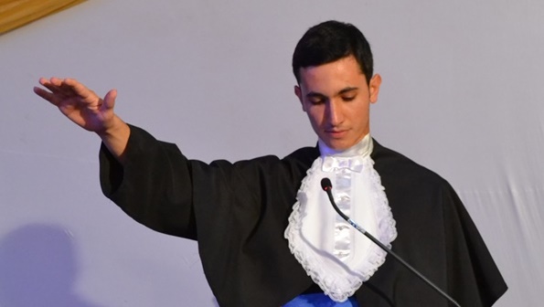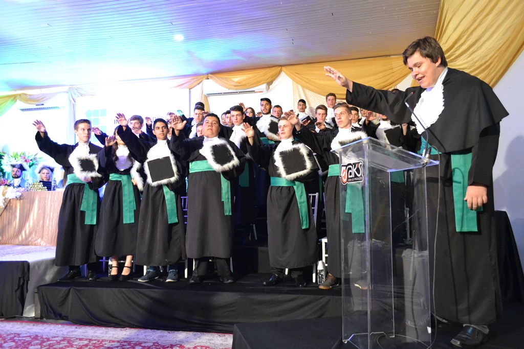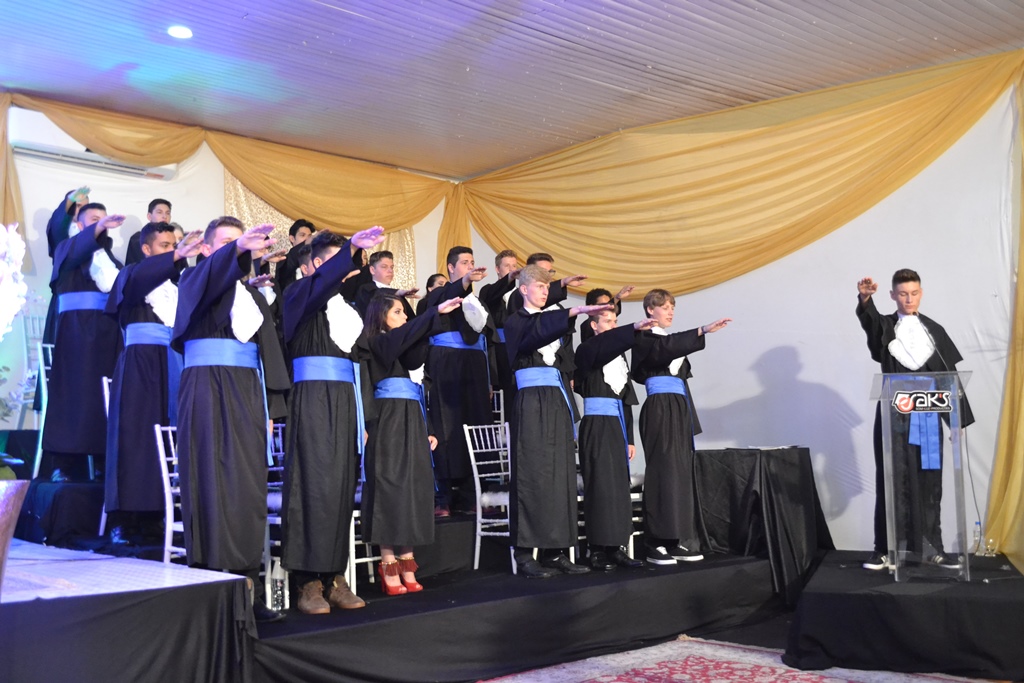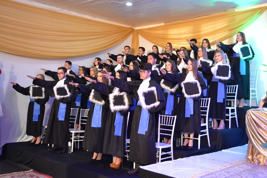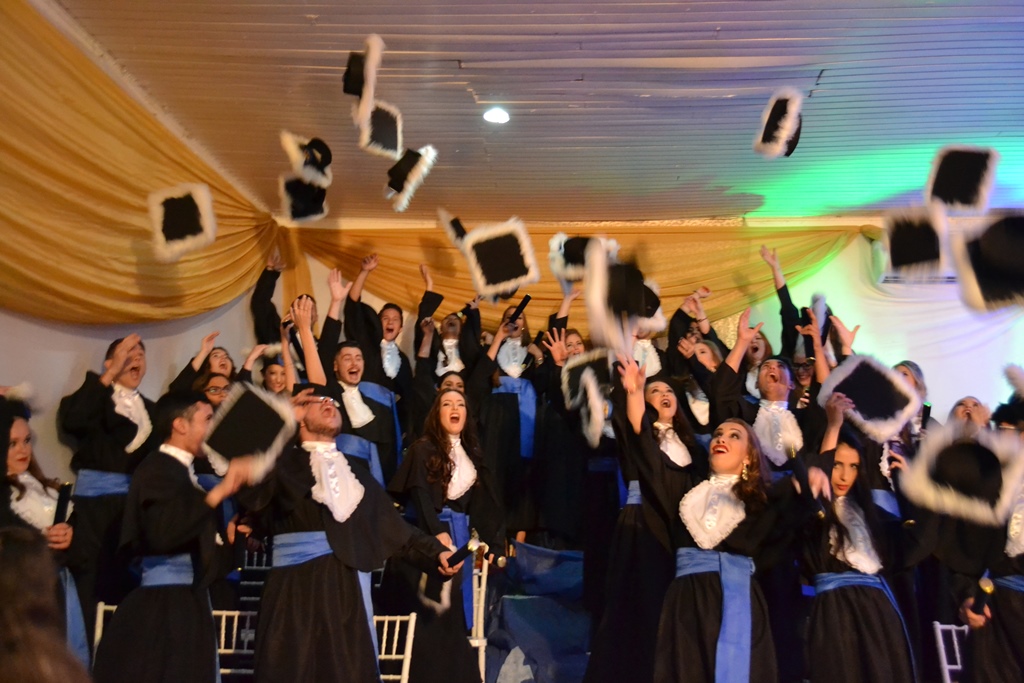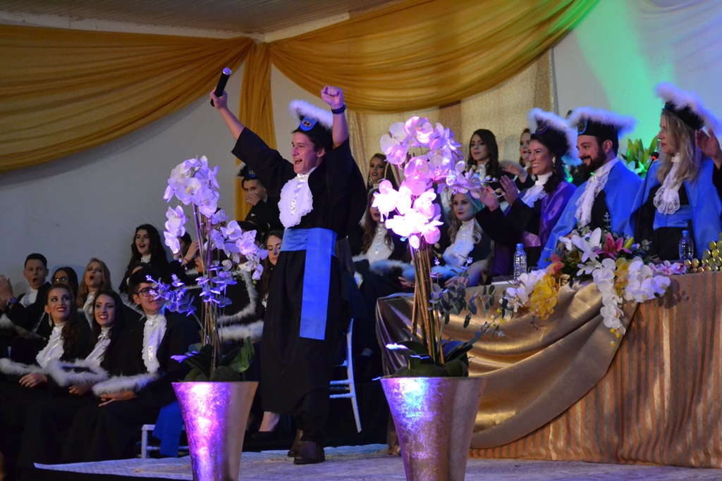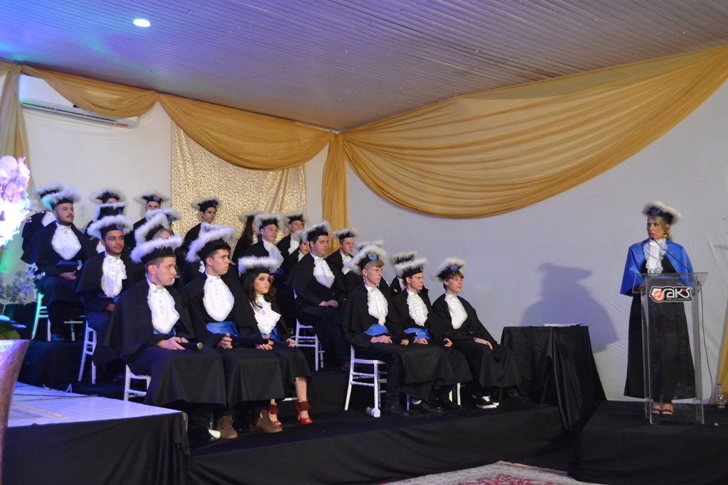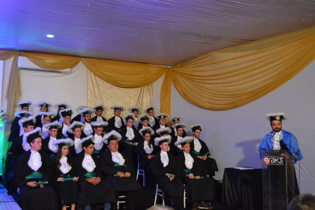No dia 05, foi realizada a certificação da 8ª turma do curso técnico em Administração e da 6ª turma do curso técnico em Agropecuária, integrados ao ensino médio, e contou, além dos 61 concluintes, com a presença, da Diretora Geral do IFFar - Campus Santo Augusto, Verlaine Denize Brasil Gerlach; da Diretora de Ensino, Márcia Fink; do prefeito de Santo Augusto, Naldo Wiegert; da paraninfa de Administração, Simone Beatriz Nunes Ceretta e da patronesse, Lizandra Forgiarini, do Paraninfo de Agropecuária, Hamilton Telles Rosa e da patronesse Adriane Sperança, professores homenageados, servidores e familiares dos concluintes.