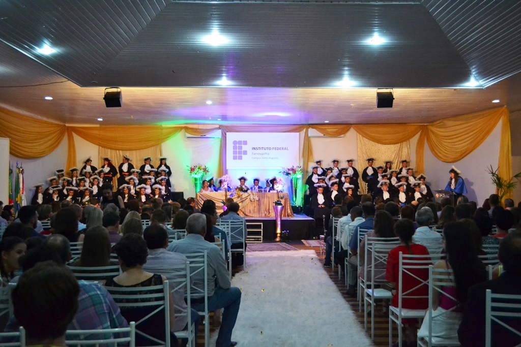 O Instituto Federal Farroupilha - Campus Santo Augusto, realizou nos dias 05 e 06 de janeiro, às 19h, no Clube 7 de Setembro de Santo Augusto, as solenidades de certificação dos Cursos Técnicos integrados ao Ensino Médio de Administração, Agropecuária, Alimentos, Informática e Agroindústria na modalidade PROEJA. As cerimônias, totalmente custeadas pela instituição, foram abertas à comunidade.