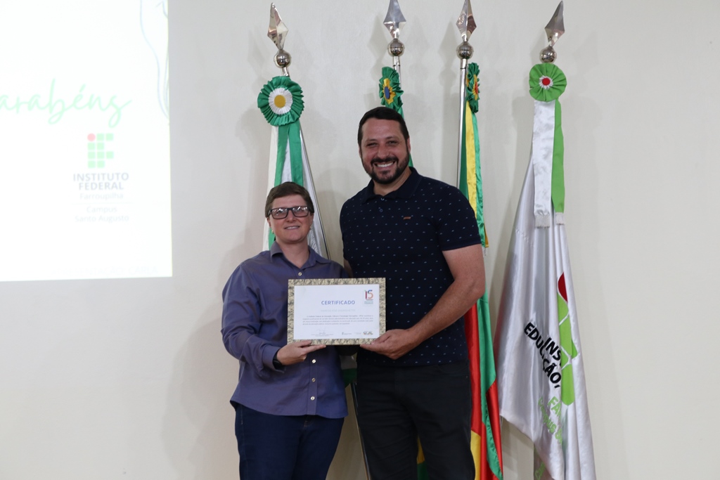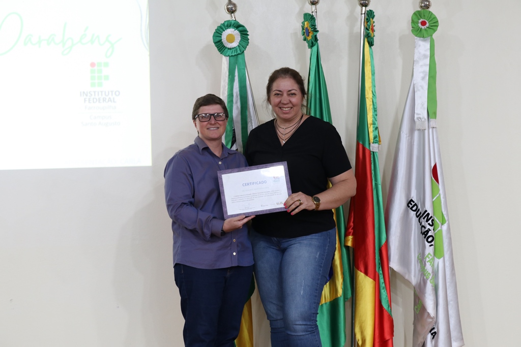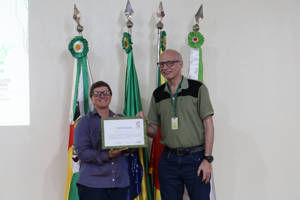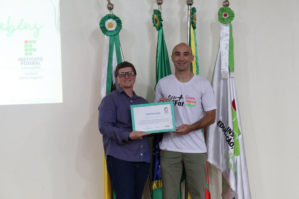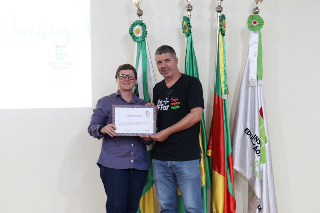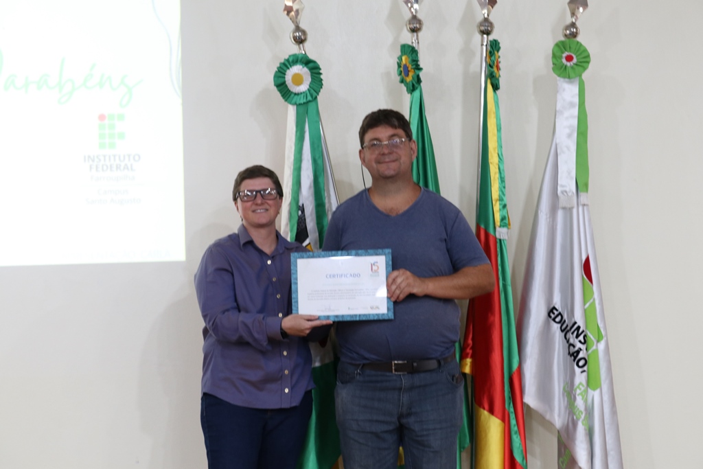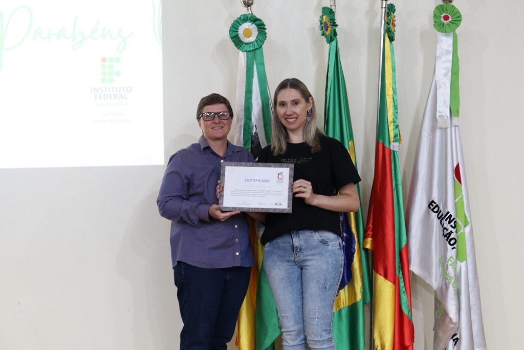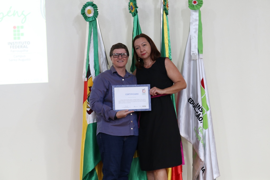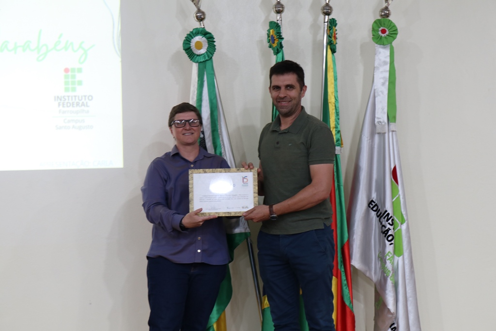 Na ocasião, a Diretora Márcia Fink, entregou para os servidores homenageados um quadro com um certificado, reconhecendo os 15 anos de trajetória profissional, a dedicação e o empenho na construção de uma sociedade mais justa através da educação pública, inclusiva, gratuita e de qualidade.