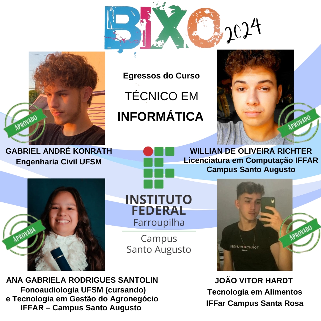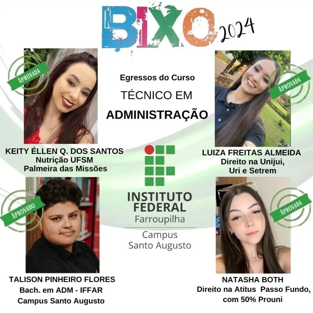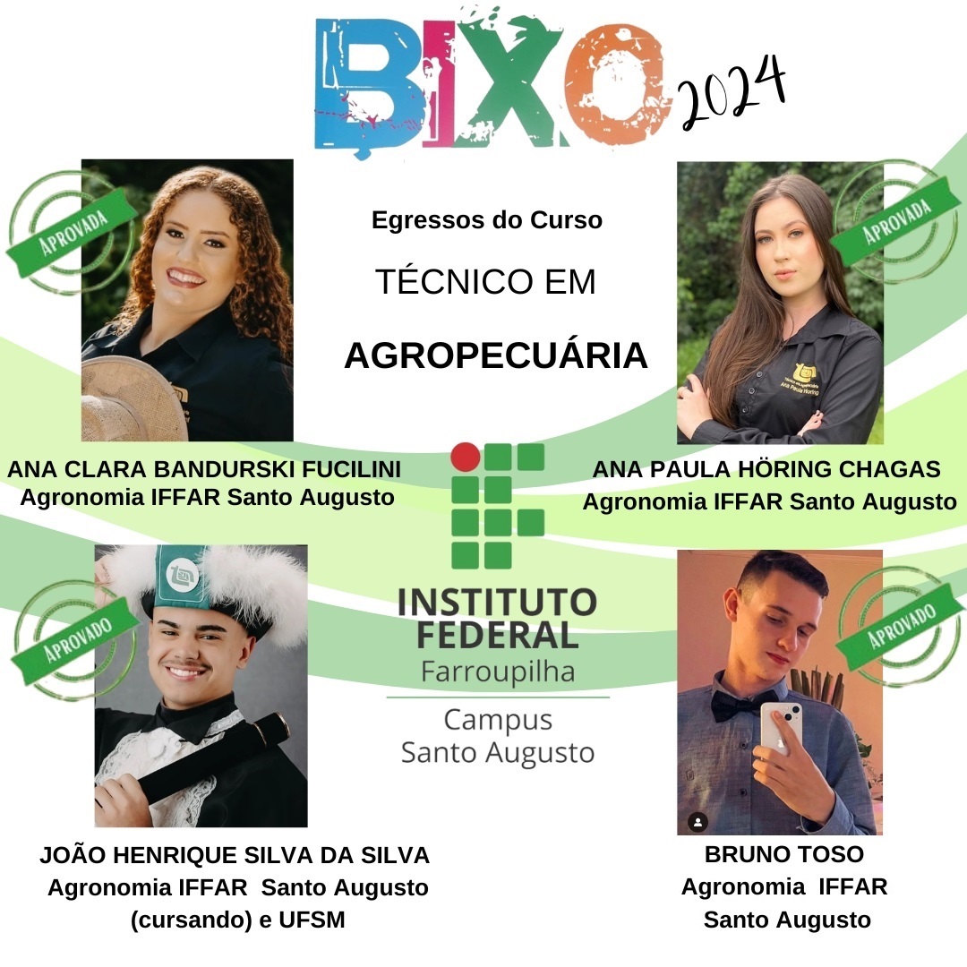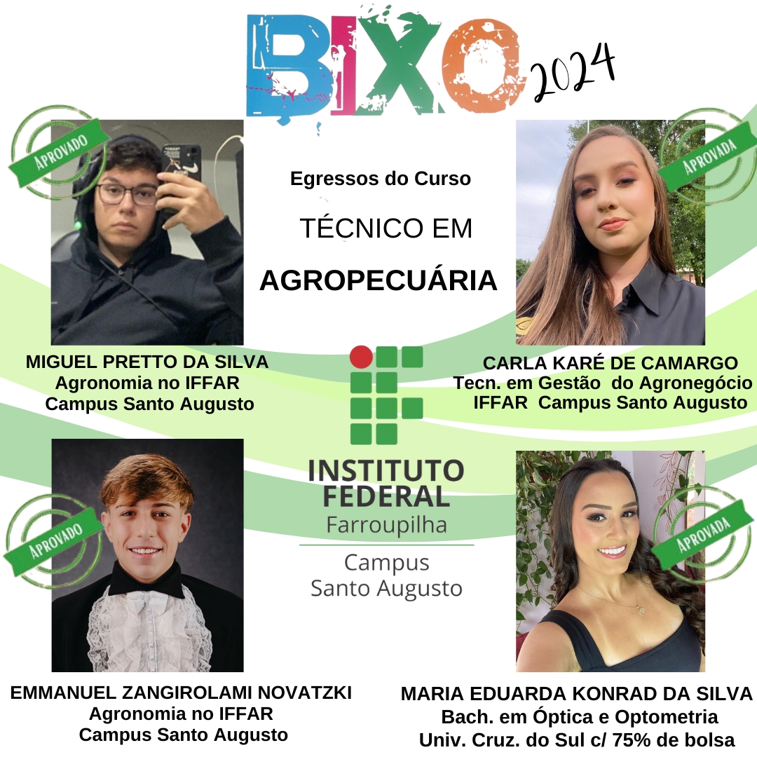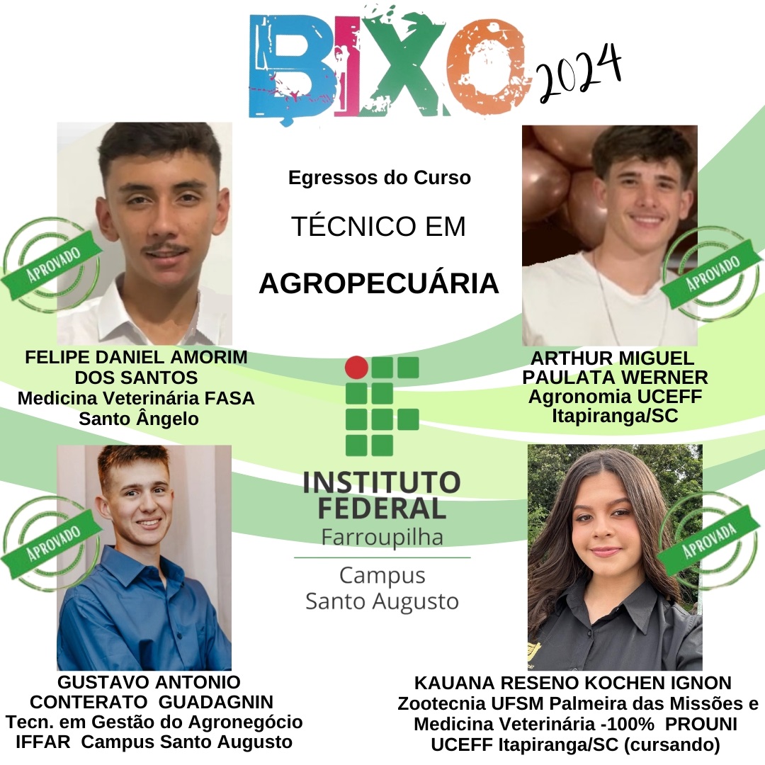 Esse excelente resultado obtido pelos egressos dos cursos técnicos integrados ao ensino médio, reforça a qualidade no ensino ofertado pelo IFFar - Campus Santo Augusto. A instituição parabeniza os estudantes pela conquista e deseja sucesso para todas e todos em suas trajetórias profissionais!