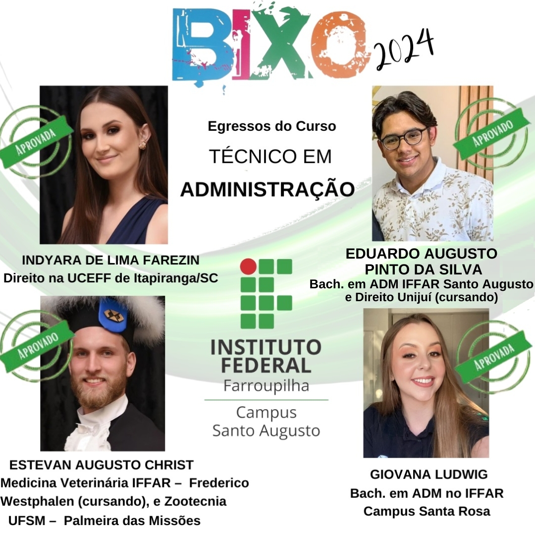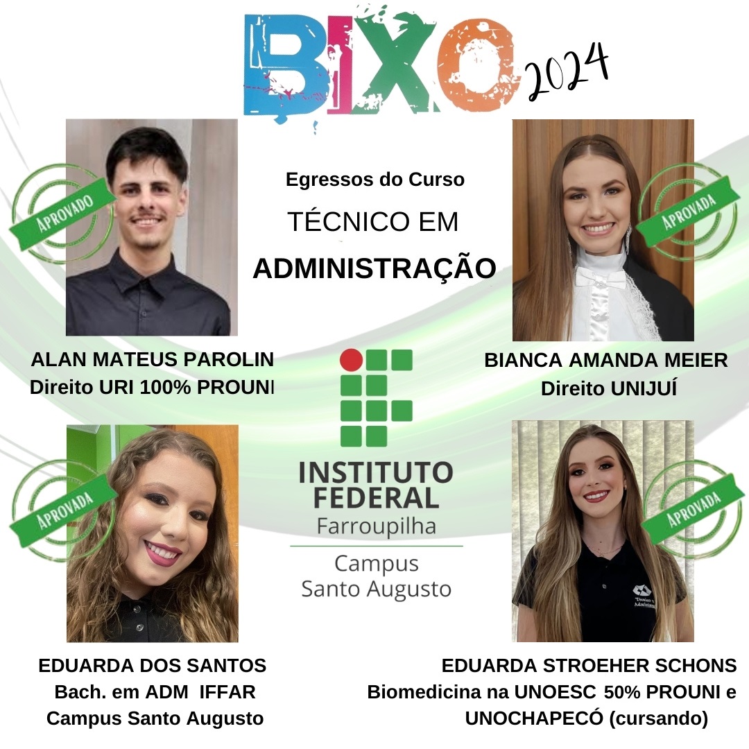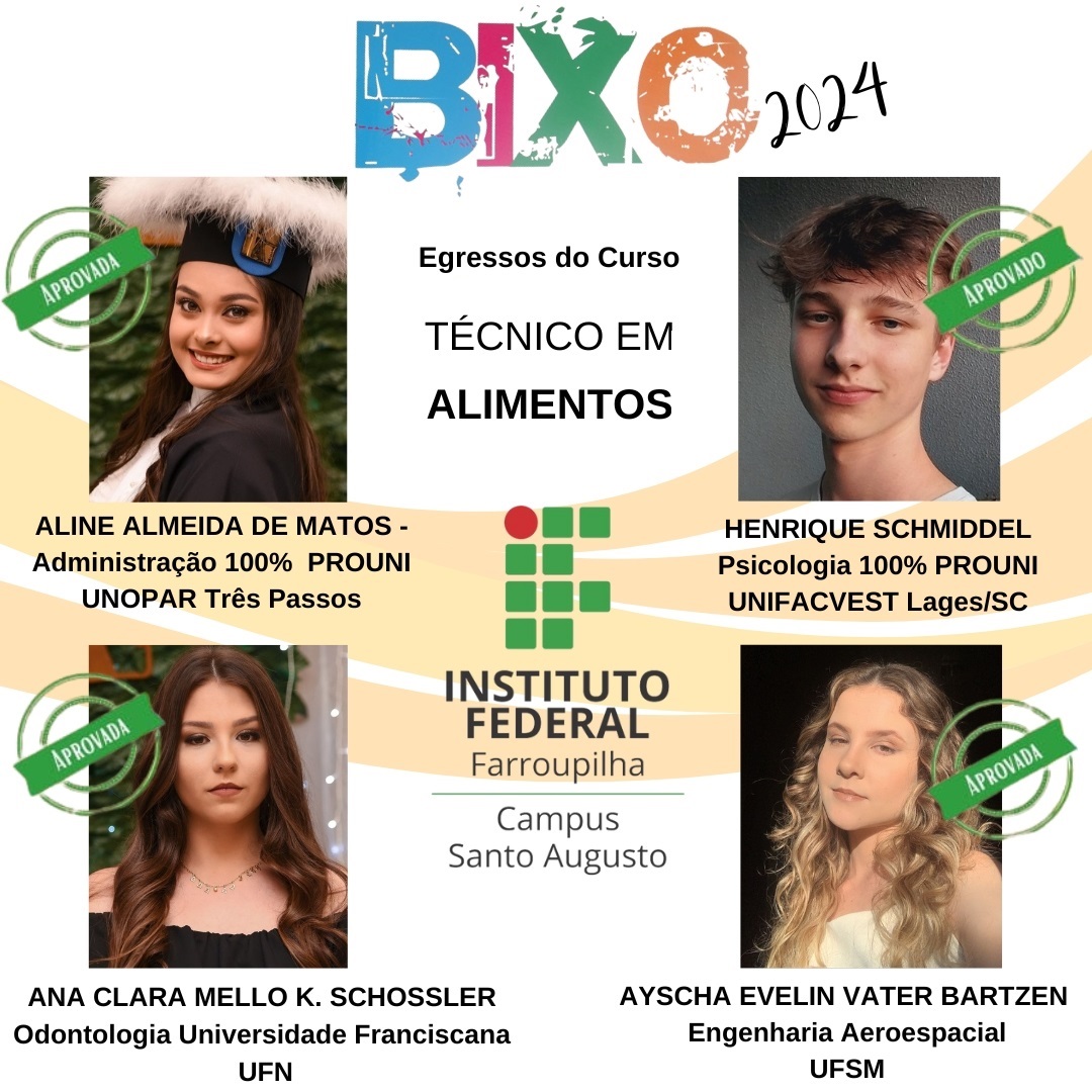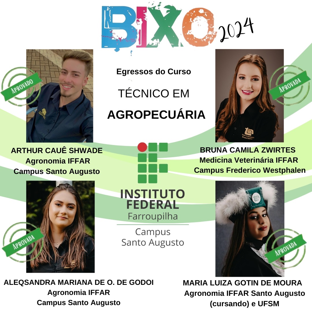 Esse excelente resultado obtido pelos egressos dos cursos técnicos integrados ao ensino médio, reforça a qualidade no ensino ofertado pelo IFFar - Campus Santo Augusto. A instituição parabeniza os estudantes pela conquista e deseja sucesso para todas e todos em suas trajetórias profissionais!