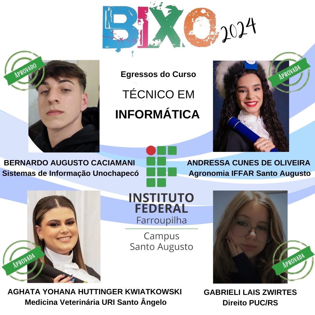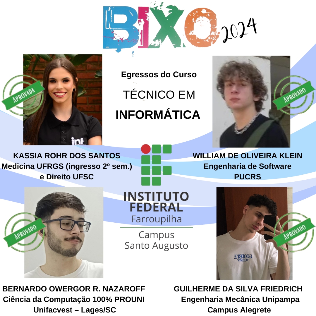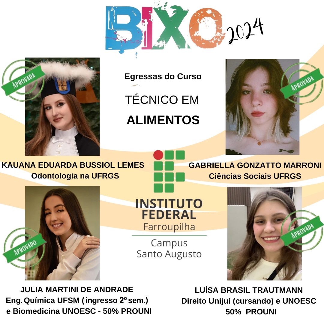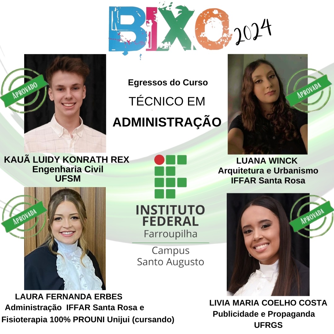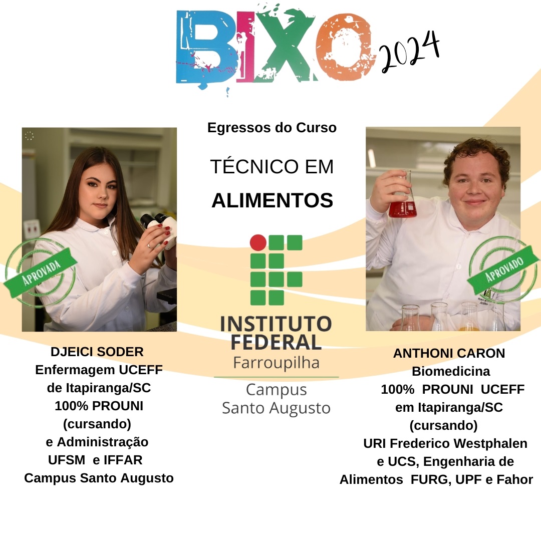 Esse excelente resultado obtido pelos egressos dos cursos técnicos integrados ao ensino médio, reforça a qualidade no ensino ofertado pelo IFFar - Campus Santo Augusto. A instituição parabeniza os estudantes pela conquista e deseja sucesso para todas e todos em suas trajetórias profissionais!