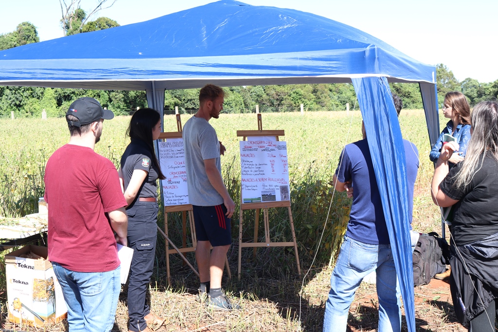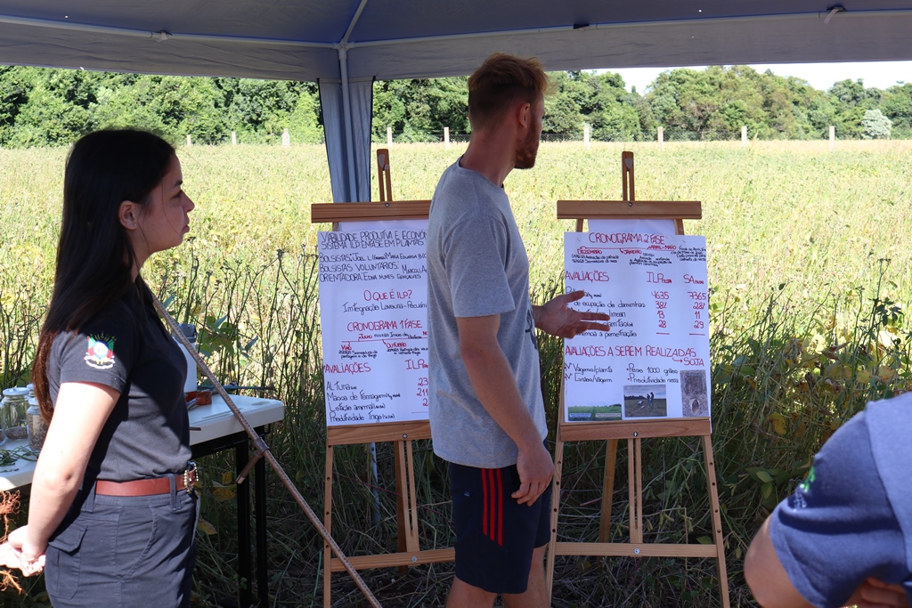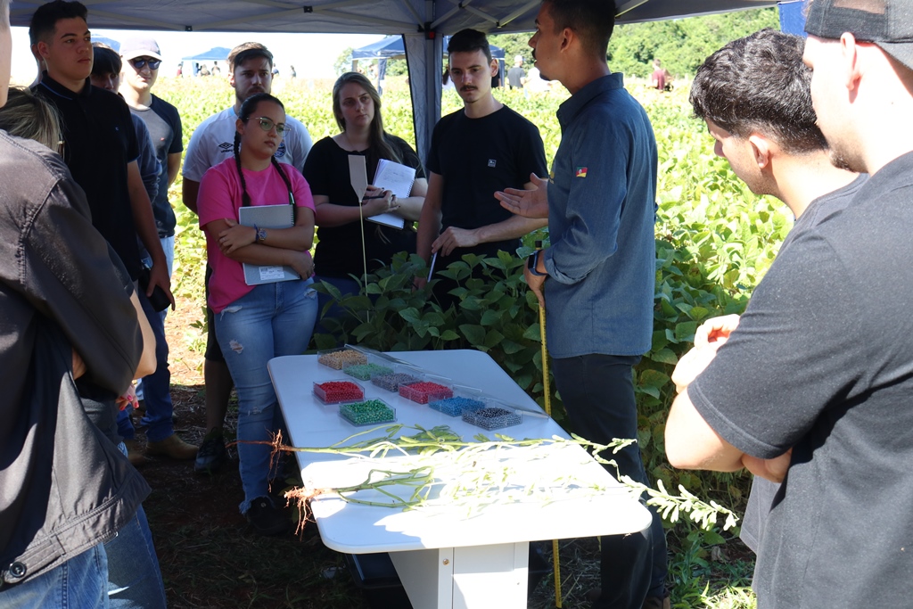 Na oportunidade, foram apresentadas as estações de Desempenho de Cultivares (Luís Fernando Baraldi Porazzi e Martinho José Hoffmann), Toxidez de Alumínio (Alessandra Ströher), Proteína da Soja (Andressa Tolfo Bandeira), Tratamentos de Sementes e Biológicos (Darlan de Lima Dörtelmann), Épocas de Semeadura (Luiz Antônio Mosselin Juliani), Adubação com Micronutrientes (Hernan Elías Stumm) e Integração Lavoura Pecuária – ILP (Joel Ludwig, Maria Eduarda Brair e Amauri Rodrigues do Amaral).