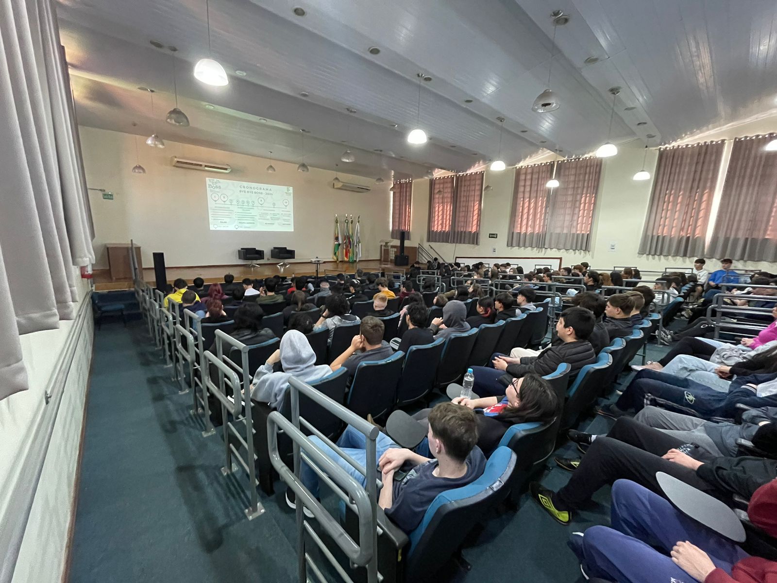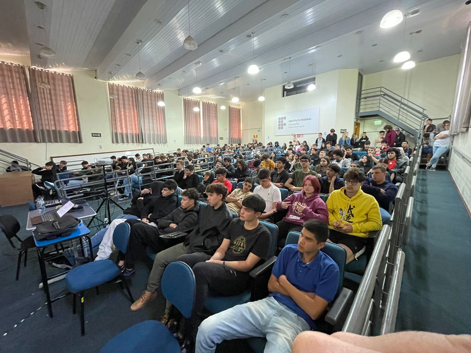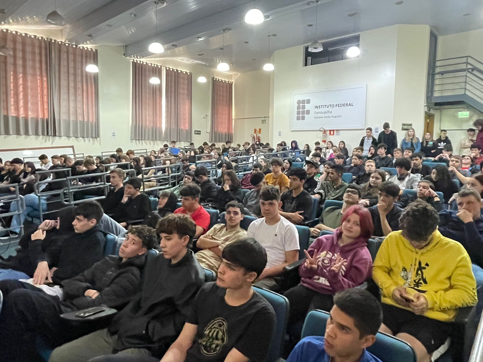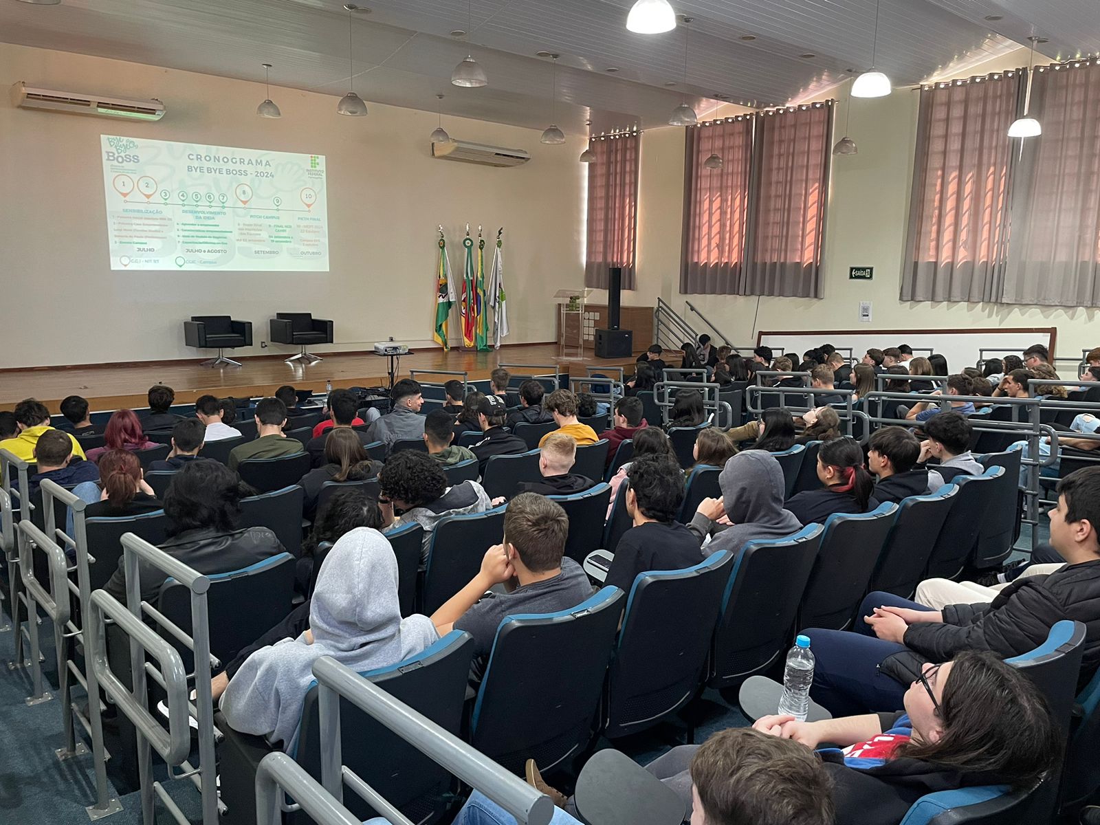 Os estudantes dos cursos técnicos integrados ao ensino médio do IFFar – Campus Santo Augusto participaram na manhã da última quinta-feira, 24 de julho, no auditório da instituição, do Lançamento do VI Desafio de Empreendedorismo e Inovação - Bye Bye Boss 2024.