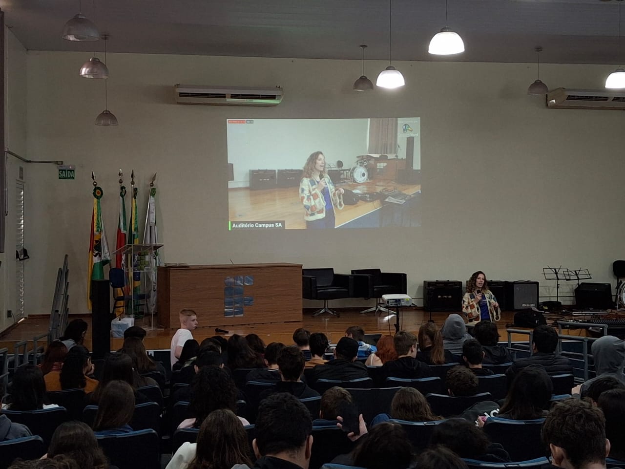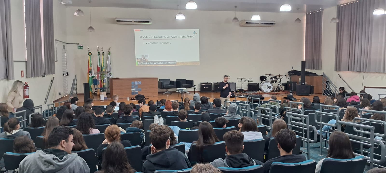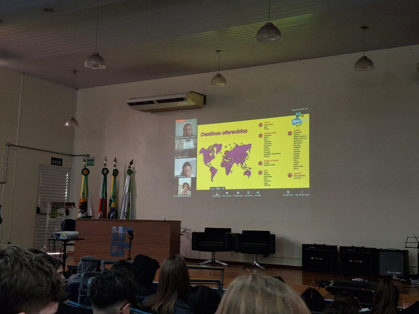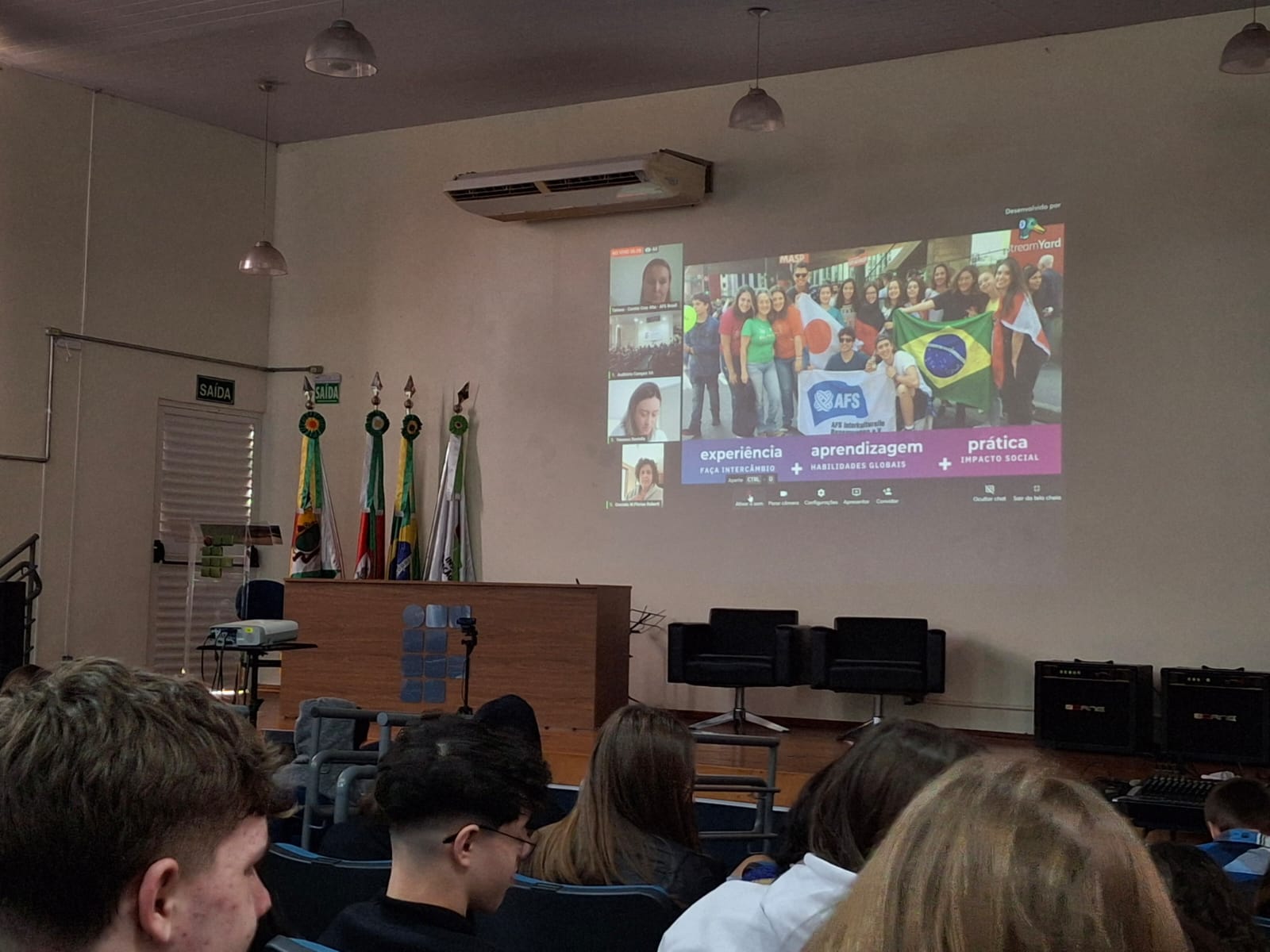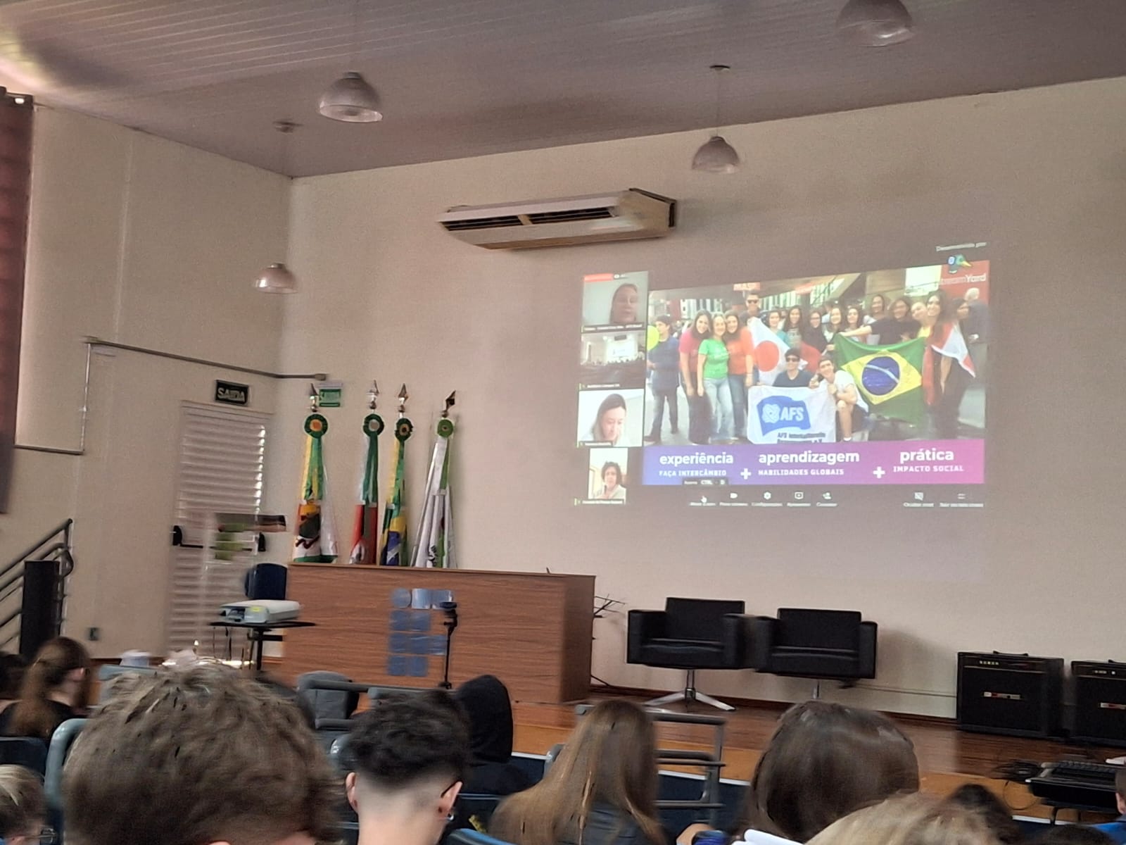 A manhã foi finalizada com a apresentação da AFS Intercultural- Comitê de Cruz Alta. A AFS é uma organização não-governamental internacional, sem fins lucrativos, fundada em 1915 durante a 1ª Guerra Mundial, com o objetivo de criar cidadãos globais. A ONG está no Brasil desde 1956 e atua em 99 países, atualmente. Para conhecer mais sobre a AFS Cultural acesse o site: https://www.afs.org.br/