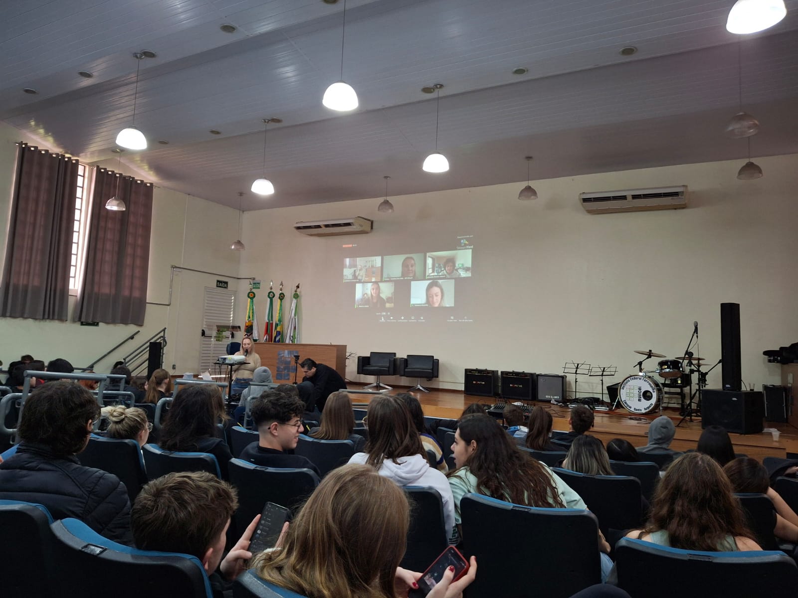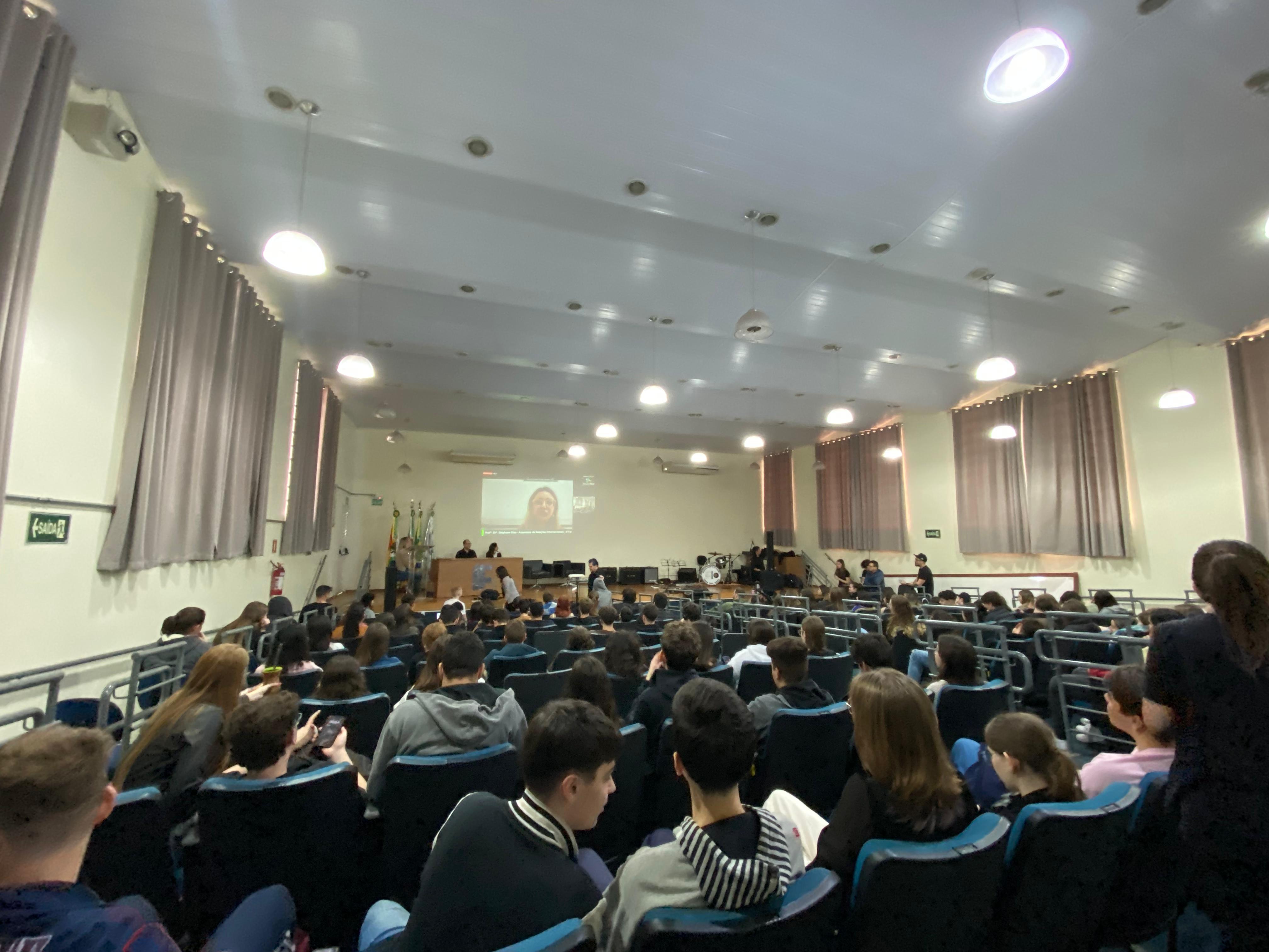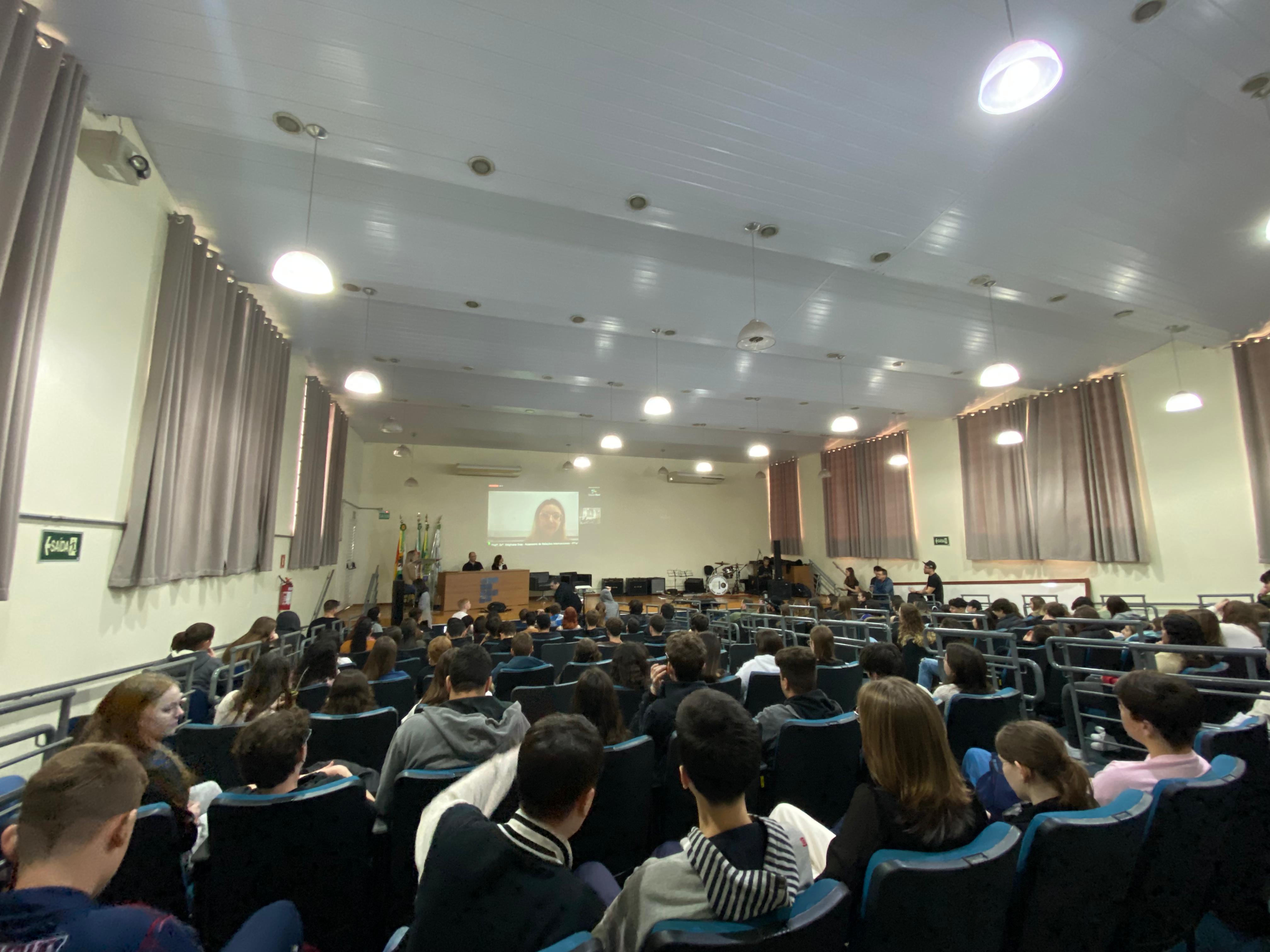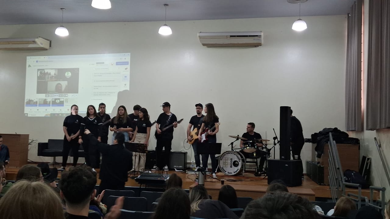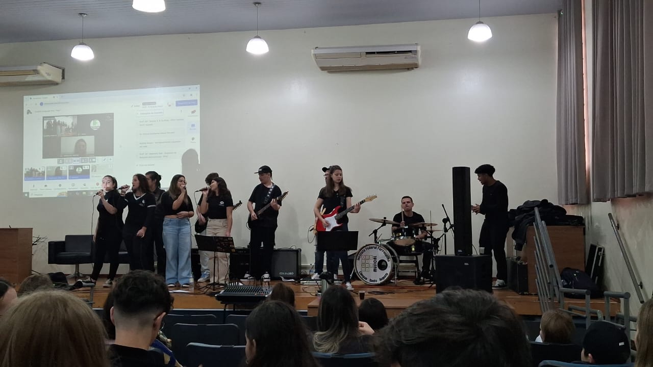 O evento realizado com o objetivo de compartilhar experiências de intercambio e vivências relacionadas à Língua Inglesa, contou com a participação online da Assessora de Relações Internacionais do IFFar, professora Stéphane Rodrigues Dias e teve a apresentação artística da Banda IF Musical.