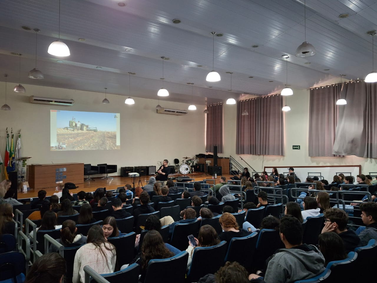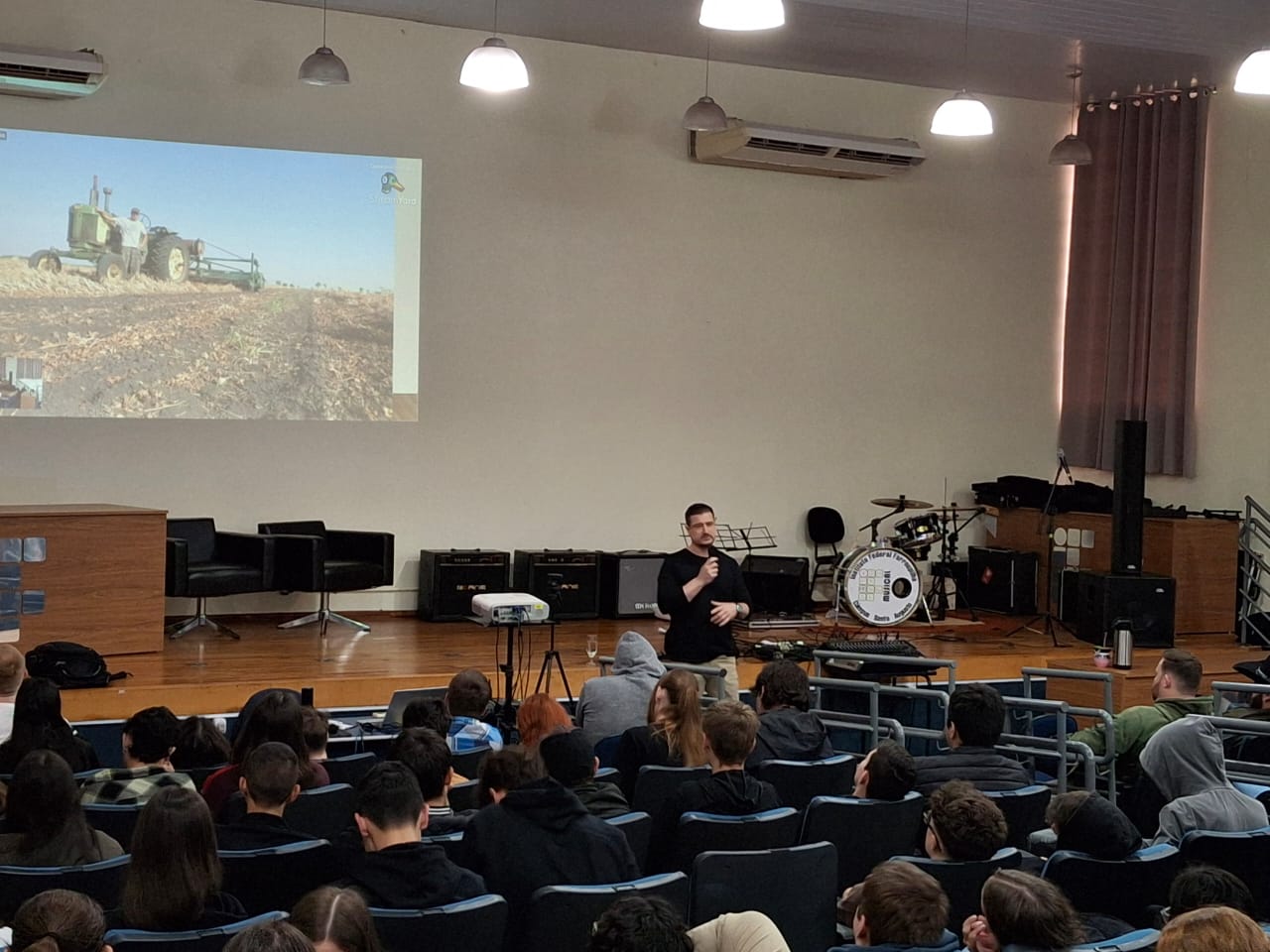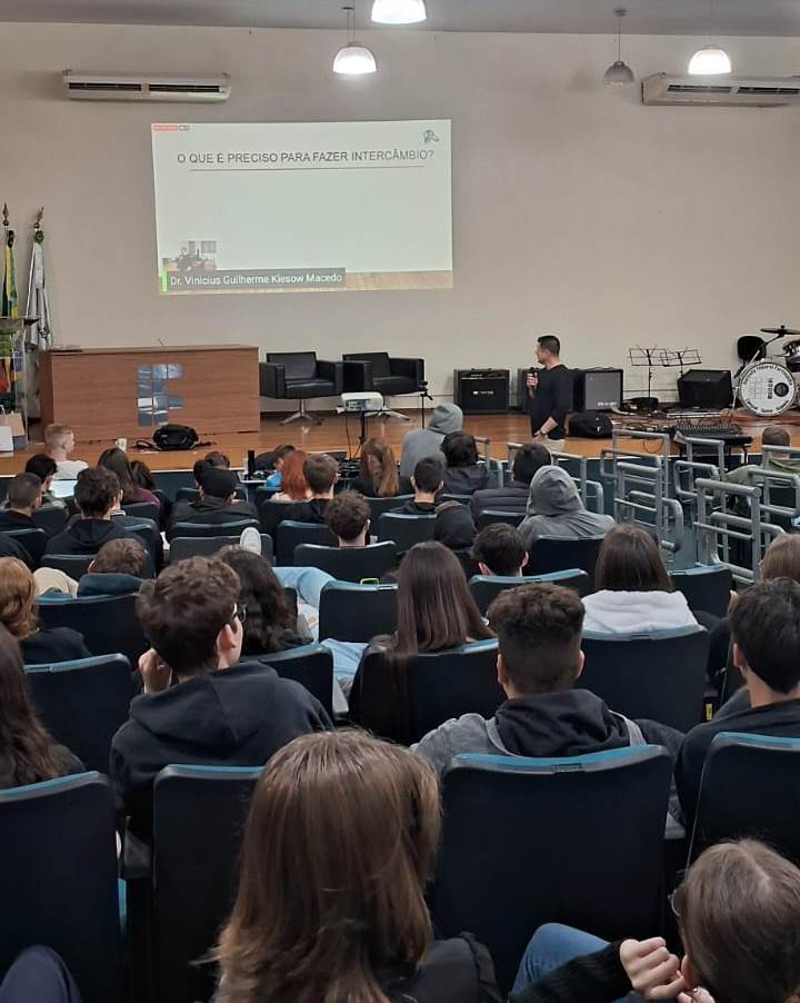 Na ocasião, a egressa do curso superior de Bacharelado em Agronomia, Natália Kasper, apresentou o relato de experiência de seu intercambio realizado em 2022, representando o IFFar, pelo programa Lapassion em Rede, metodologia BRAMPSSOL. O Engenheiro Agrônomo e Consultor Comercial da empresa Van Ass de Panambi, Vinicius Guilherme Kiesow Macedo, relatou sua experiência junto a Universidade de Minnesota nos Estados Unidos e a egressa do curso de Licenciatura em Computação do IFFar – Campus Santo Augusto, Jaqueline Thalheimer, falou sobre seu intercâmbio na Itália, Argentina e Uruguai