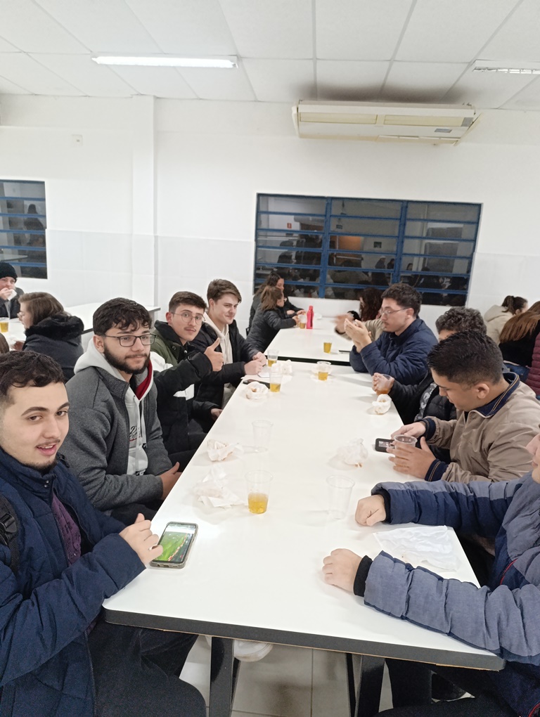 À noite, os estudantes dos cursos superiores, foram conduzidos por volta das 20h ao refeitório da instituição, juntamente com professores e servidores, onde puderam degustar um delicioso Buffet de cachorro-quente.