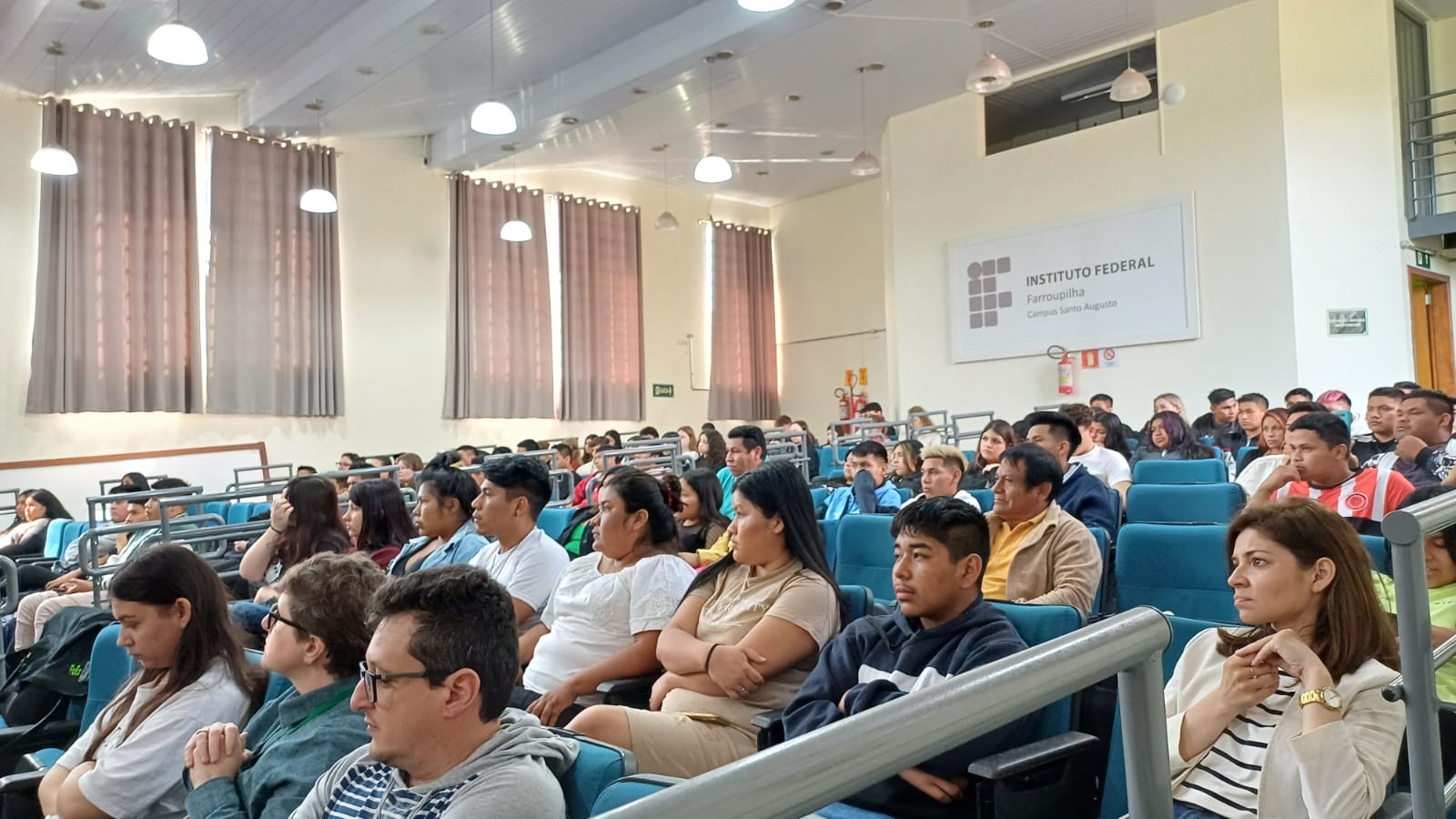 O evento teve início pela manhã, com a recepção dos estudantes de Ensino Médio e Pós Médio (Magistério) do Instituto Estadual de Educação Indígena Ângelo Manhká Miguel, da Terra Indígena do Inhacorá do município de São Valério do Sul, acompanhados pela Diretora, Diana Lambricht Weiler, e demais professores da escola.