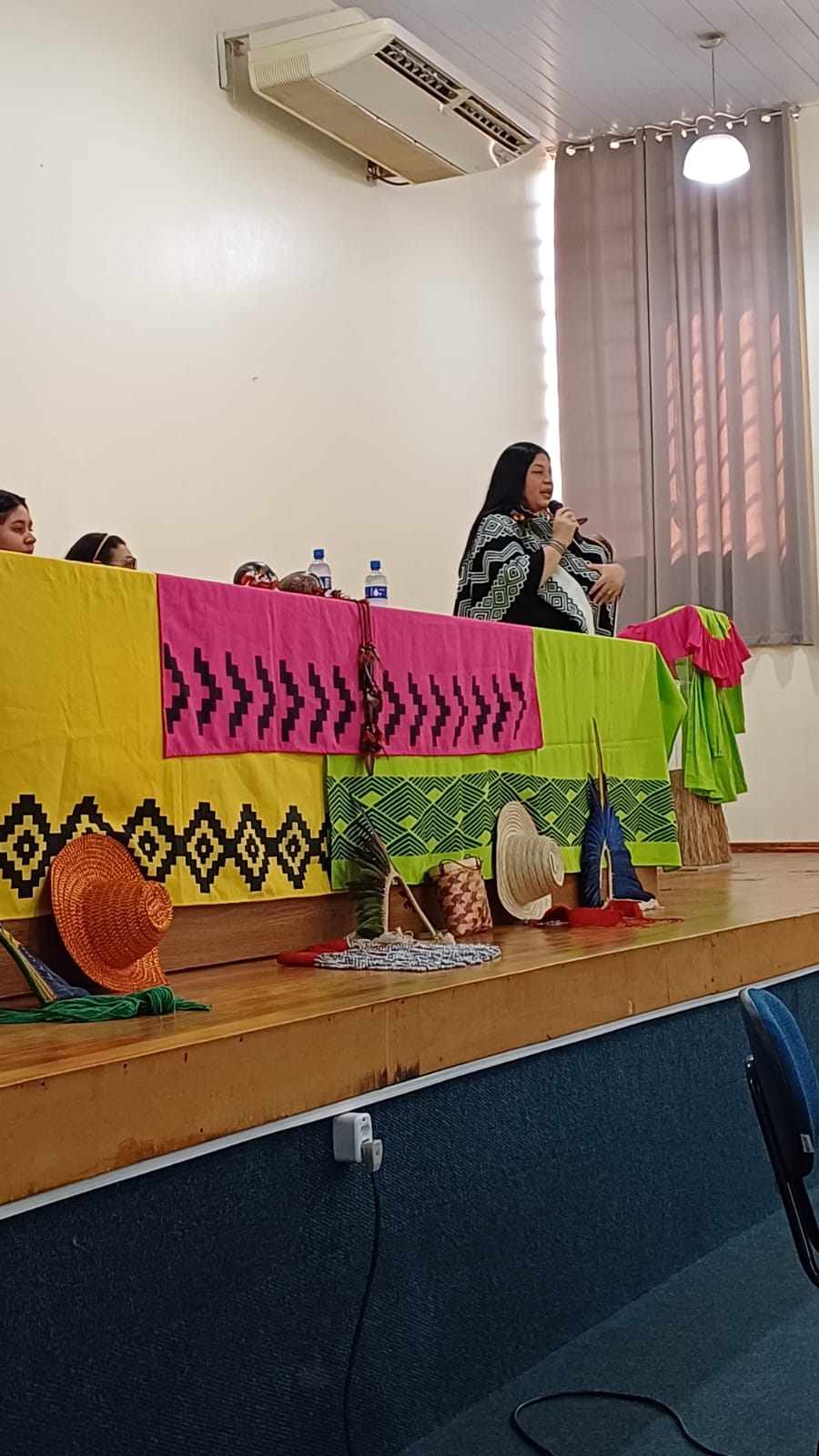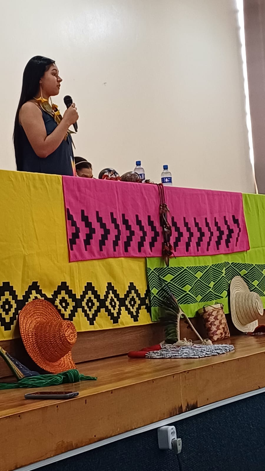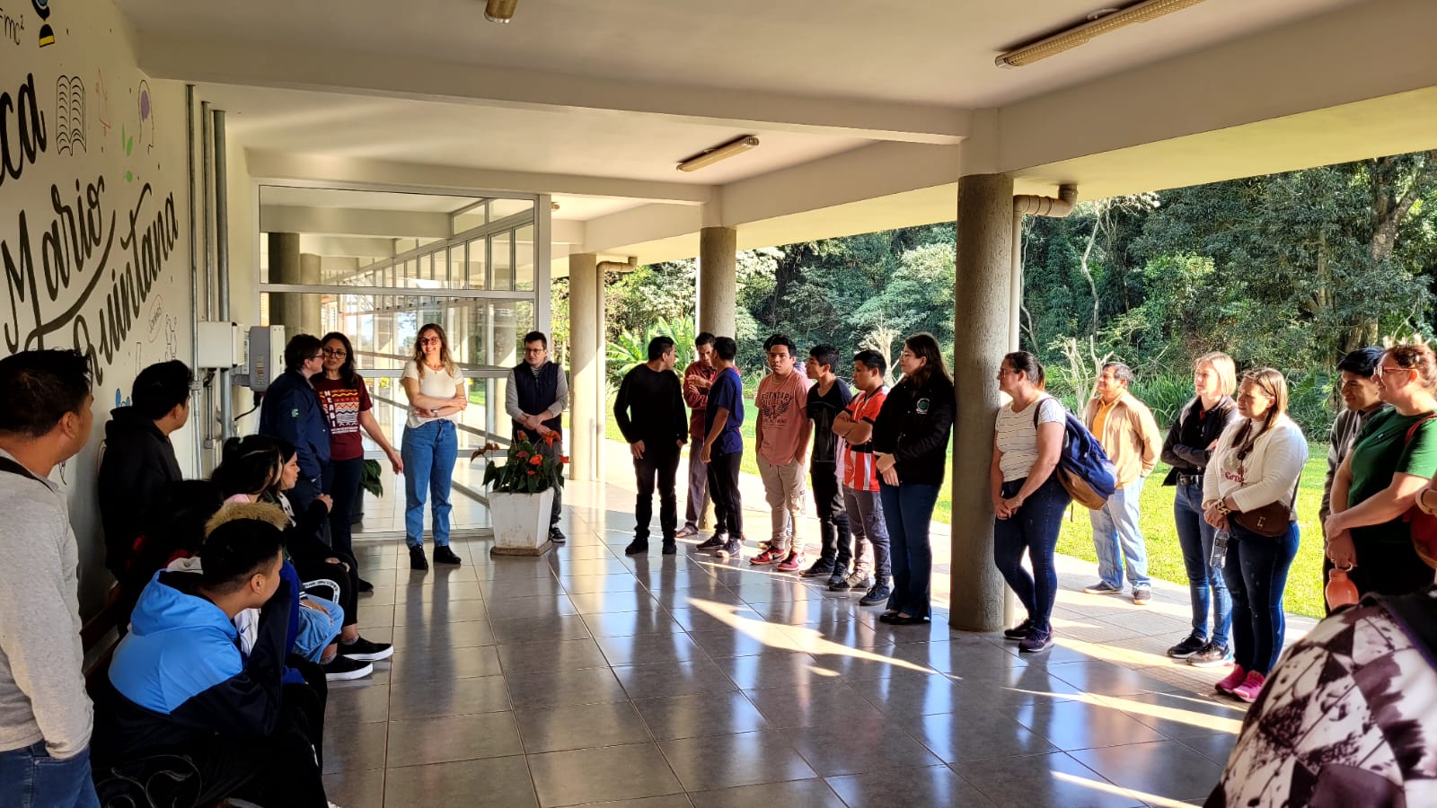 Na ocasião, os visitantes participaram no auditório da instituição, de uma roda de conversa com as integrantes do GT Guarita pela Vida, Regina Emílio, Beatriz Emílio, Milena Jynhpo e Mariazinha Amaral, do município de Redentora, juntamente com o Vice-Cacique da Terra Indígena da Guarita, Joel Ribeiro de Freitas e a Coordenadora de Ações Afirmativas do IFFar – Campus Santo Augusto, Janice Pinheiro Boeira. A estudante de origem indígena do 1º ano do curso técnico em Administração, Camila Fe Há Ribeiro da Silva, do município de Miraguaí, falou sobre a "Importância da representatividade da mulher indígena e da valorização da tradição de sua ancestralidade". Mariazinha do Amaral, que é especialista em medicina tradicional Kaingang, falou sobre chás e ervas utilizadas pelos indígenas.