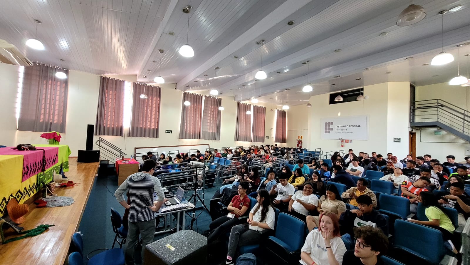 O Núcleo de Estudos Afro-brasileiros e Indígenas – Neabi do IFFar – Campus Santo Augusto, promoveu ontem, 21 de agosto, o Dia do Estudante Indígena no IFFar, alusivo ao Dia Internacional dos Povos Indígenas, comemorado no dia 09 de agosto e ao Dia do Estudante, comemorado no dia 11 de agosto, com o objetivo de apresentar a instituição, estreitar o diálogo e conviver, compartilhando saberes.