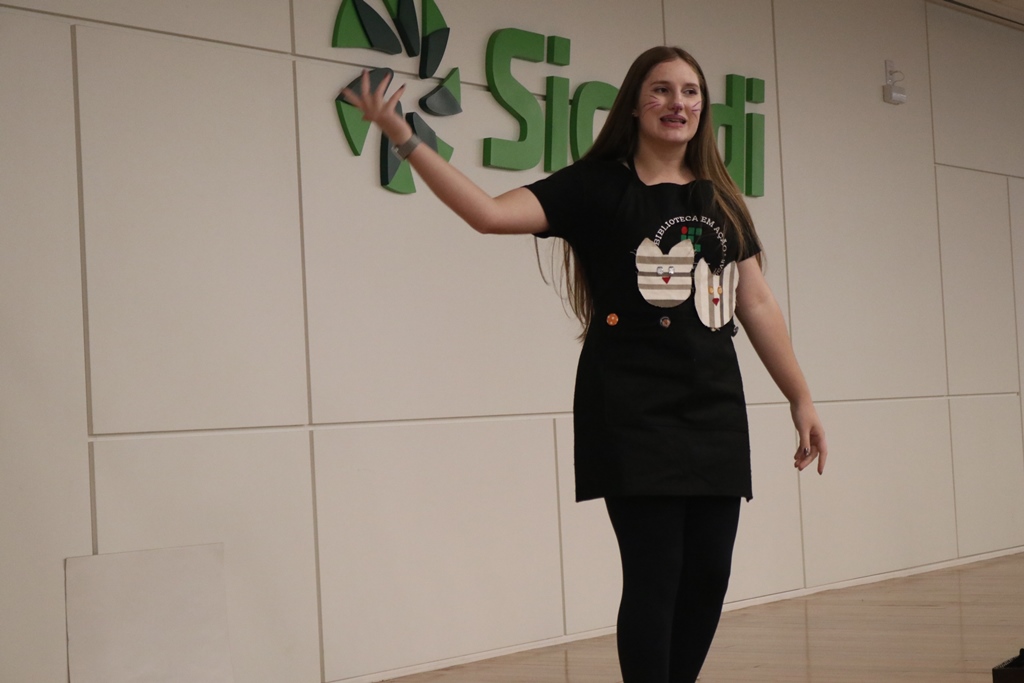 O grupo de contadores de histórias “Contar, encantar e educar”, do Projeto de Extensão Biblioteca em Ação do IFFar – Campus Santo Augusto, coordenado pela bibliotecária Daniela Cristina Paulo d’Acampora, se apresentaram na tarde de quarta-feira, dia 16 de outubro, no auditório do Sicredi de Santo Augusto, durante a abertura da 17ª Semana Municipal da Pessoa Idosa.