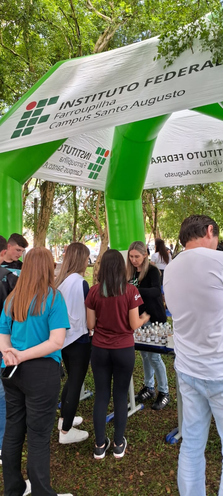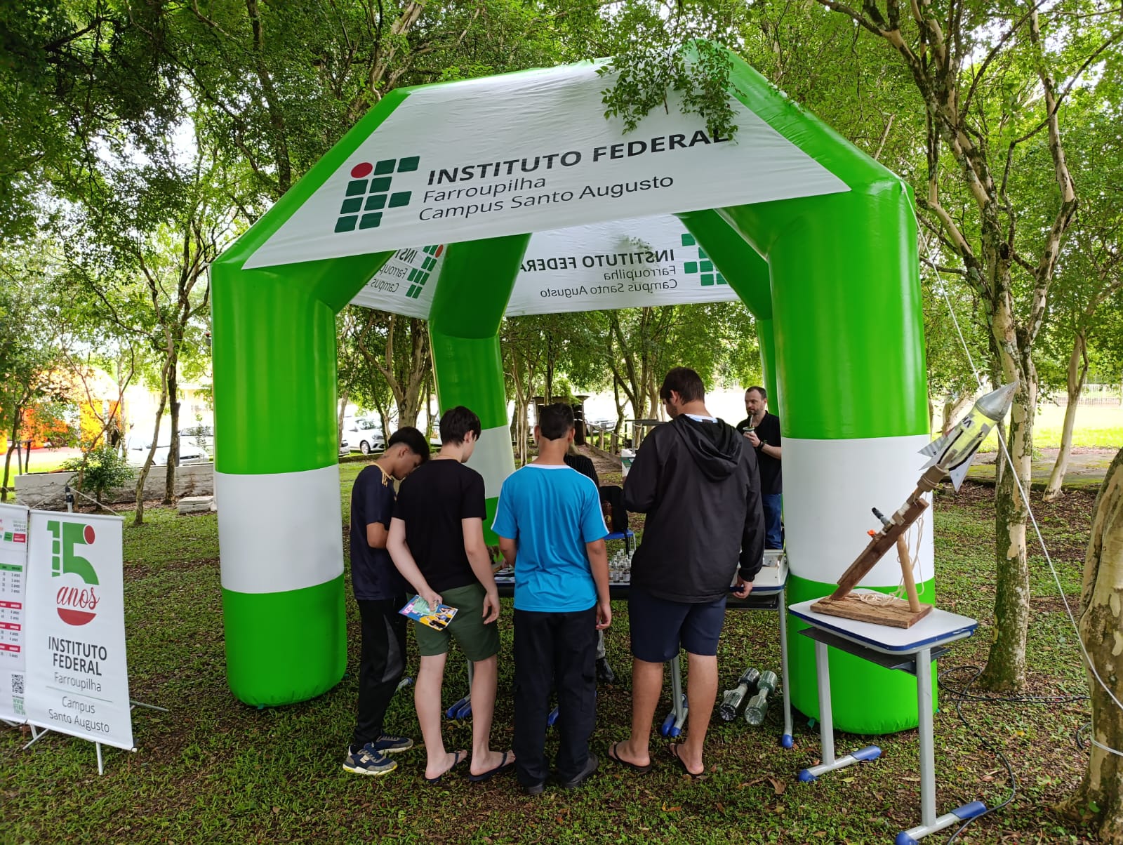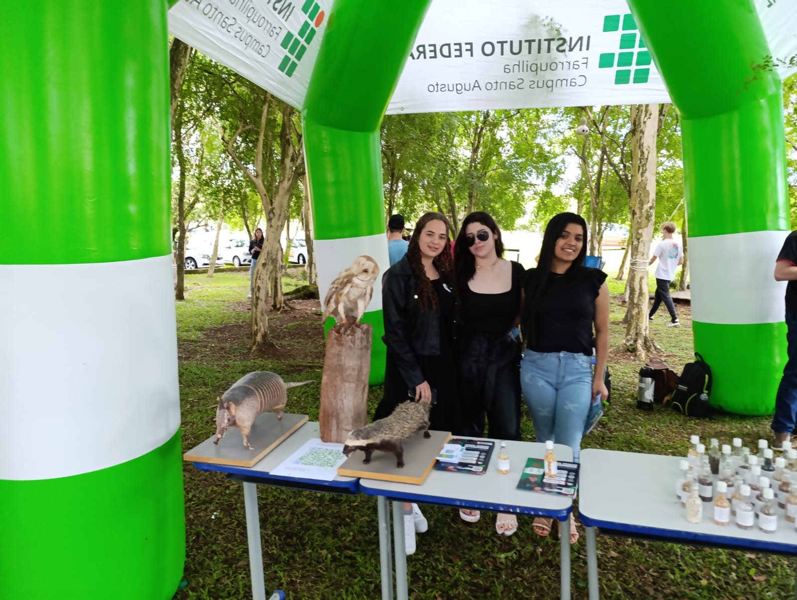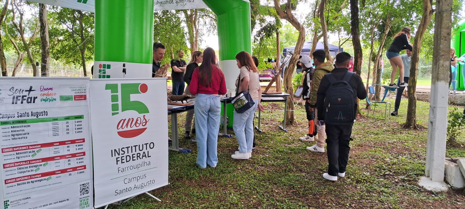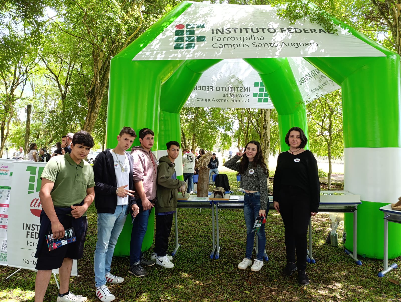 O estande do IFFar – Campus Santo Augusto contou com a participação da Diretora Geral, Márcia Fink; da Diretora de Planejamento e Desenvolvimento Institucional, Lizandra Forgiarini Lucca; do Diretor de Pesquisa Extensão e Produção, Ricardo Paraginski; do Coordenador de Extensão, Osmar Bencke; dos professores, Dante Meller e Fabrício Doring Martins e da Jornalista Carla Maron. Além da entrega de material de divulgação institucional, os visitantes puderam conhecer alguns animais taxidermizados, feitos pelos acadêmicos de Licenciatura em Ciências Biológicas e o foguete vencedor da Mostra de Foguetes do IFFar, e brincar no slackline, sob orientação do professor Fabrício.