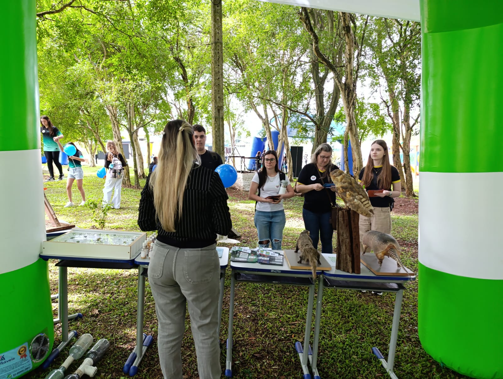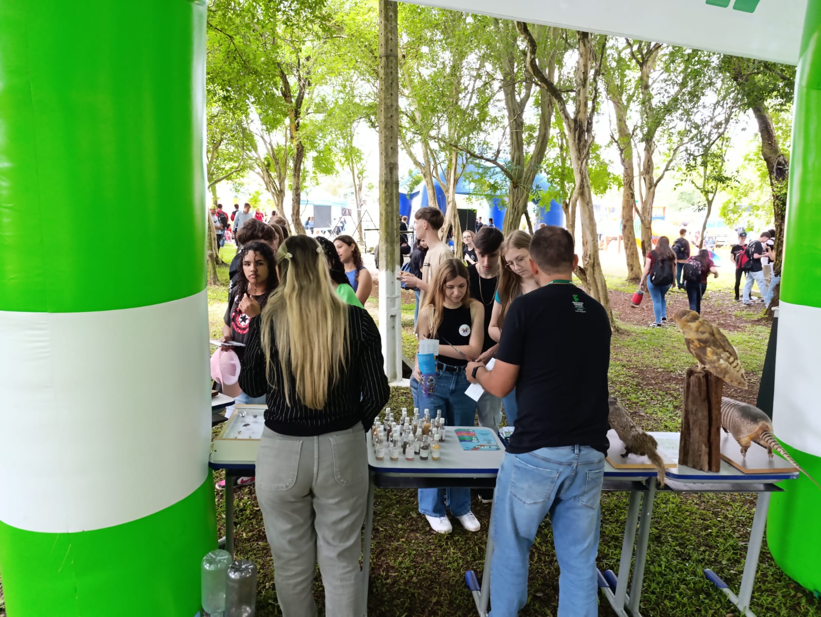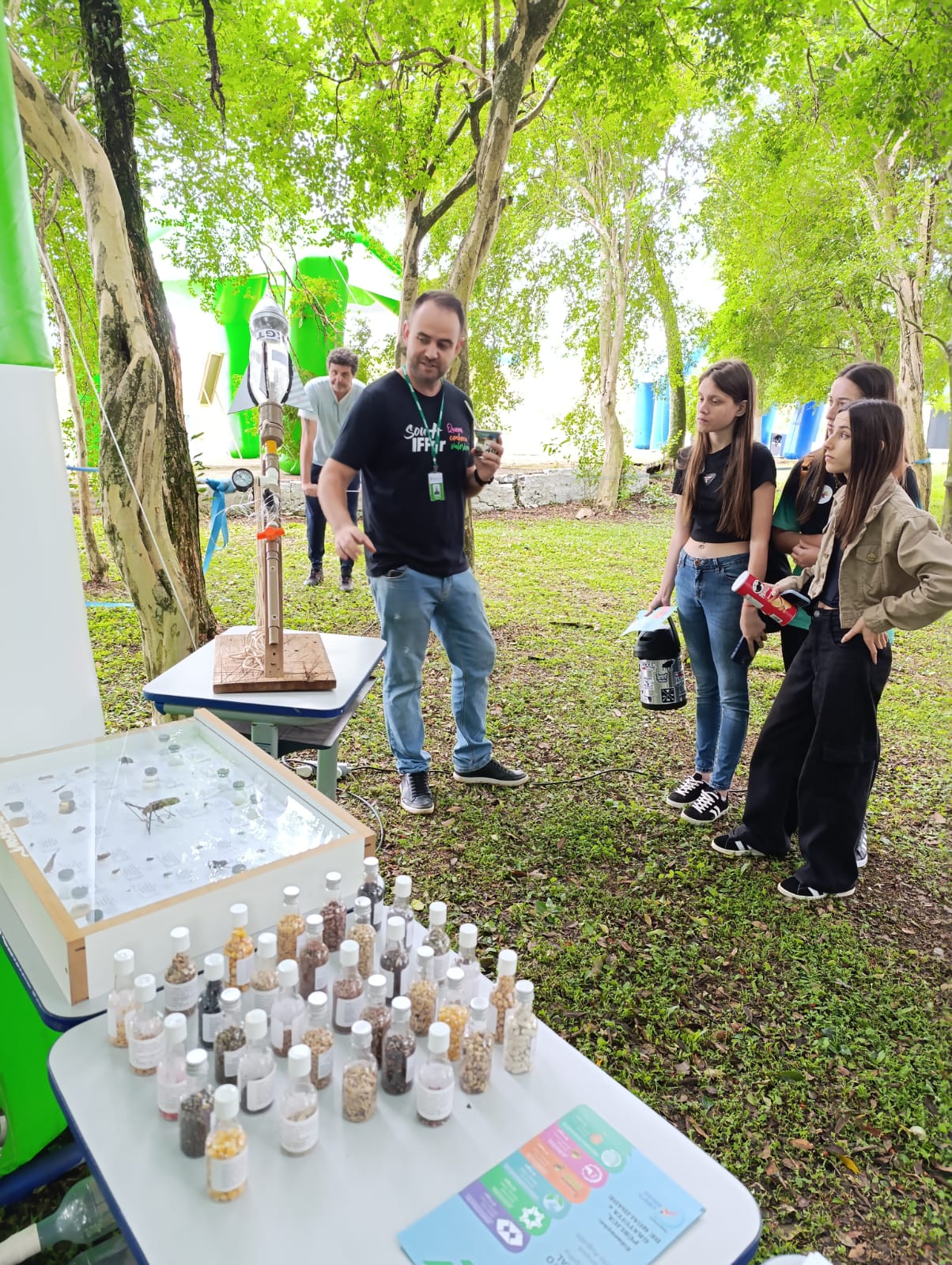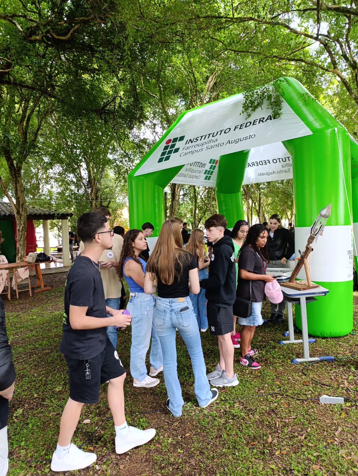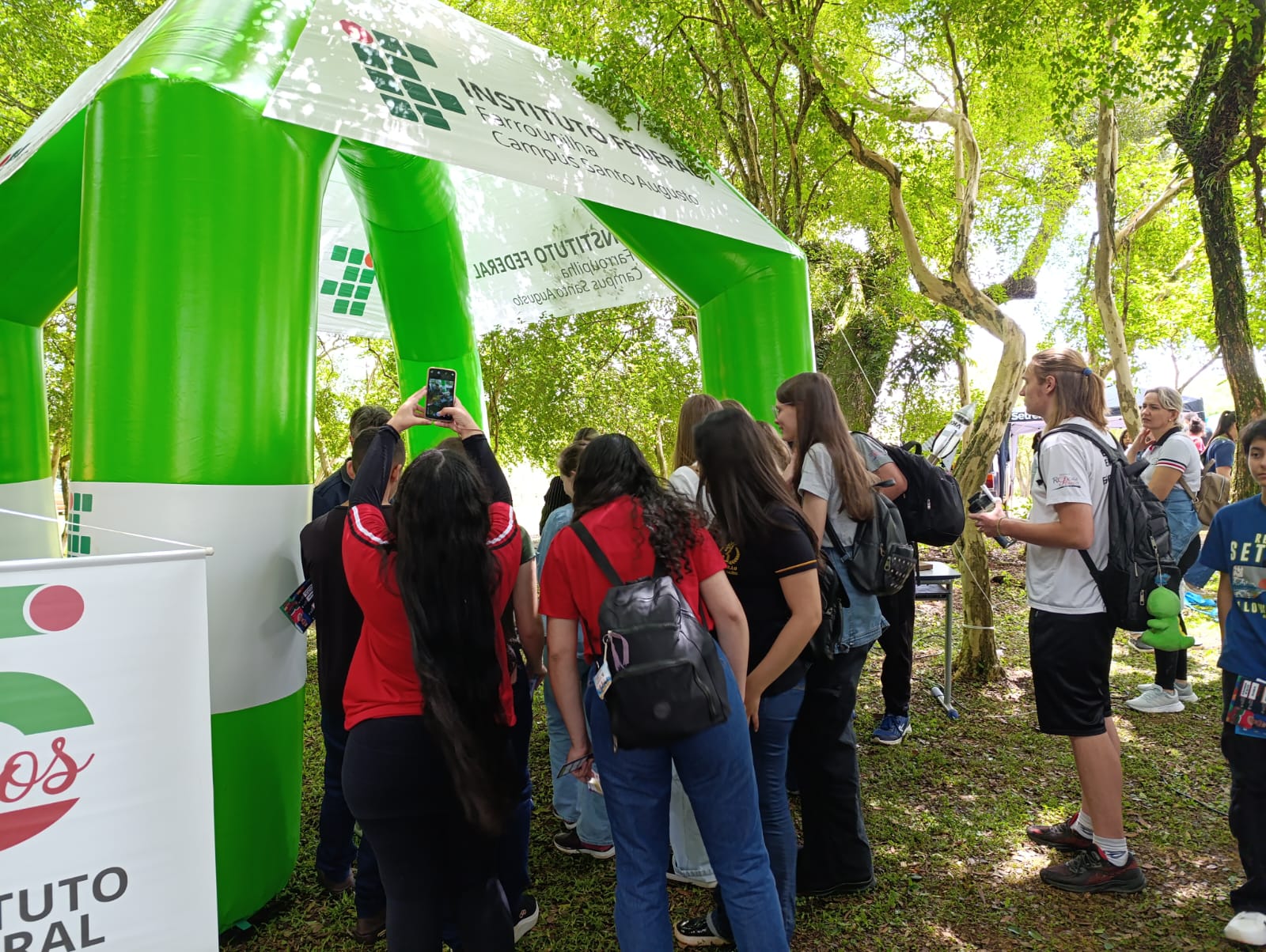 O estande do IFFar – Campus Santo Augusto contou com a participação da Diretora Geral, Márcia Fink; da Diretora de Planejamento e Desenvolvimento Institucional, Lizandra Forgiarini Lucca; do Diretor de Pesquisa Extensão e Produção, Ricardo Paraginski; do Coordenador de Extensão, Osmar Bencke; dos professores, Dante Meller e Fabrício Doring Martins e da Jornalista Carla Maron. Além da entrega de material de divulgação institucional, os visitantes puderam conhecer alguns animais taxidermizados, feitos pelos acadêmicos de Licenciatura em Ciências Biológicas e o foguete vencedor da Mostra de Foguetes do IFFar, e brincar no slackline, sob orientação do professor Fabrício.
