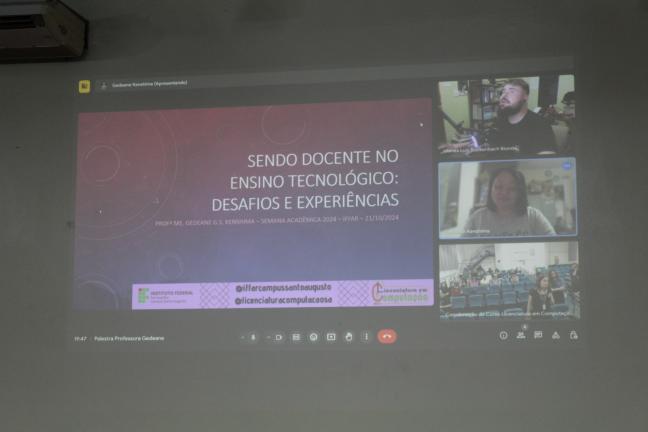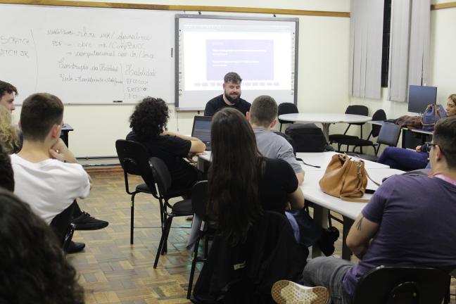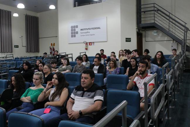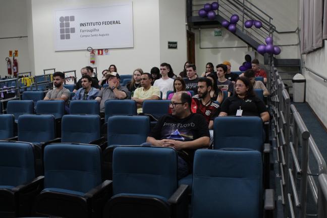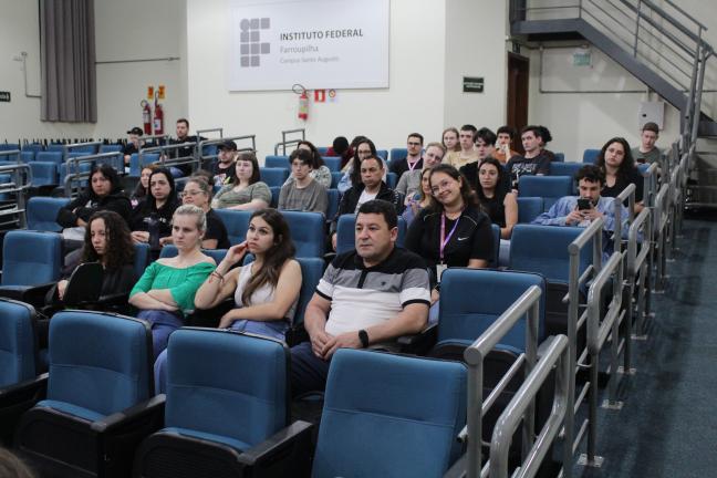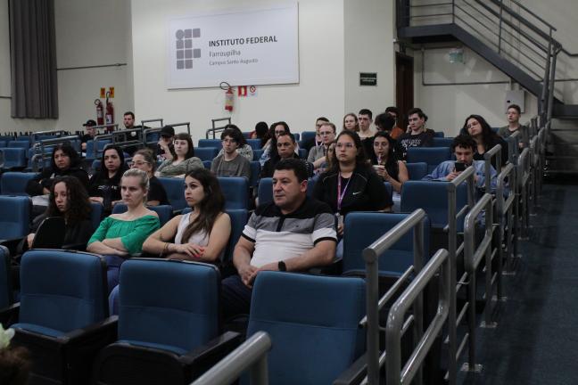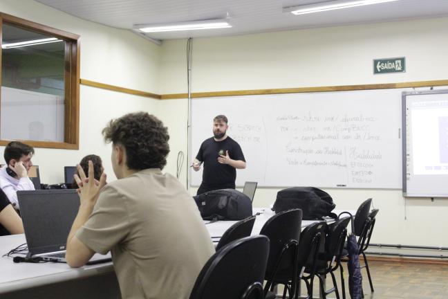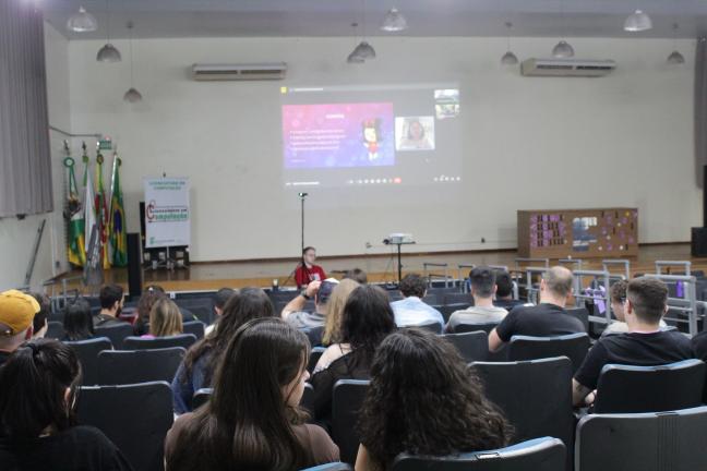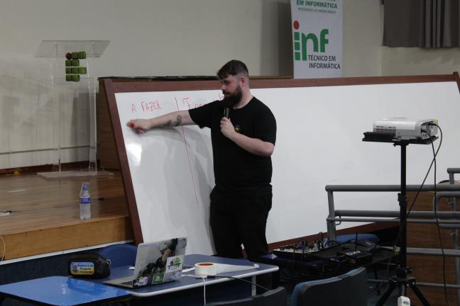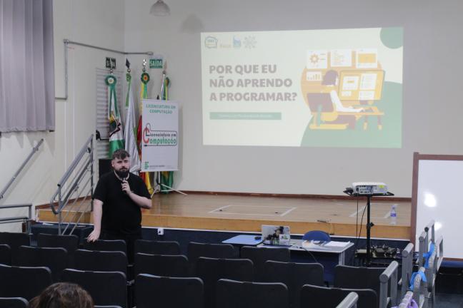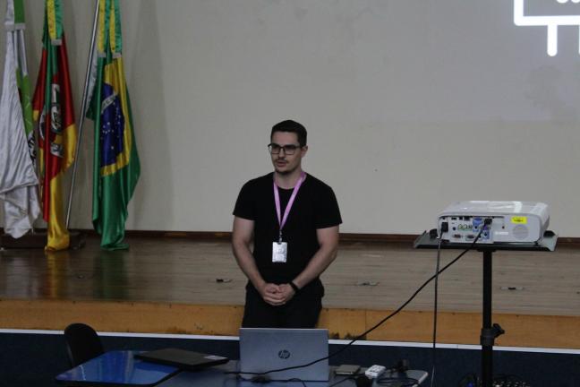 Na terça-feira, dia 22, aconteceu a palestra presencial no auditório, com o egresso de Licenciatura em Computação, Uianes Biondo, Mestre em Tecnologia Educacional em Rede pela UFSM e professor efetivo do quadro de servidores da Prefeitura Municipal em Santo Augusto.