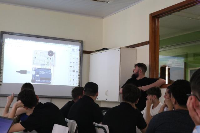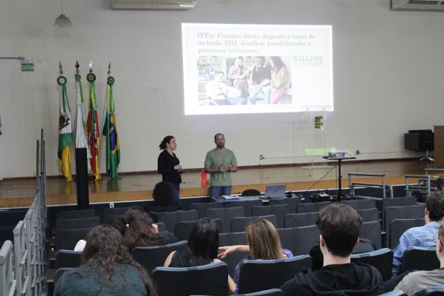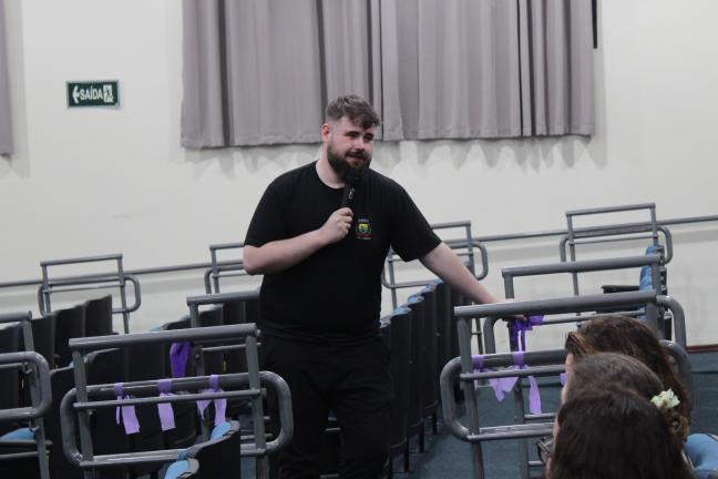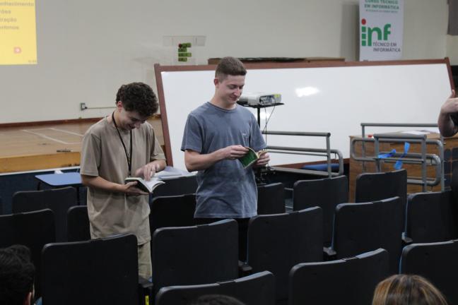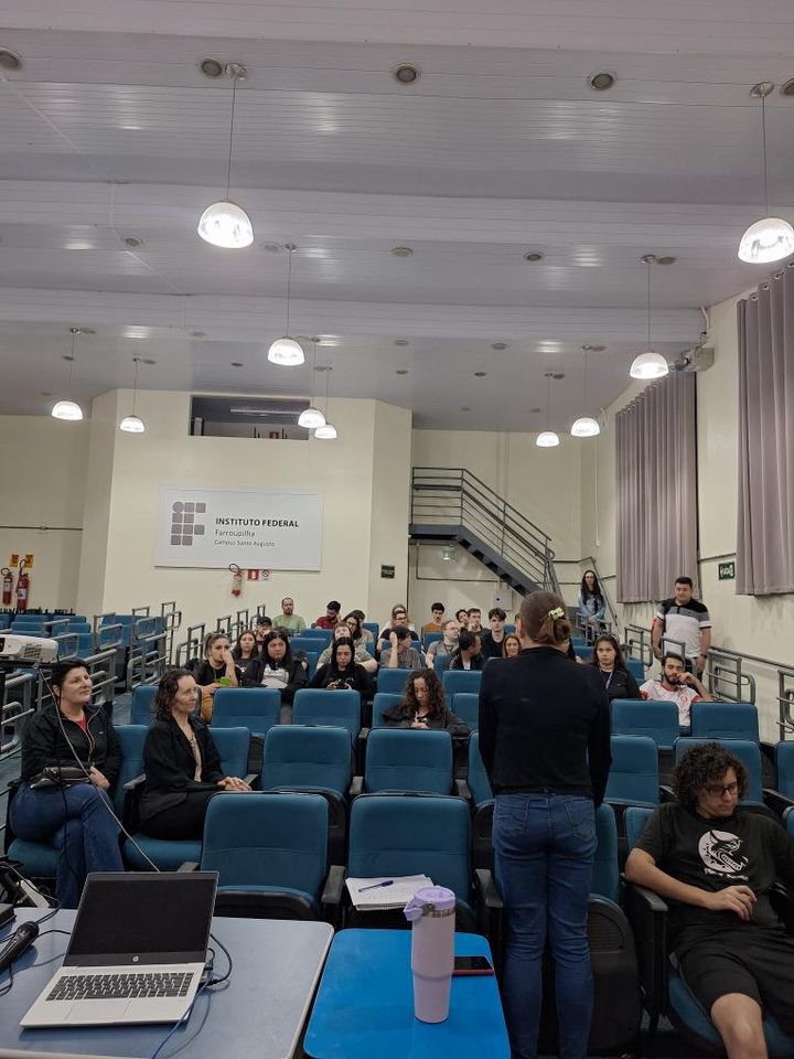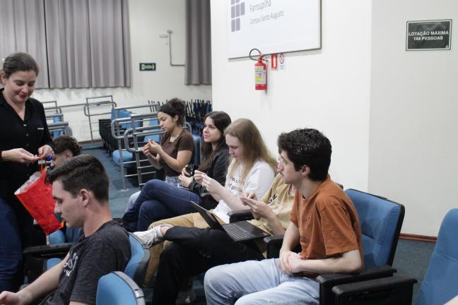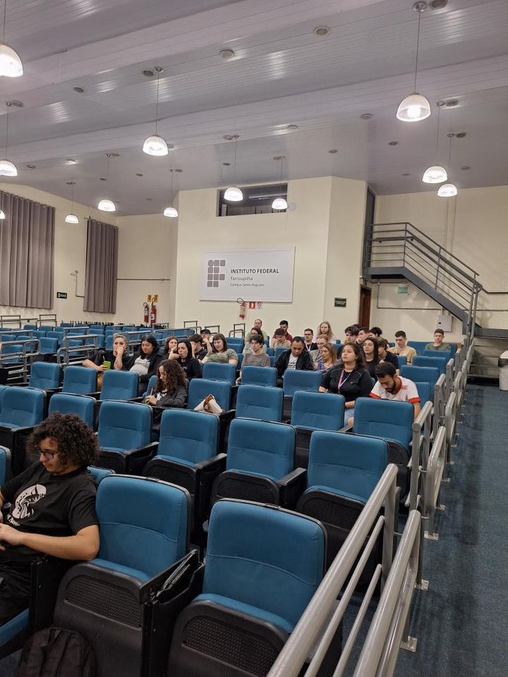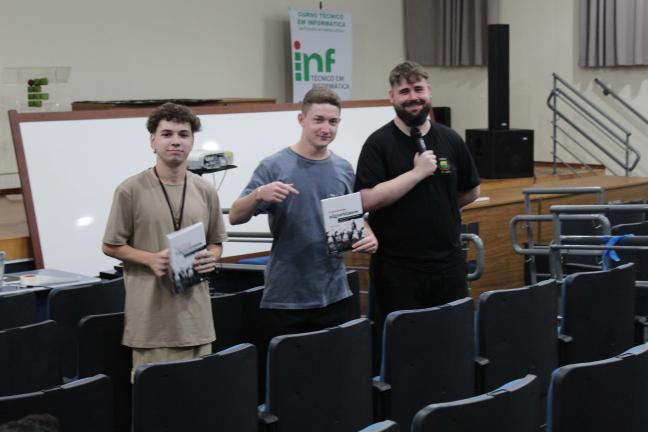 Na terça-feira, dia 22, aconteceu a palestra presencial no auditório, com o egresso de Licenciatura em Computação, Uianes Biondo, Mestre em Tecnologia Educacional em Rede pela UFSM e professor efetivo do quadro de servidores da Prefeitura Municipal em Santo Augusto.