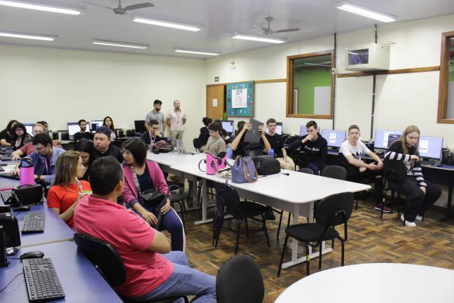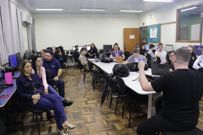 Na quarta-feira, dia 23, foi realizada no Laboratório de Informática 4, a oficina “Desenvolvimento e Aplicação reactive outsystems (low-code)”, com Eduardo Botelho, acadêmico de Análise de Sistemas da URI, seguido por coffe break e confraternização.