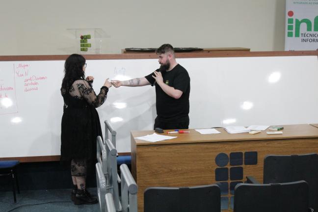 Na sexta-feira, dia 25, houve o encerramento do evento, com a apresentação das logos participantes do concurso, seguida pela Roda de Conversa sobre o PIBID - Programa Institucional de Bolsa de Iniciação à Docência, Edital 2024-2026.