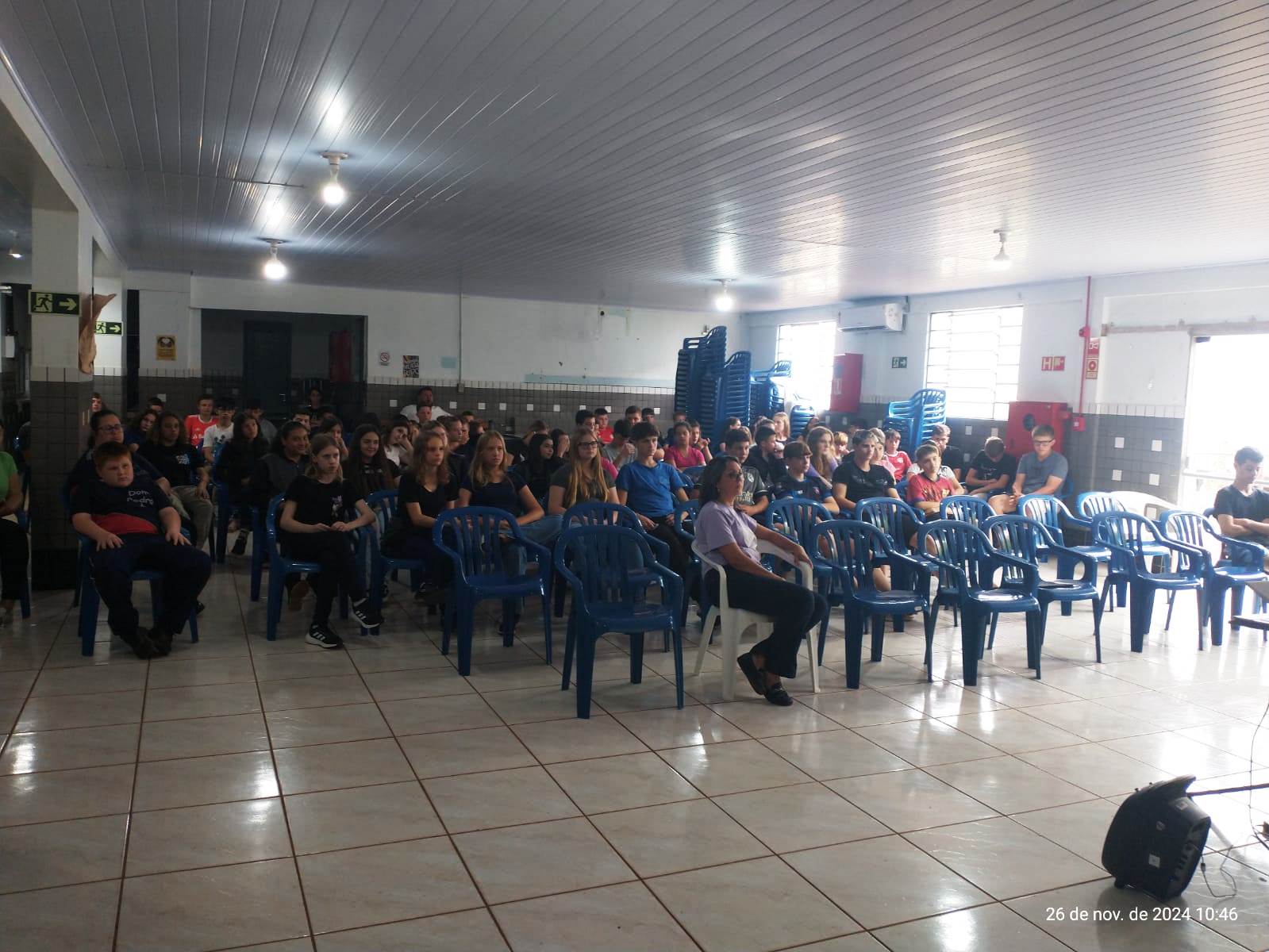 A Coordenadora de Ações Afirmativas do IFFar – Campus Santo Augusto, professora Janice Pinheiro Boeira, realizou na terça-feira, dia 26 de novembro, por meio do Núcleo de Estudos Afro-brasileiros e Indígenas – NEABI, juntamente com o Técnico Administrativo em Educação, Odair Kunzler, uma palestra sobre o Dia da Consciência Negra, na Escola Municipal Dom Pedro I de Nova Ramada.