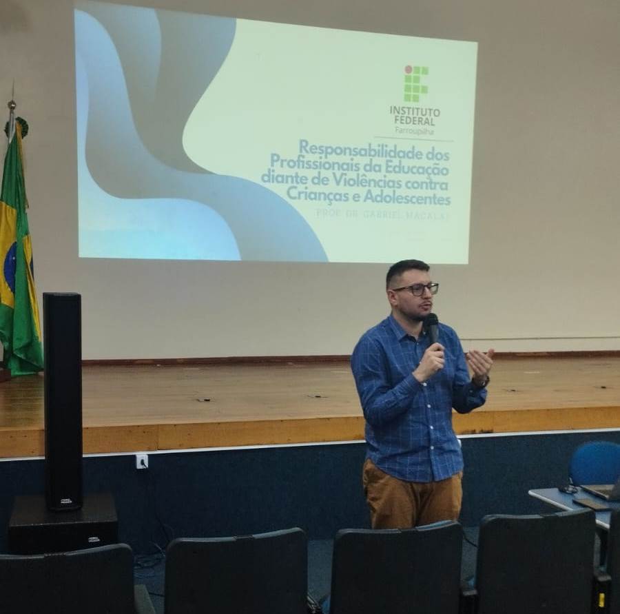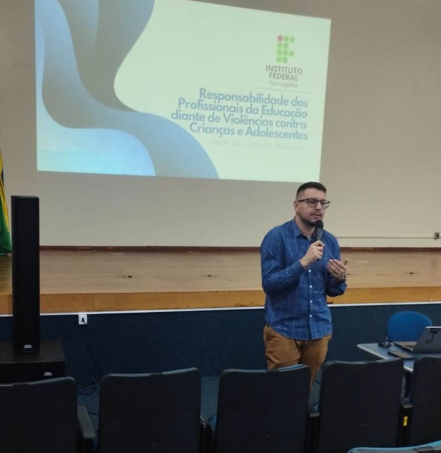 O Projeto de Extensão “Gênero e Sexualidade na Educação Básica: uma discussão necessária”, realizou na terça-feira, dia 17 de dezembro, o encerramento das atividades de 2024, com uma palestra para os acadêmicos de Licenciatura em Ciências Biológicas e em Computação, ministrada pelo professor de Administração e Direito, Dr. Gabriel Maçalai, com o tema “Responsabilidade dos Profissionais da Educação diante de Violências contra Crianças e Adolescentes”.