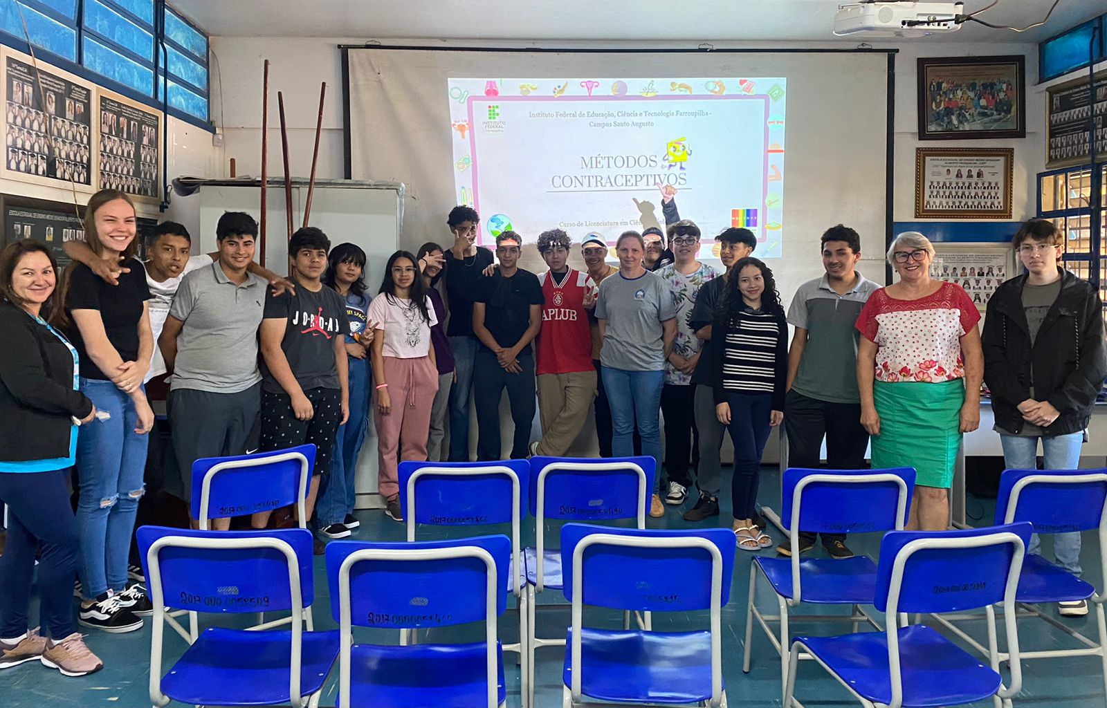 Foram realizadas por meio do projeto, nos meses de outubro e novembro, palestras sobre “Métodos Contraceptivos” e “Infecções Sexualmente Transmissíveis”, em escolas de Santo Augusto e região. No dia 07 de outubro, foi realizada uma palestra sobre “Métodos Contraceptivos”, para os estudantes da Escola Estadual de Ensino Fundamental Francisco Andrighetto em Santo Augusto. Nos dias 14 e 21 de novembro, foram realizadas palestras, respectivamente, sobre “Métodos Contraceptivos” e sobre “Infecções Sexualmente Transmissíveis”, para os estudantes do ensino médio e fundamental da Escola Estadual Senador Alberto Pasqualini – CIEP de Santo Augusto. No dia 25 de novembro, foi realizada uma palestra sobre “Métodos Contraceptivos”, para os estudantes do 8º ano da Escola Municipal Padre Antonio Michels de São Martinho. No dia 26 de novembro, foi realizada às 19h, uma palestra no auditório do IFFar – Campus Santo Augusto para os estudantes do ensino médio noturno da Escola Estadual de Ensino Médio Santo Augusto.