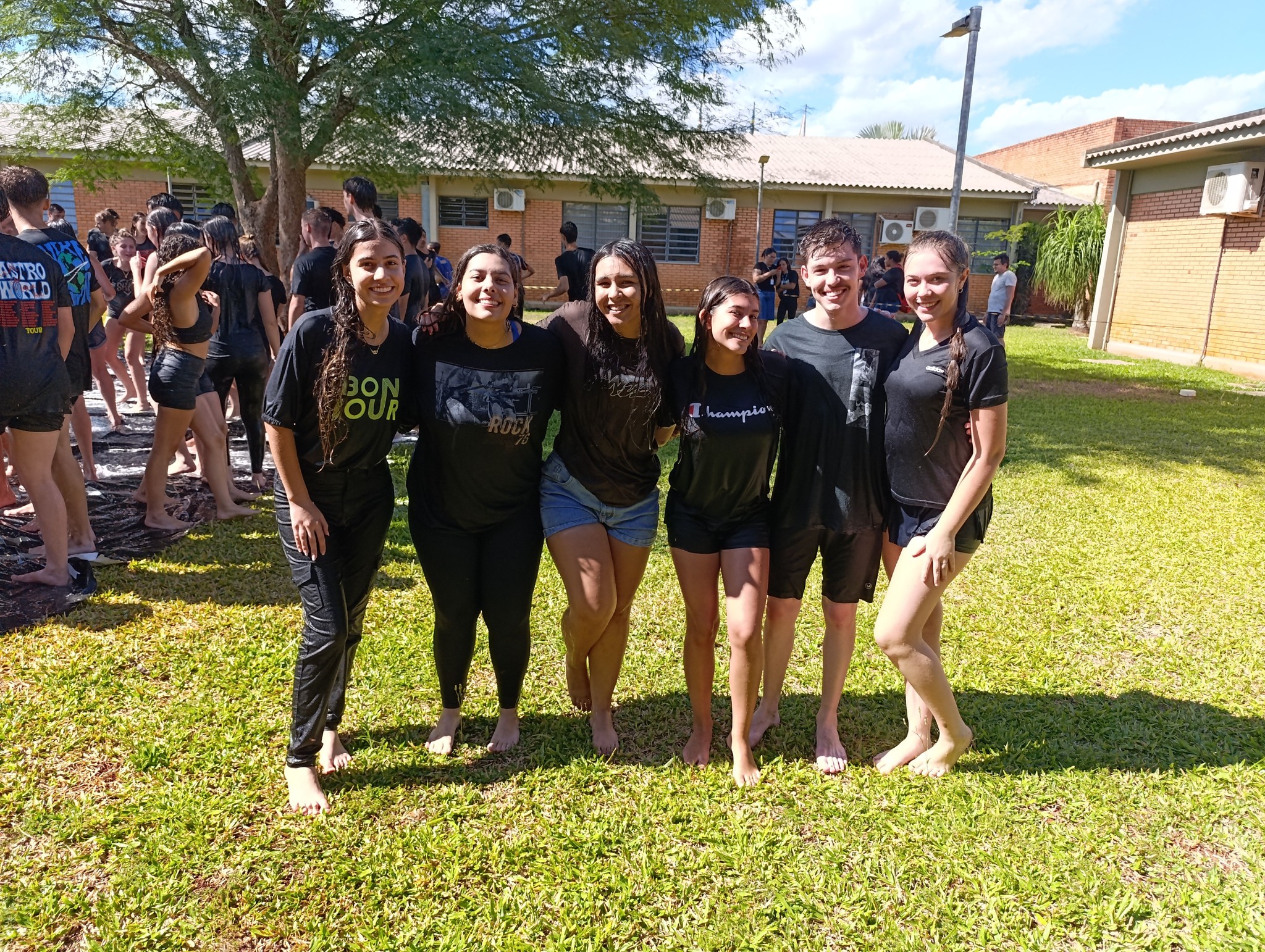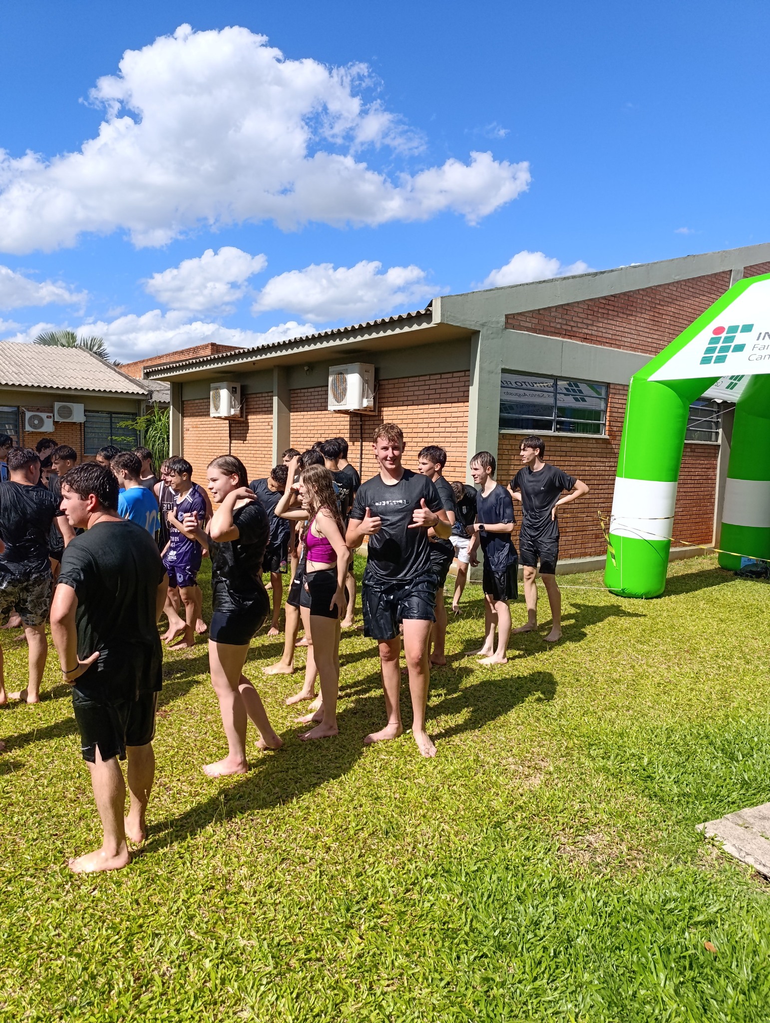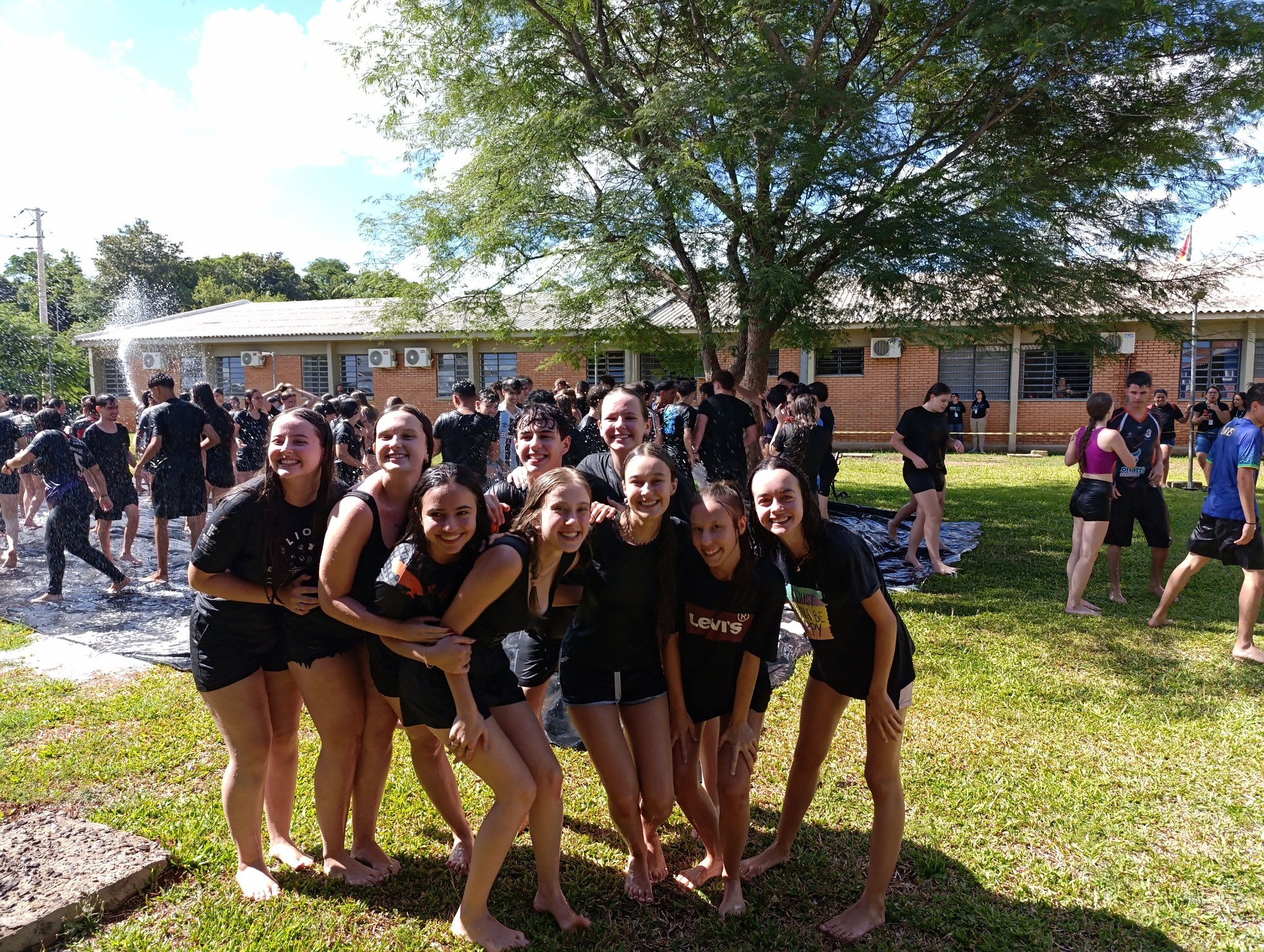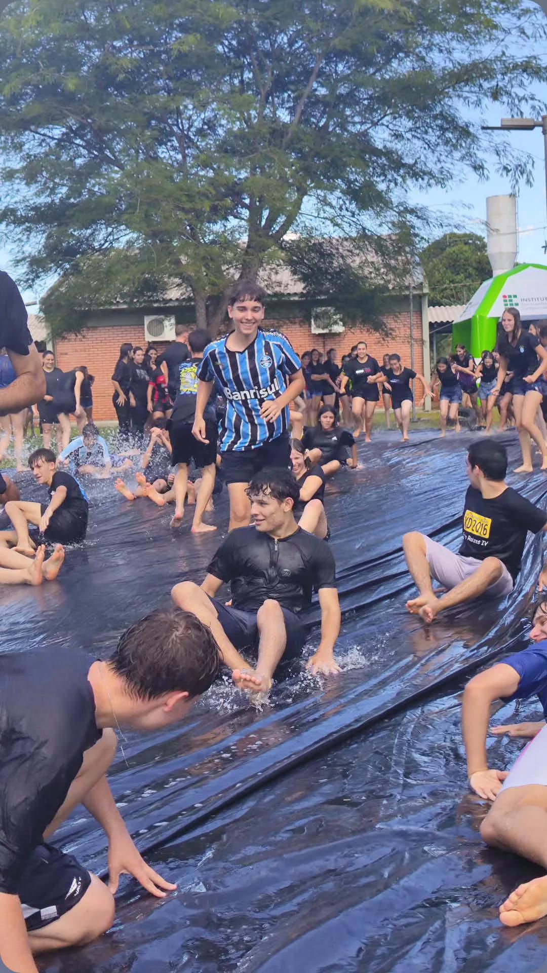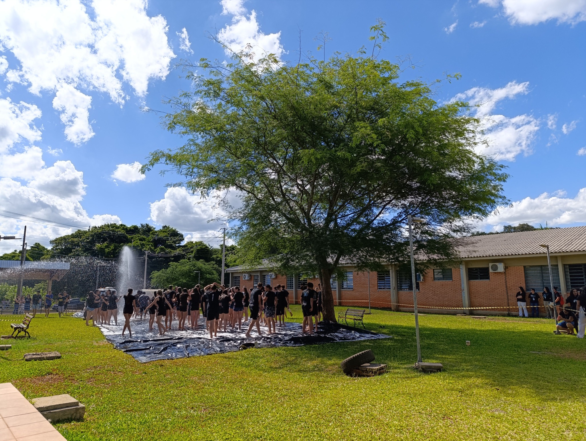 A brincadeira teve como espaço delimitado o gramado central do campus, onde foram utilizadas mangueiras para molhar aqueles que desejavam participar da festa, mas a atração principal foi o jato de água do caminhão pipa da prefeitura e a lona estendida na grama, onde era possível deslizar na água.