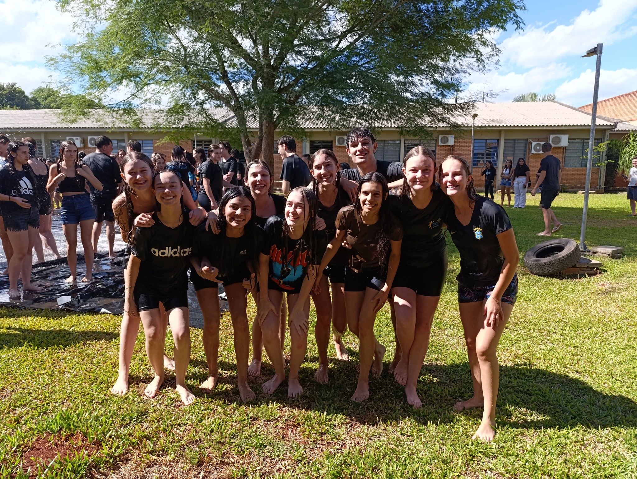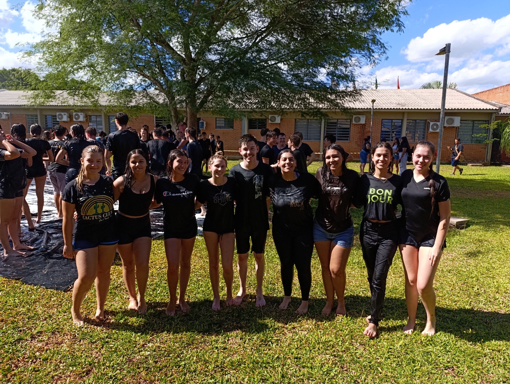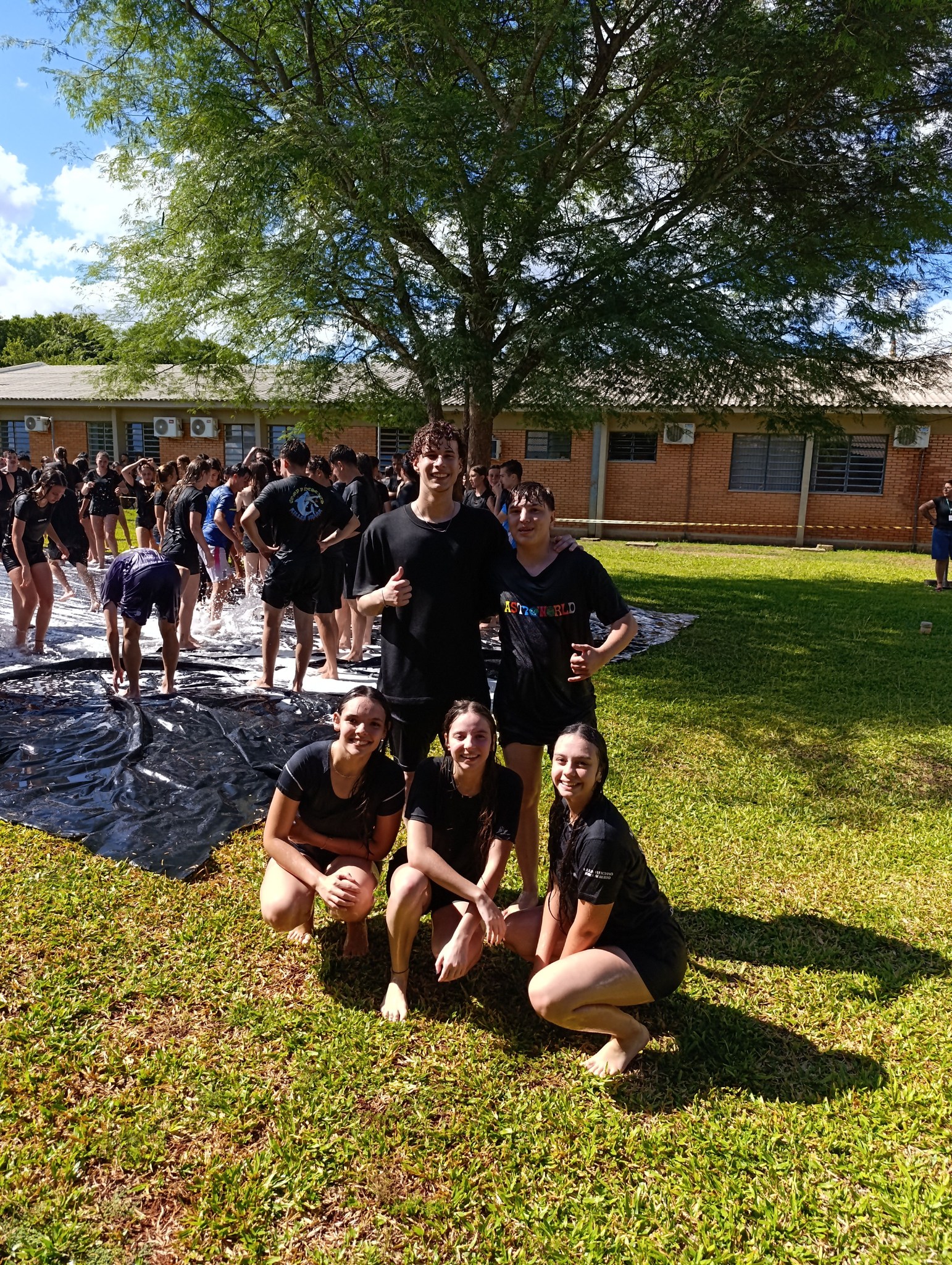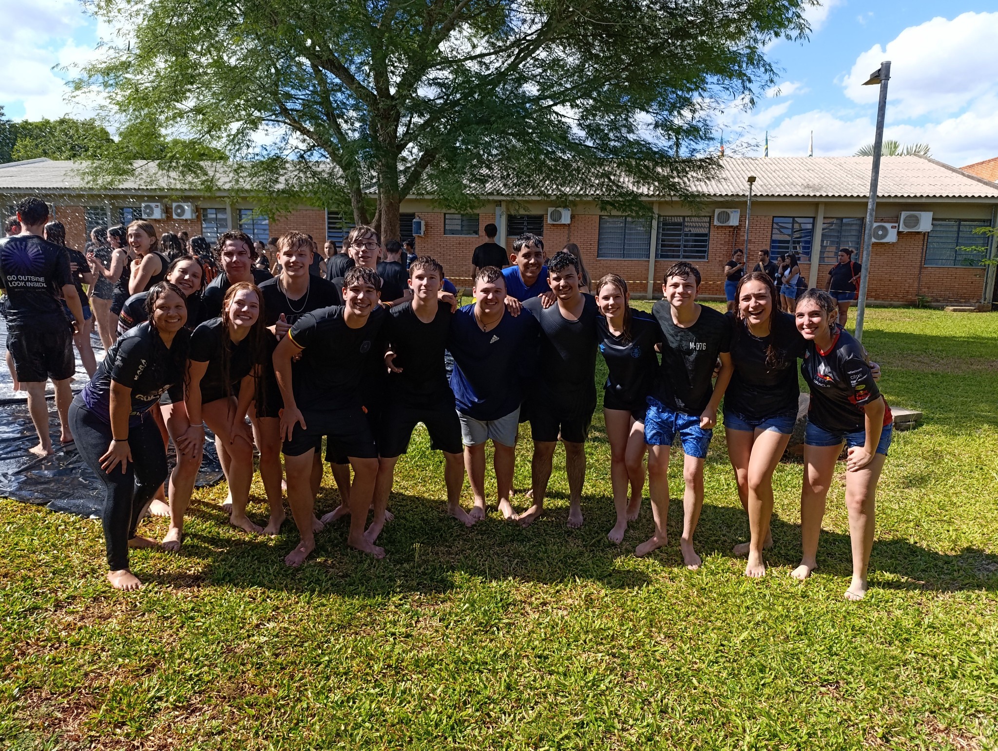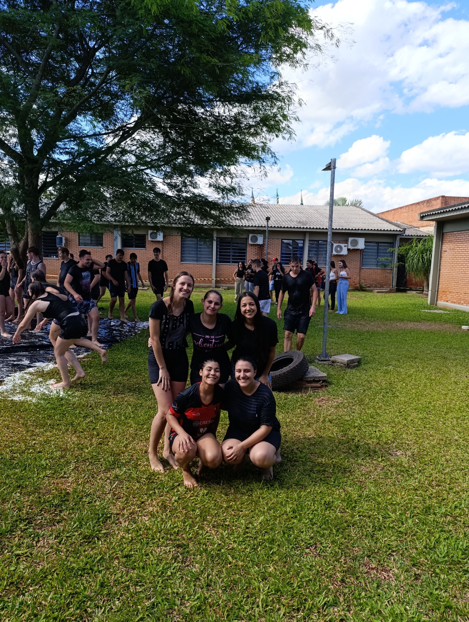 A brincadeira teve como espaço delimitado o gramado central do campus, onde foram utilizadas mangueiras para molhar aqueles que desejavam participar da festa, mas a atração principal foi o jato de água do caminhão pipa da prefeitura e a lona estendida na grama, onde era possível deslizar na água.