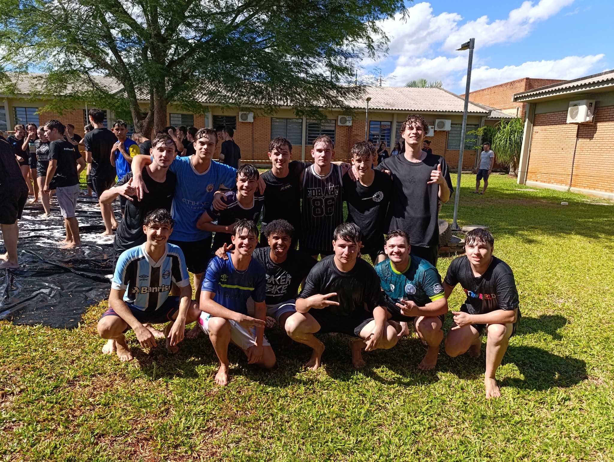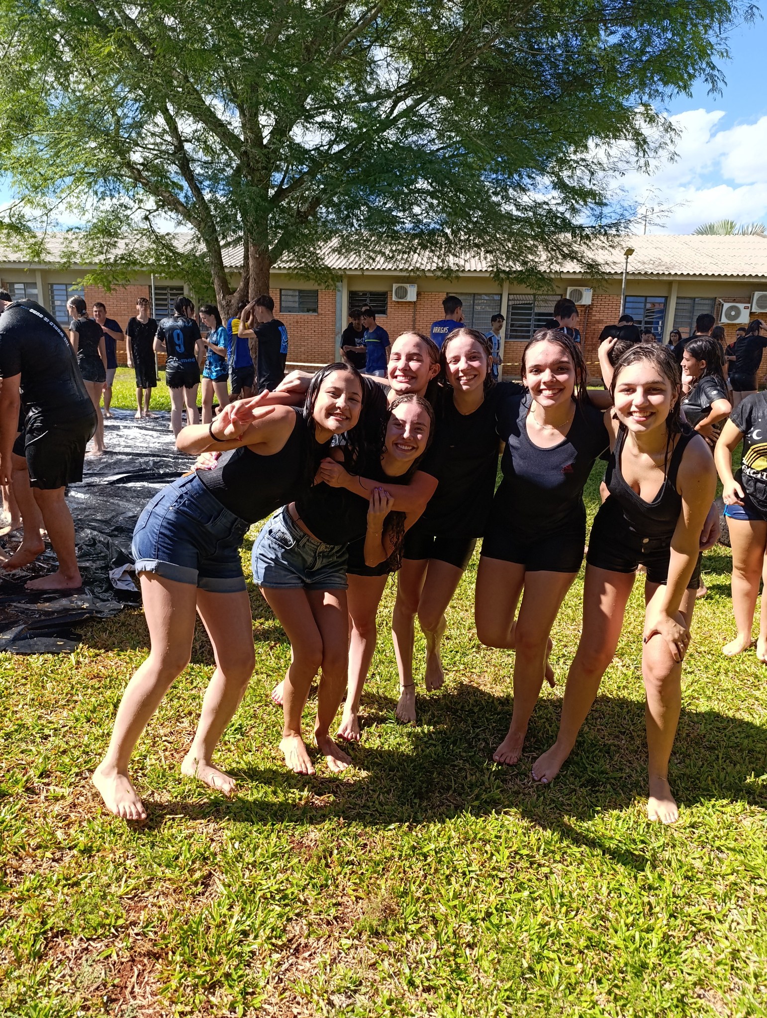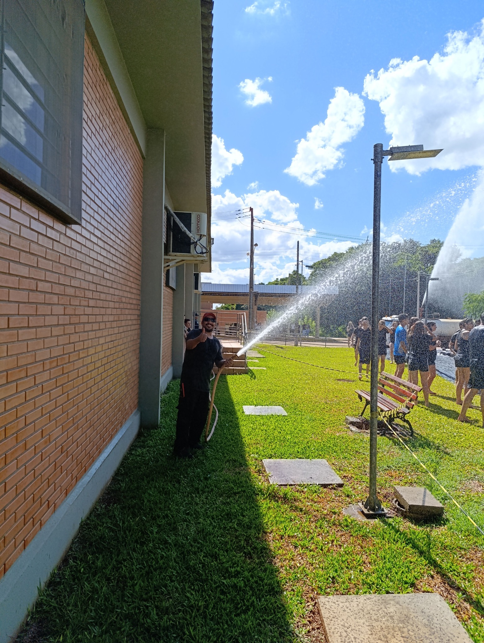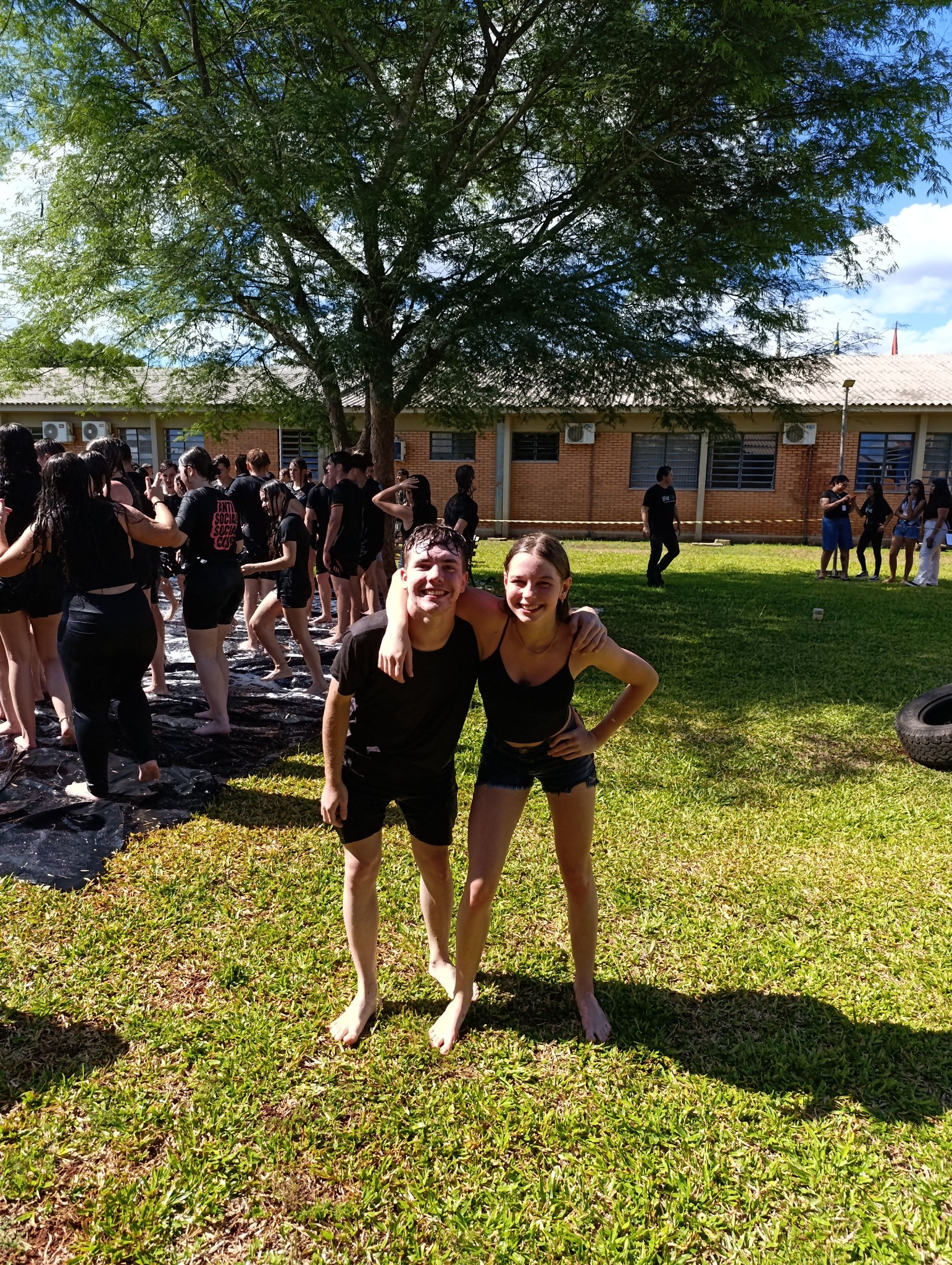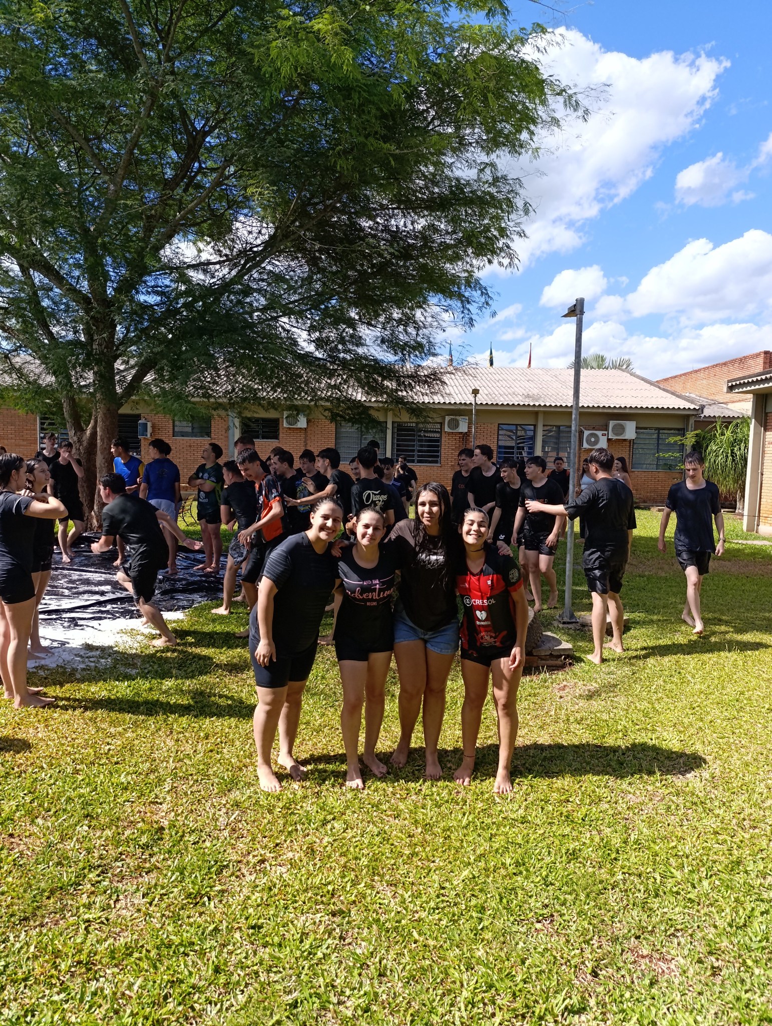 A brincadeira teve como espaço delimitado o gramado central do campus, onde foram utilizadas mangueiras para molhar aqueles que desejavam participar da festa, mas a atração principal foi o jato de água do caminhão pipa da prefeitura e a lona estendida na grama, onde era possível deslizar na água.