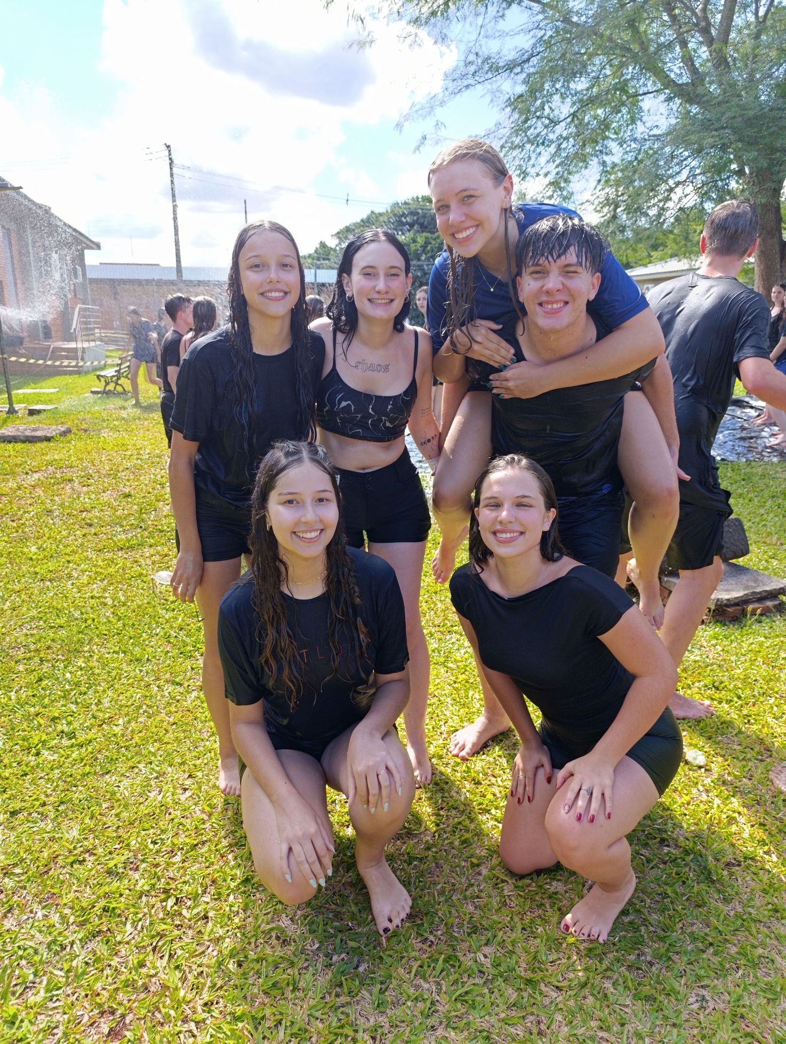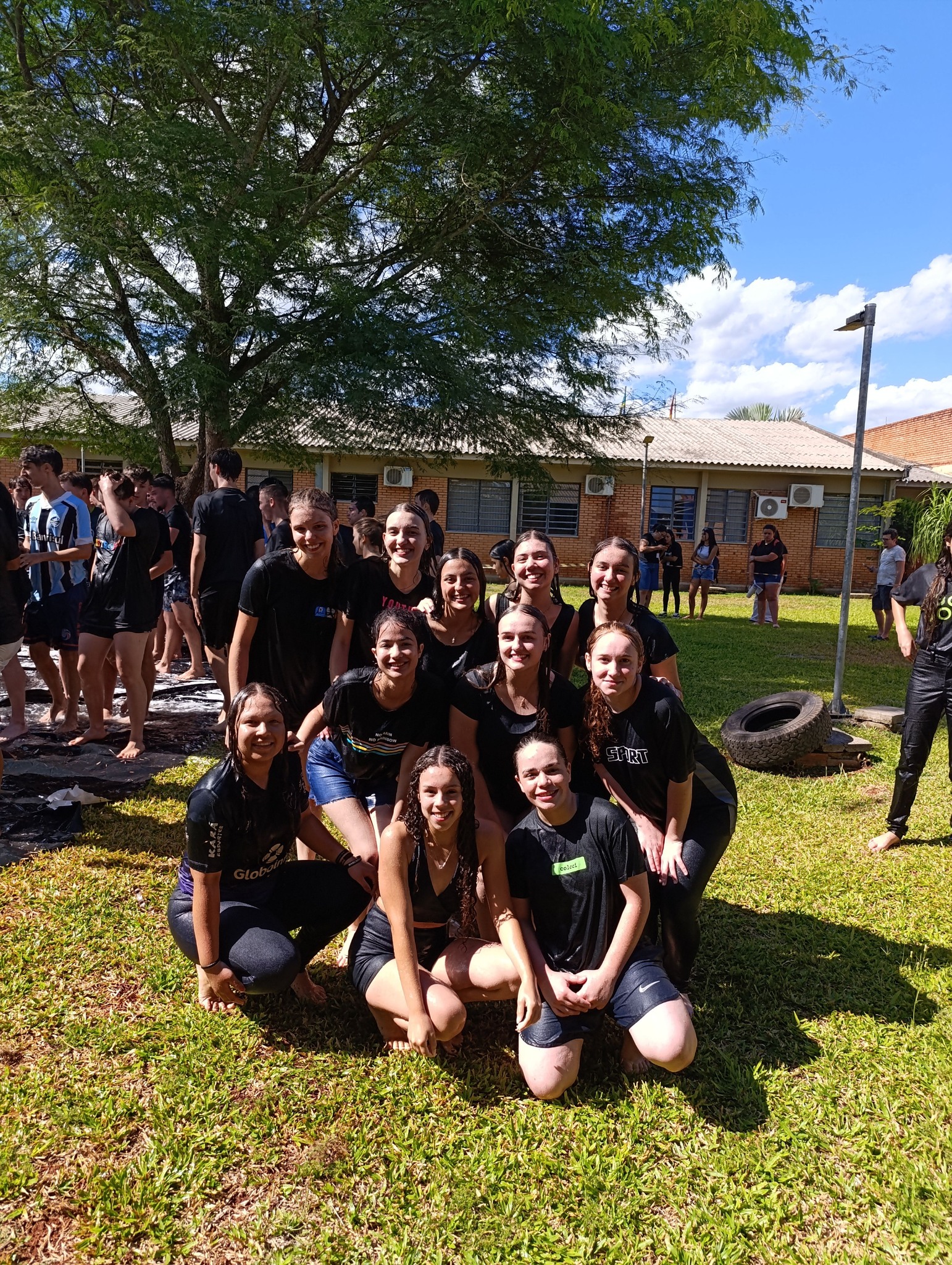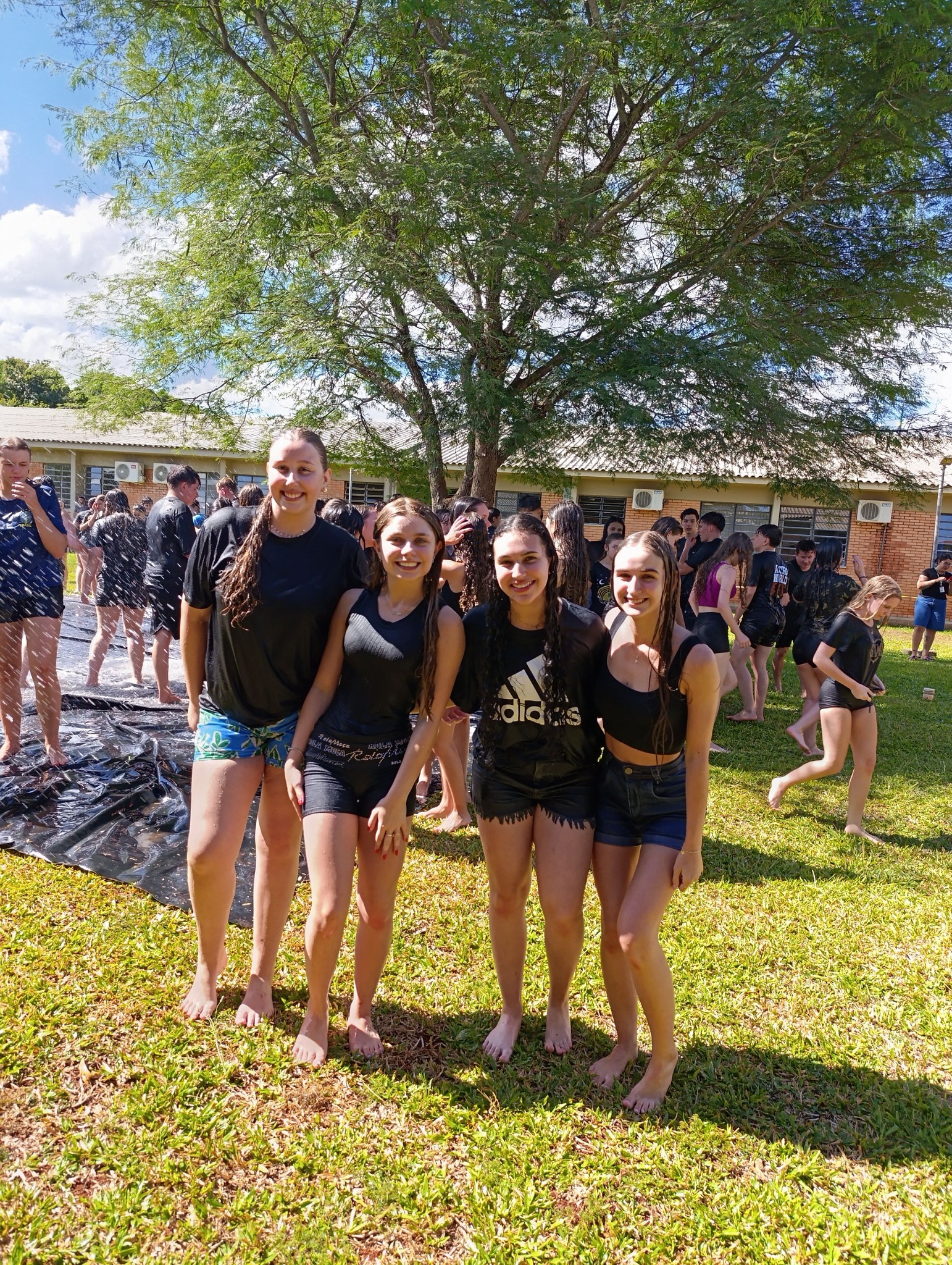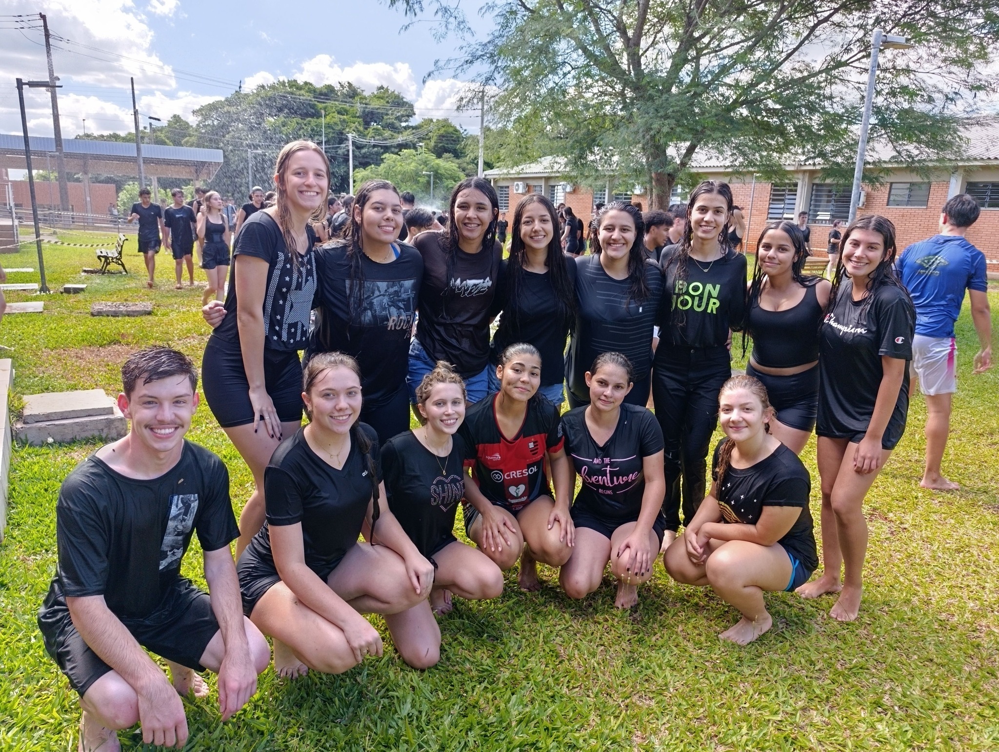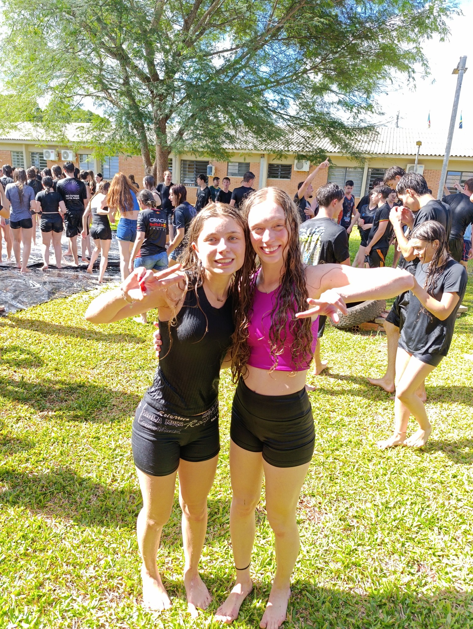 A brincadeira teve como espaço delimitado o gramado central do campus, onde foram utilizadas mangueiras para molhar aqueles que desejavam participar da festa, mas a atração principal foi o jato de água do caminhão pipa da prefeitura e a lona estendida na grama, onde era possível deslizar na água.