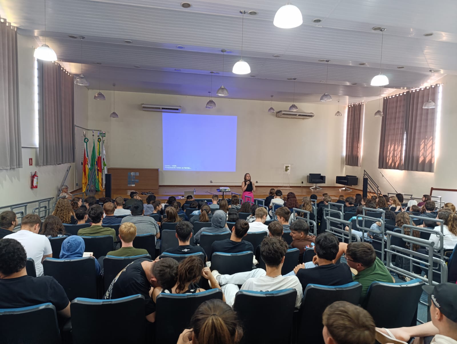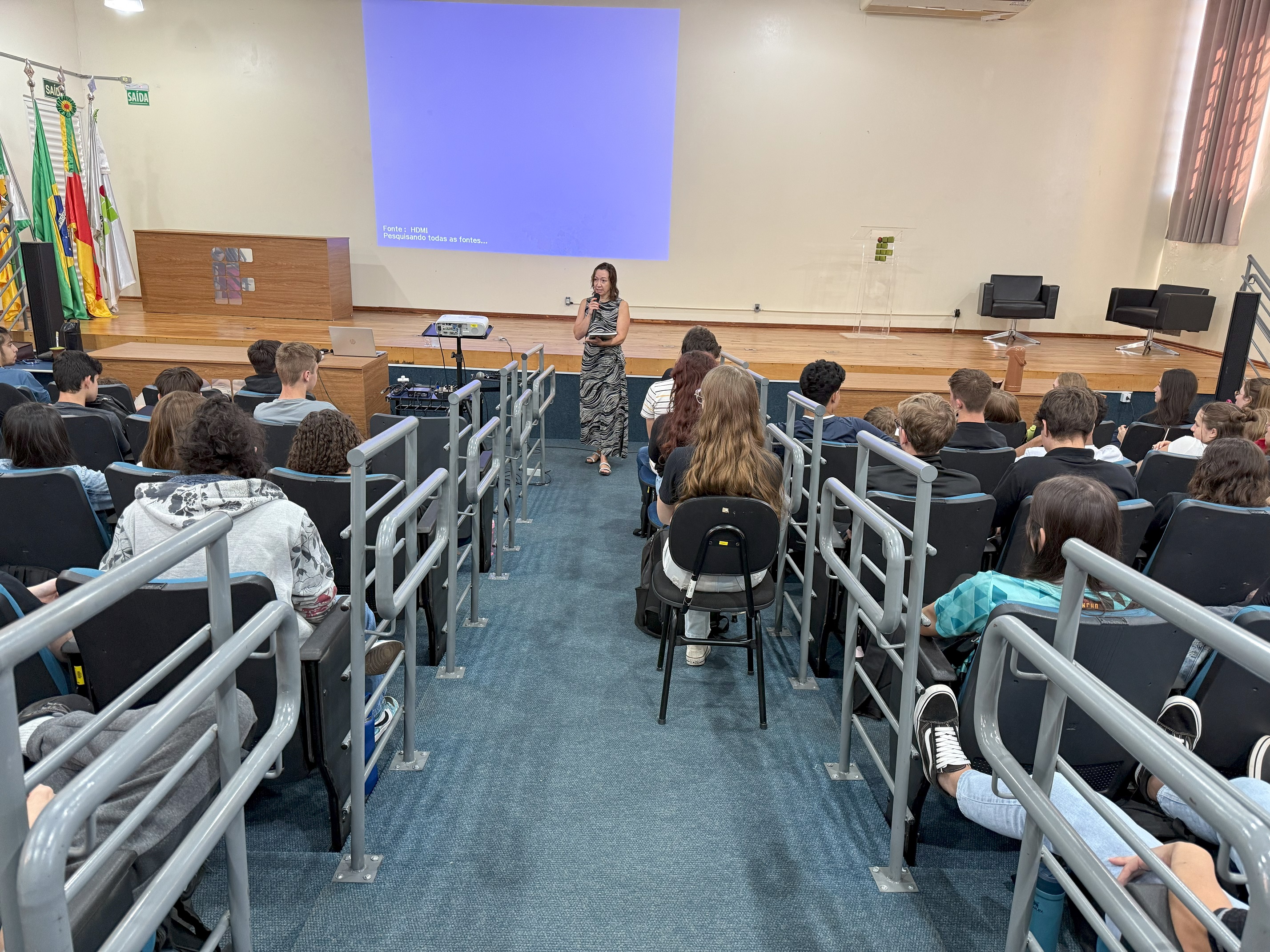 O Núcleo de Gênero e Diversidade Sexual do IFFar – Campus Santo Augusto – NUGEDIS, promoveu na manhã desta quarta-feira, dia 26 de março, palestra alusiva o Dia Internacional da Mulher, com a professora da Unijuí, Drª Joice Graciele Nielsson, para os estudantes dos 3ºs anos dos cursos técnicos integrados ao ensino médio e do 2º ano do técnico em Agropecuária e do 2º ano do técnico em Informática. À tarde a palestra foi realizada para os servidores da instituição.
