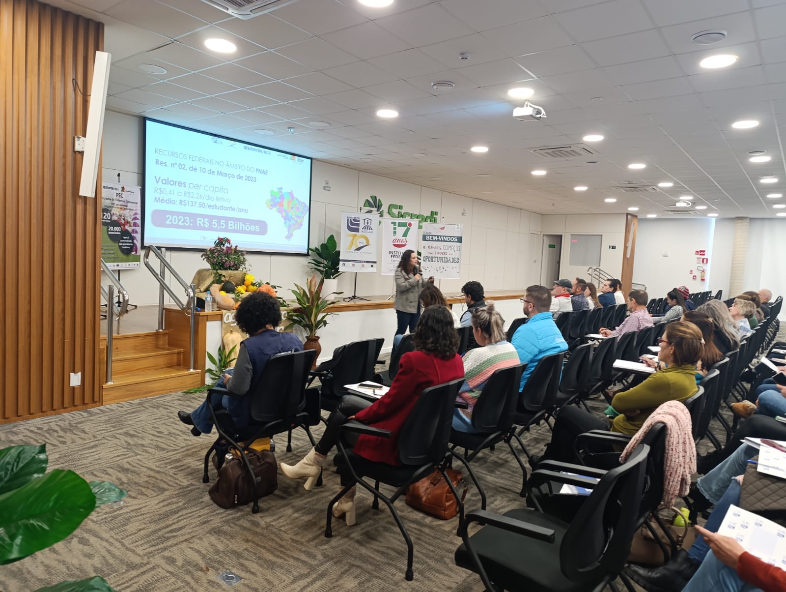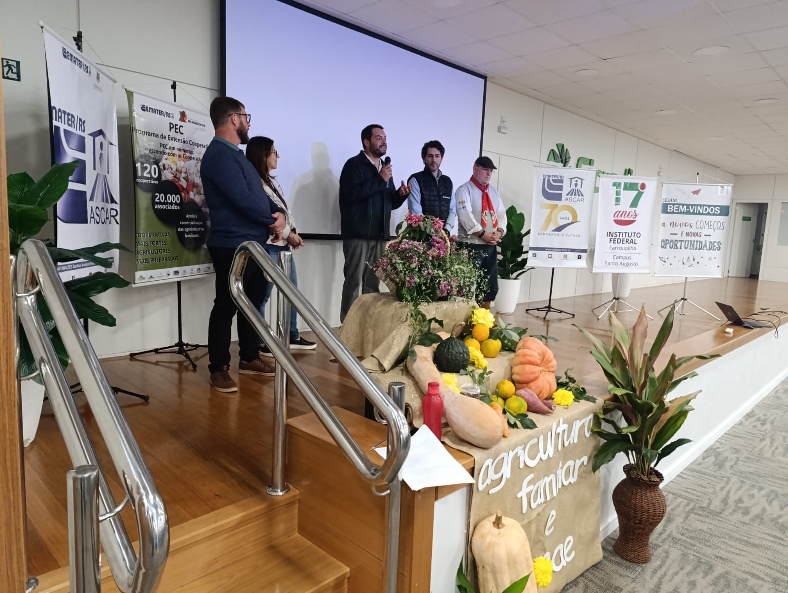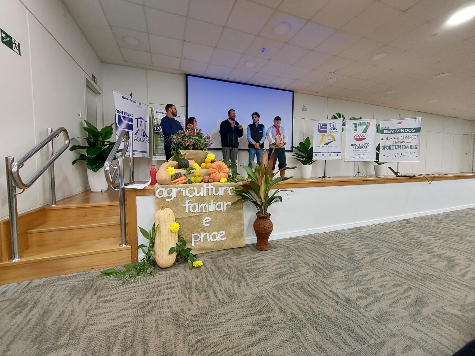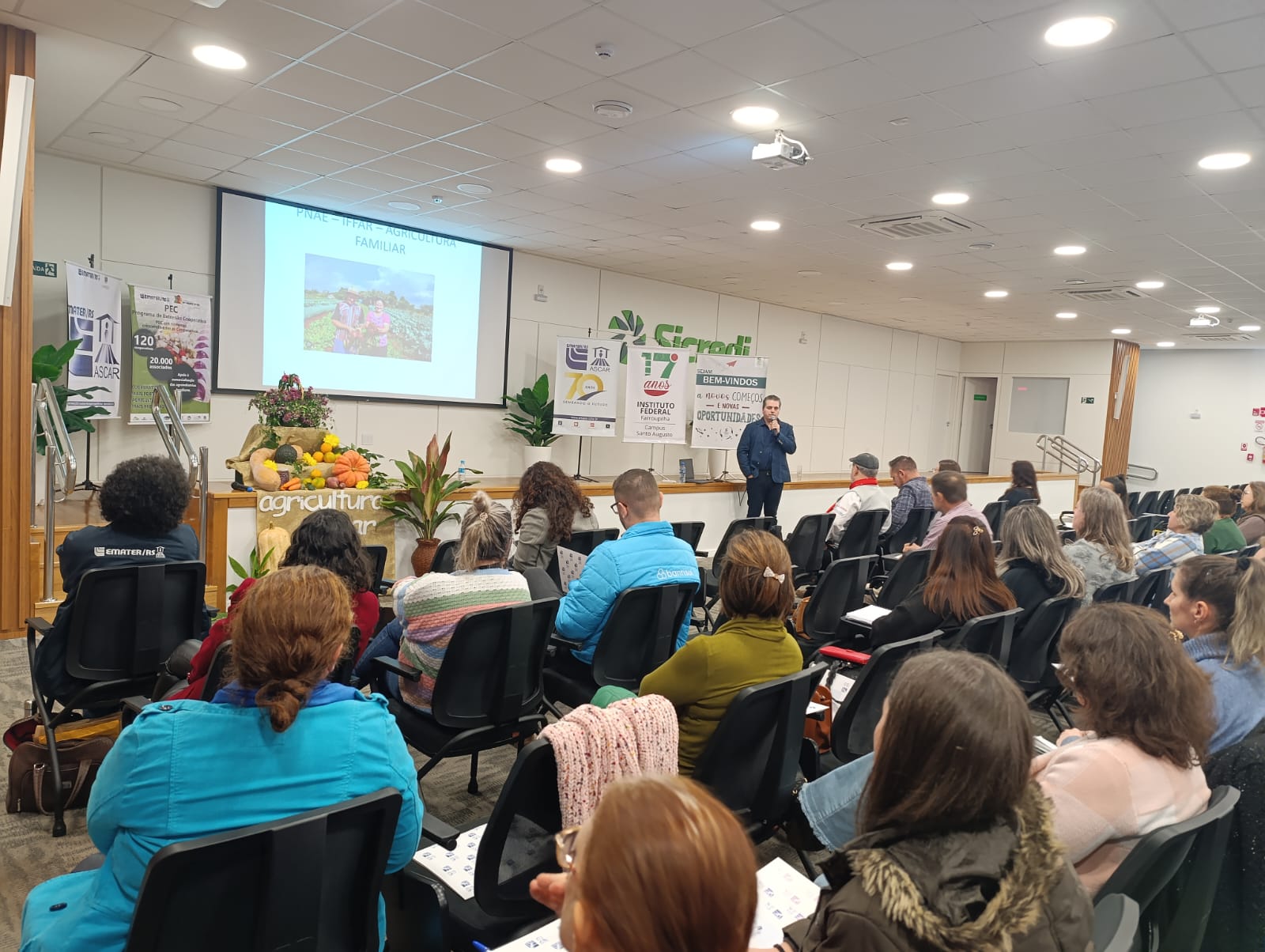 A EMATER/RS-Ascar, em parceria com o IFFar – Campus Santo Augusto e o Ministério do Desenvolvimento Agrário e Agricultura Familiar (MDA), promoveu na tarde de quarta-feira, 04 de junho, um importante Seminário Regional sobre o Programa Nacional de Alimentação Escolar (PNAE) e sua conexão com a Agricultura Familiar. O encontro reuniu agricultores, gestores públicos, estudantes e entidades da região para debater a construção de uma nova matriz produtiva de alimentos, mais sustentável, saudável e inclusiva.