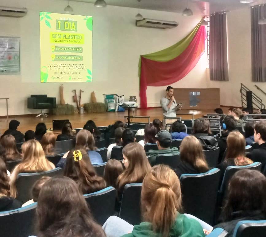O Núcleo de Gestão e Educação Ambiental - Nugea, do IFFar - Campus Santo Augusto, promoveu no dia 05 de junho, pela manhã, uma palestra alusiva ao Dia do Meio Ambiente, no auditório da instituição, para os alunos dos cursos técnicos integrados ao ensino médio.