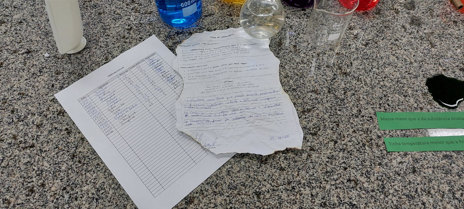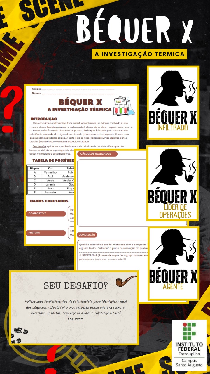 A atividade consistiu na investigação científica com abordagem de calorimetria, misturando ciência com suspense investigativo (simulação de cena de crime no laboratório), tendo como objetivo aplicar conceitos de calorimetria para resolver um caso fictício,