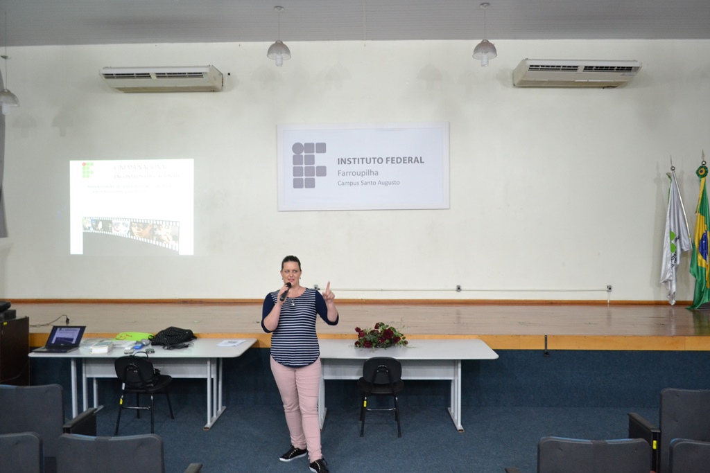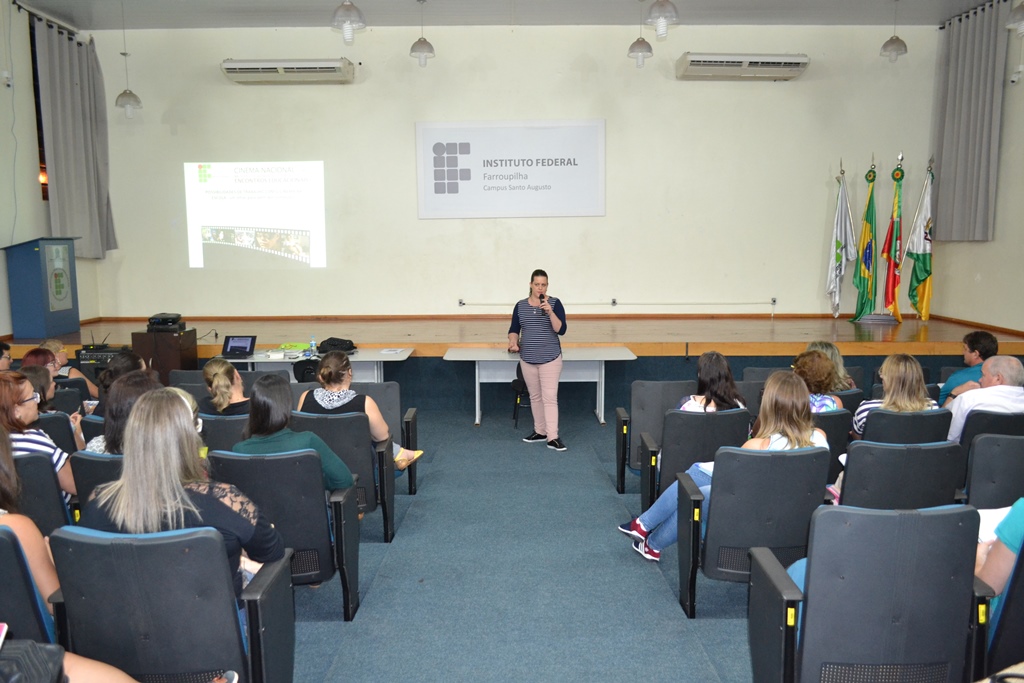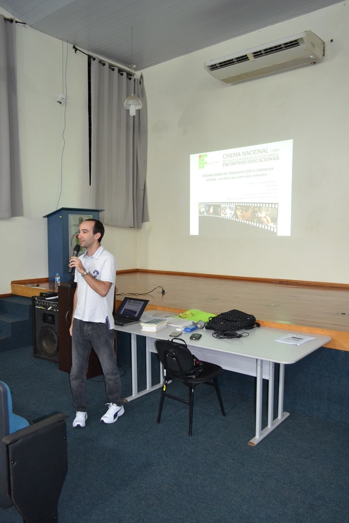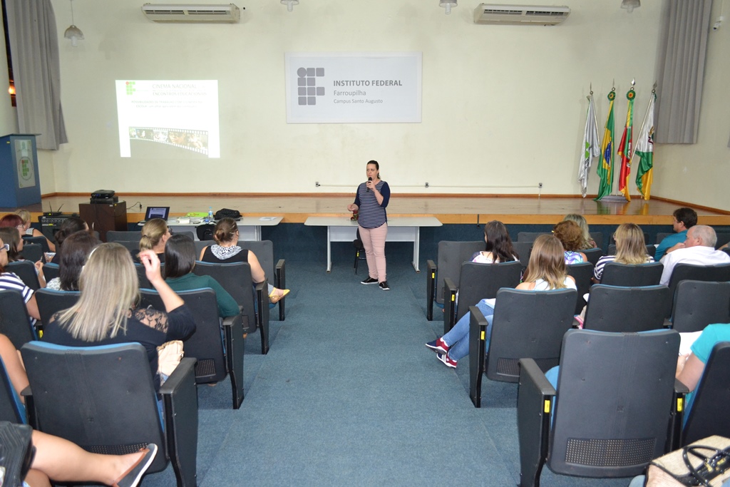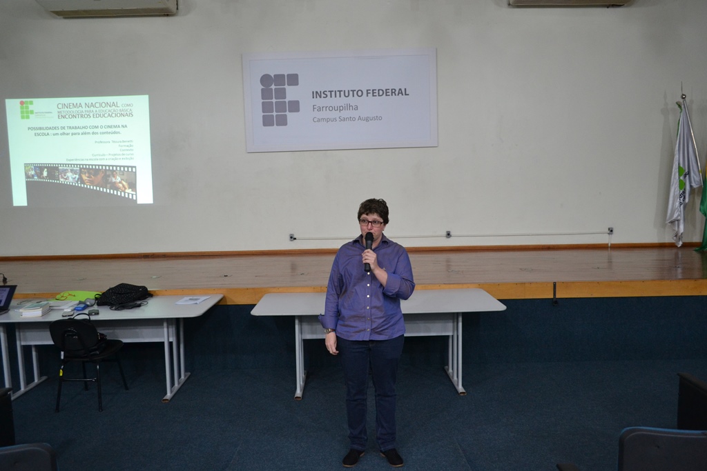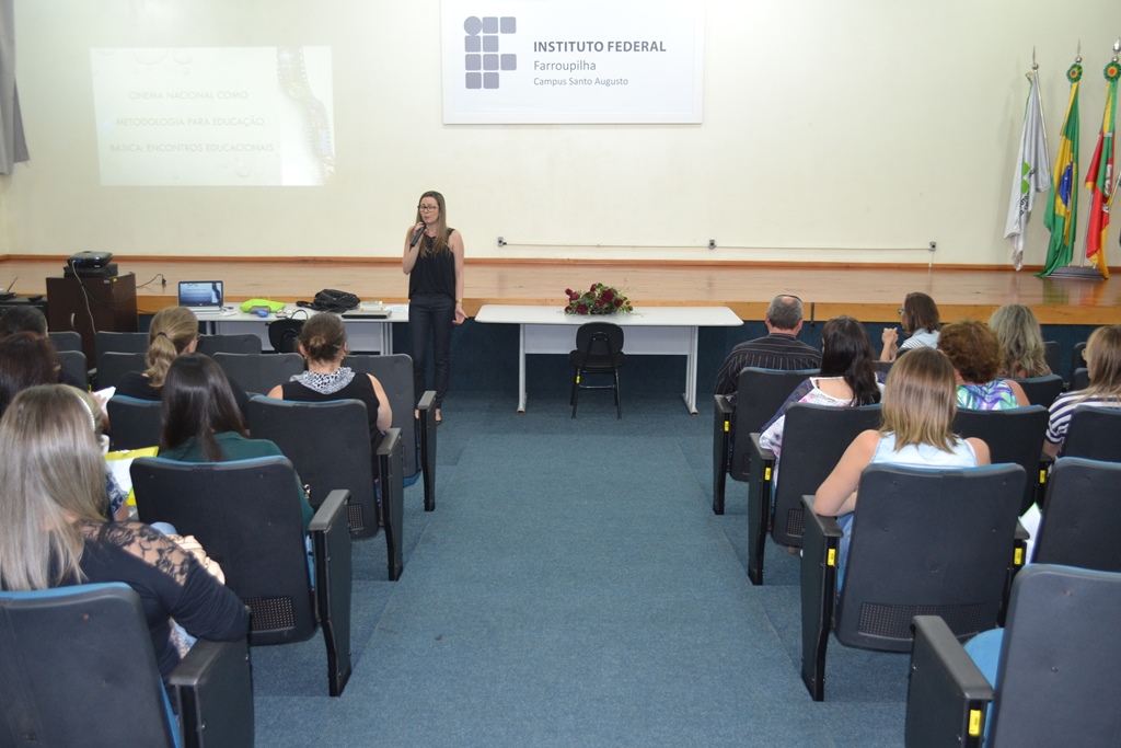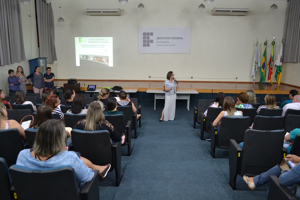 Foi realizado na noite dessa terça-feira, dia 28, no auditório do IFFar- Campus Santo Augusto, o primeiro encontro do projeto de Extensão “Cinema Nacional como Metodologia para a Educação Básica: Encontros Educacionais”. Trata-se de um curso de atualização para professores da educação básica, no qual pretende-se criar um espaço interativo, que possibilite discutir filmes nacionais, na perspectiva da (re)significação conceitual dos conteúdos escolares.