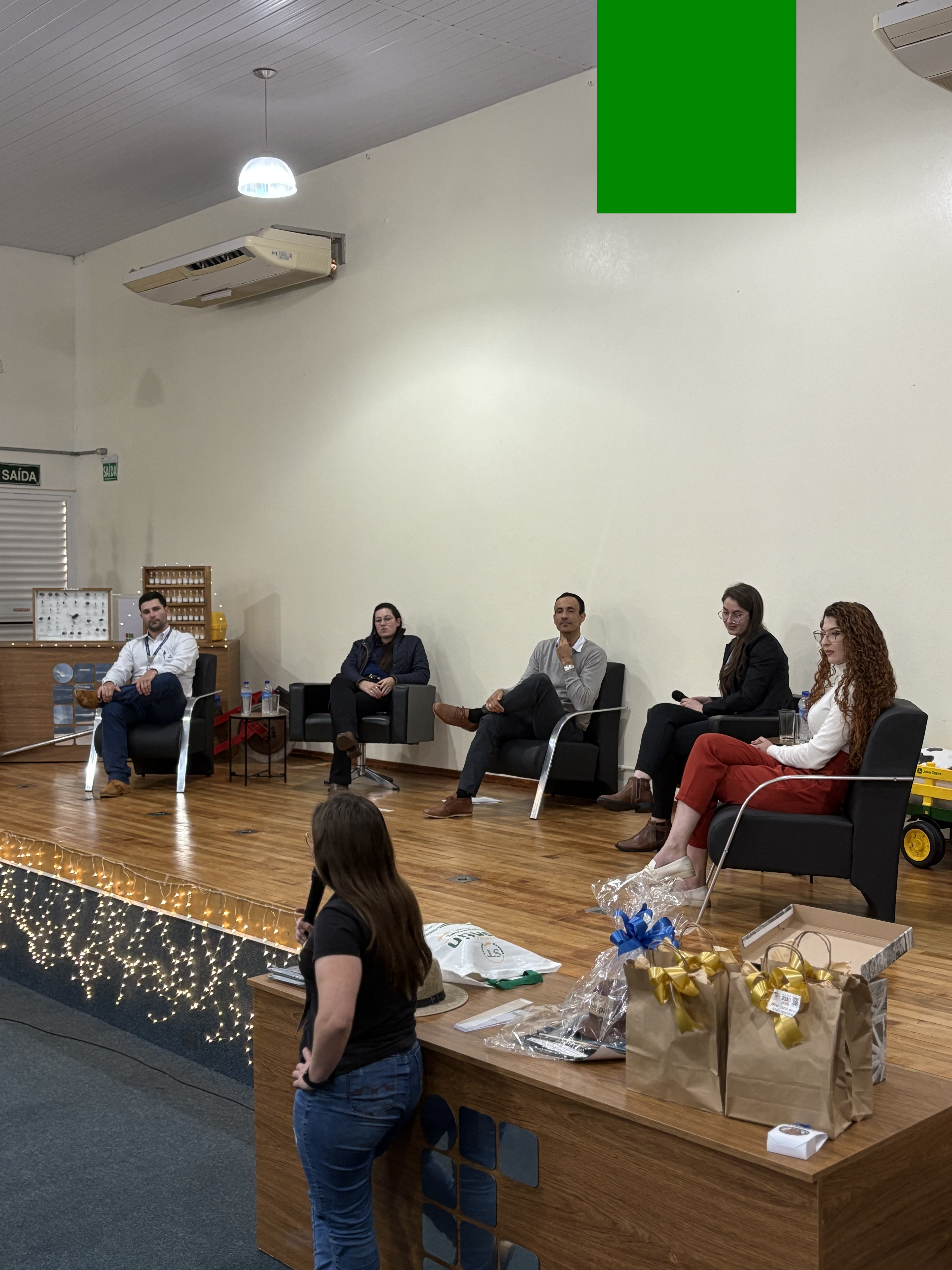 No dia 21, às 8h30, no auditório aconteceu a palestra sobre “Cenário da Cultura do trigo e contribuições no sistema produtivo", com Gabriel Kowalski, seguida pela mesa redonda, com o tema “Ih formei! Oportunidades para atuação profissional na área agrícola”, com os engenheiros agrônomos, Ester Mafalda, Cirineu Bandeira, Natália Moura Brasil (egressa) e a professora Drª Tayane Mesquita.