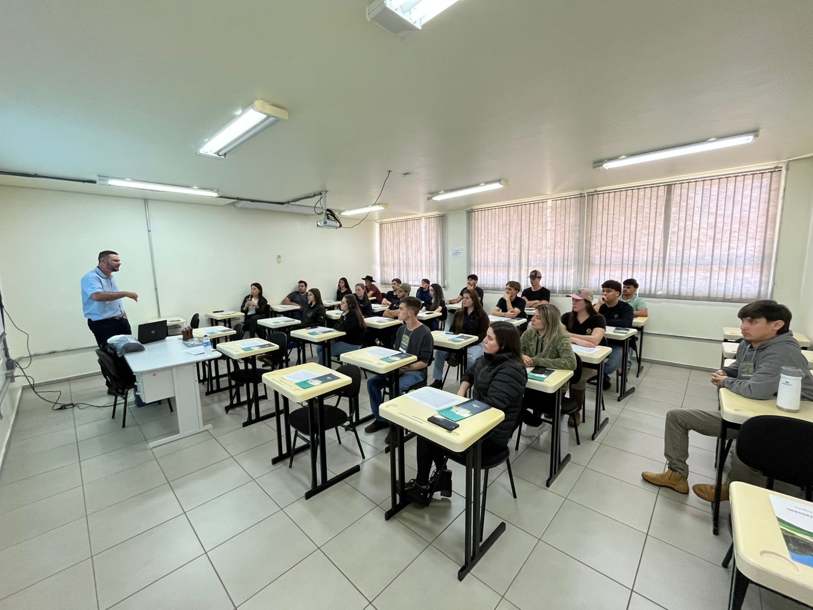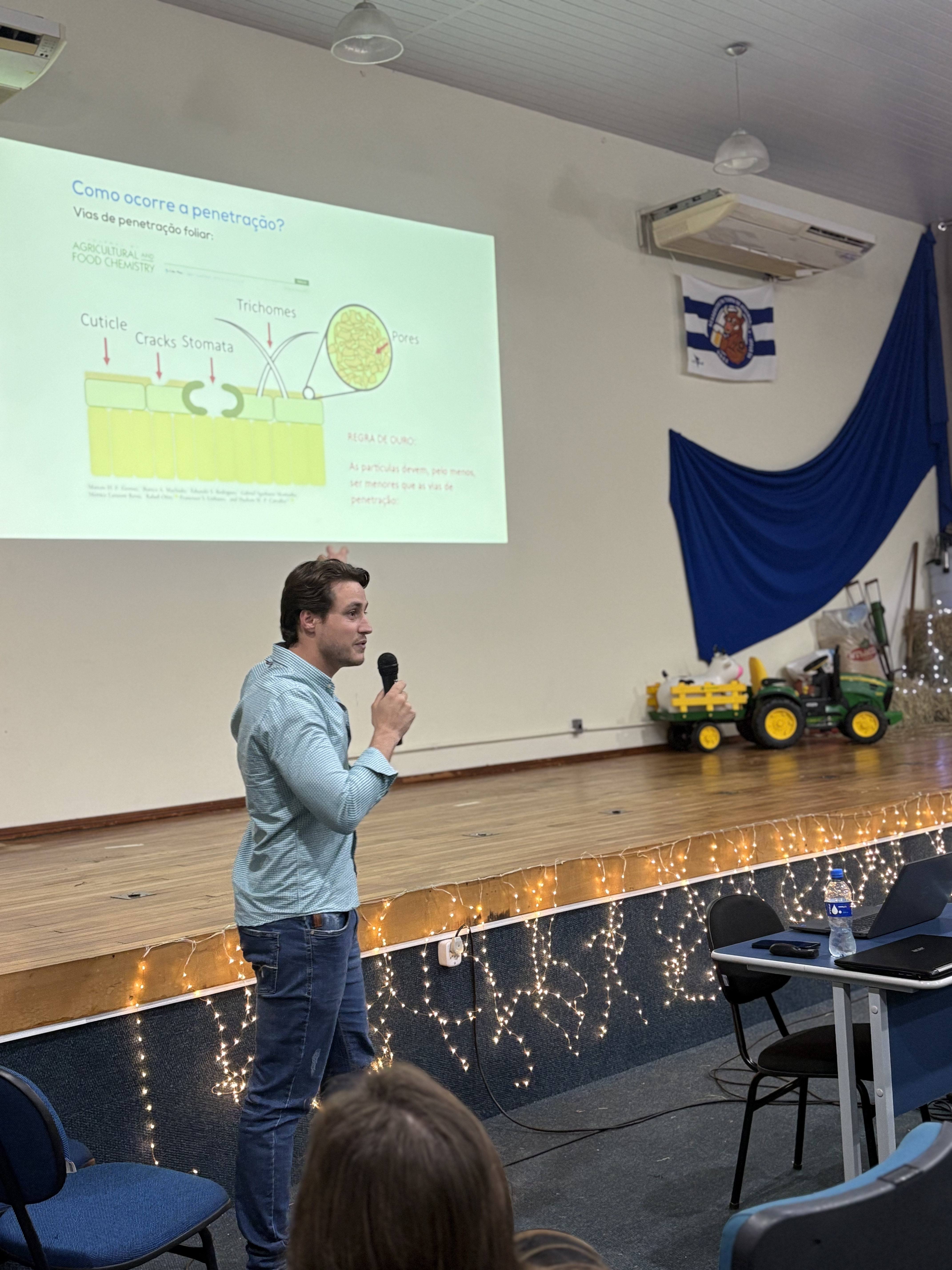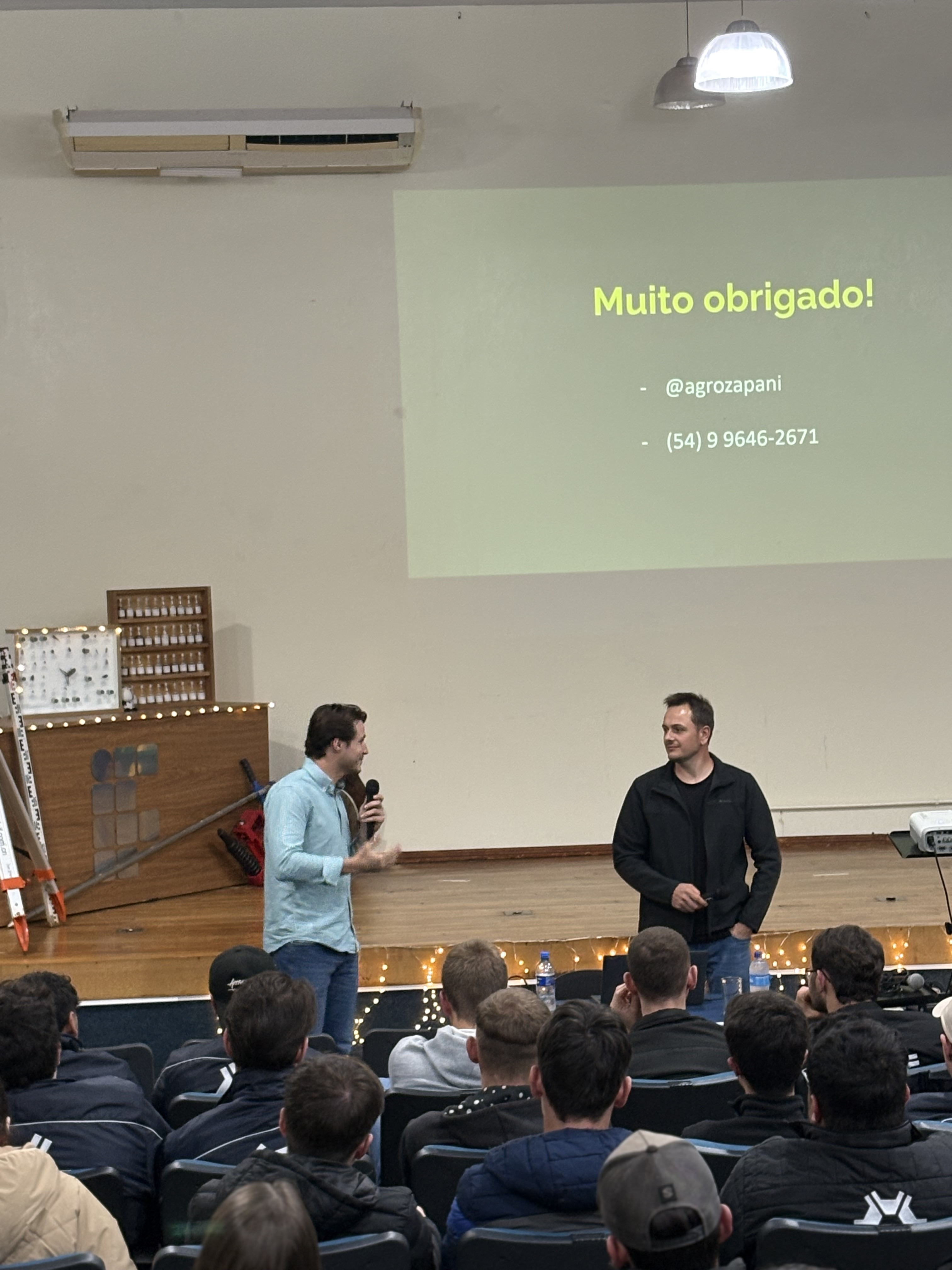O evento teve início no dia 18, às 19h30, no auditório da instituição, com a palestra sobre “Manejo assertivo de insetos – praga na cultura do milho”, com Glauber Stürmer, seguida por “Nutrição estratégica para a cultura da Soja”, com Andrei Zapani.