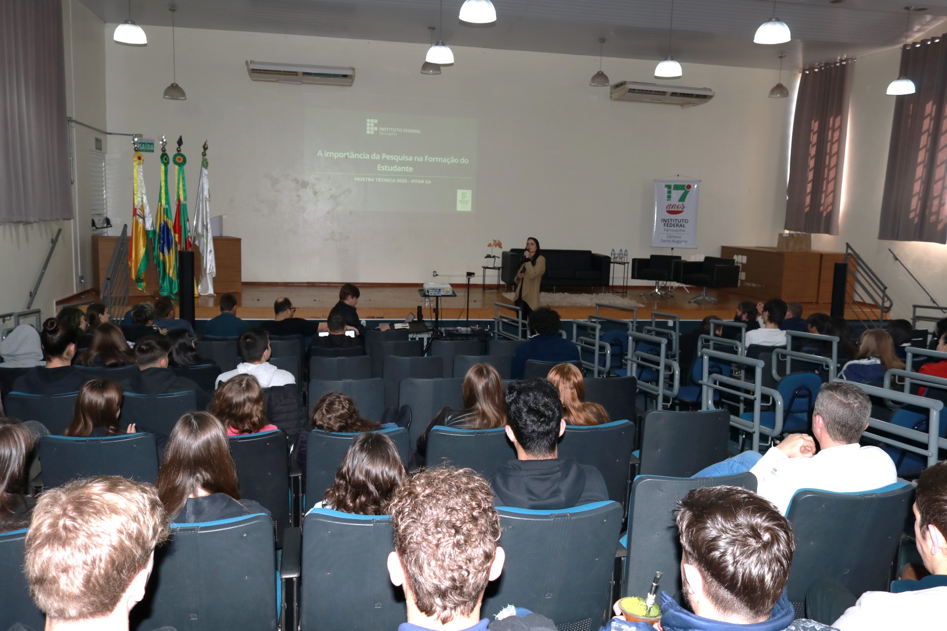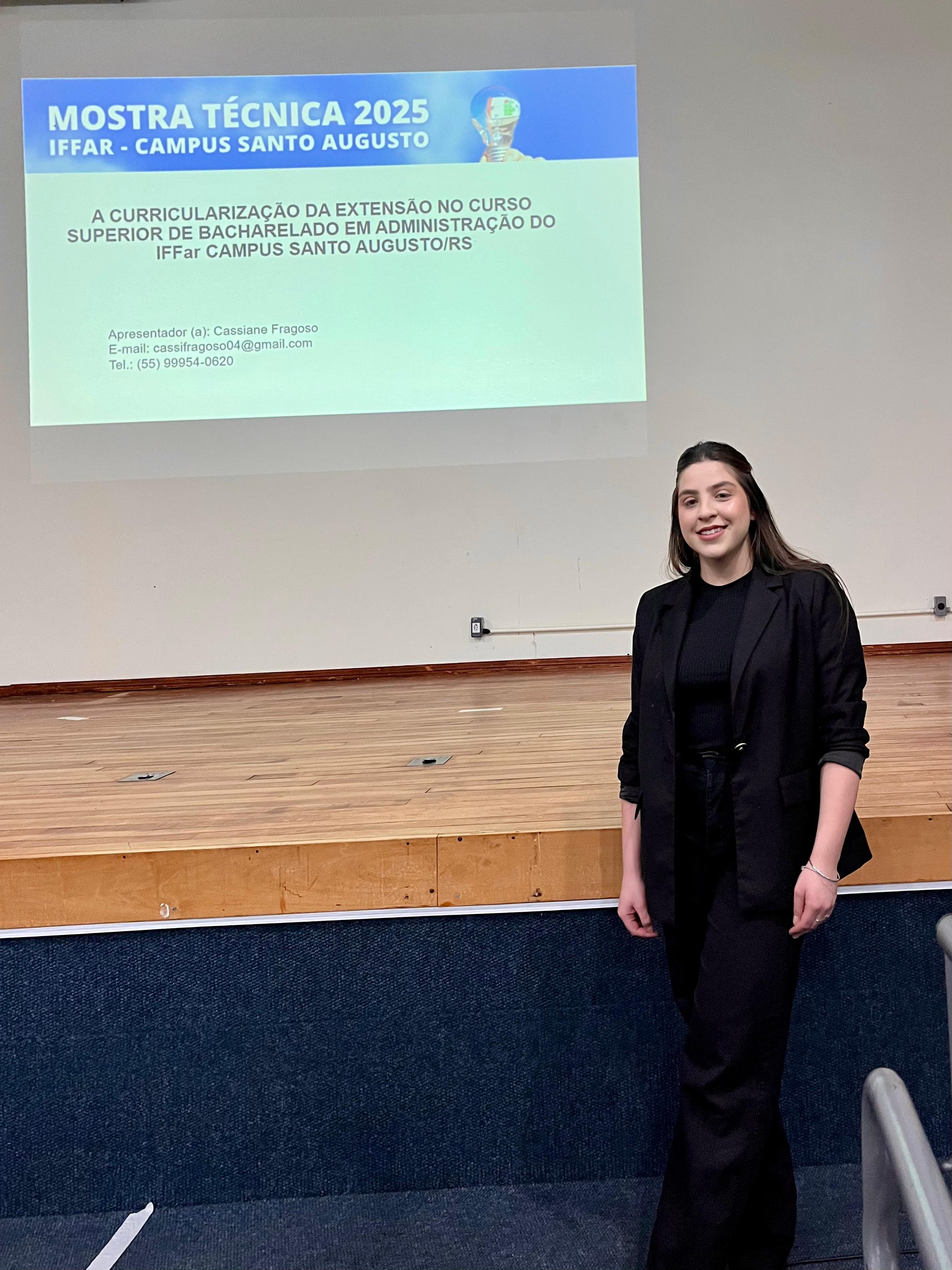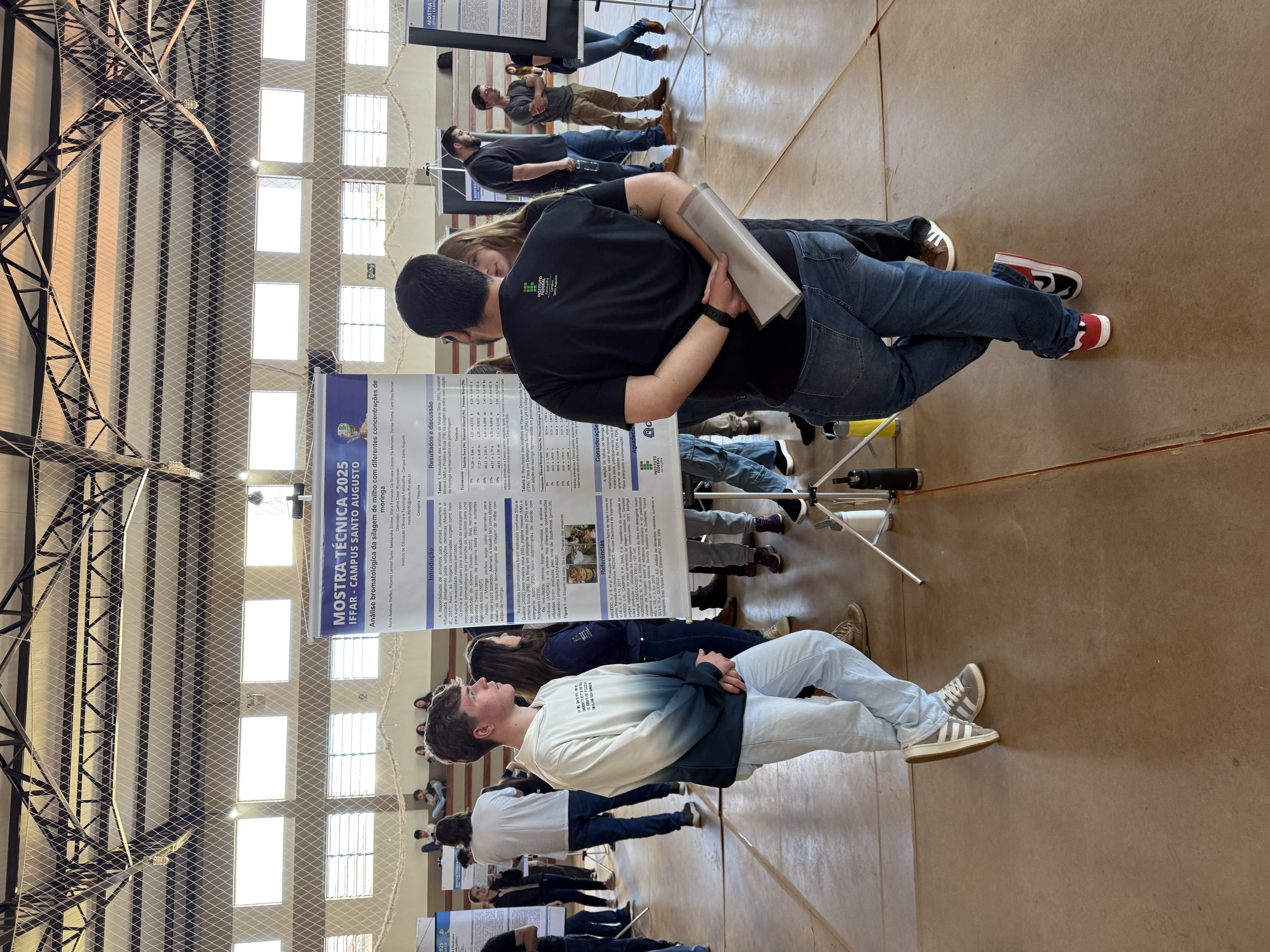 O IFFar – Campus Santo Augusto realizou no dia 28 de agosto a XIV Mostra Técnica da instituição. Nessa edição foram 90 trabalhos submetidos e avaliados nas modalidades de Ensino, Extensão, Inovação e Pesquisa, e após correções estes foram selecionadas para apresentação nas modalidades pôster no ginásio de esportes para estudantes dos cursos técnicos integrados ao ensino médio e do Bacharelado em Agronomia, e apresentação oral no turno da noite para os acadêmicos dos cursos superiores noturnos.
