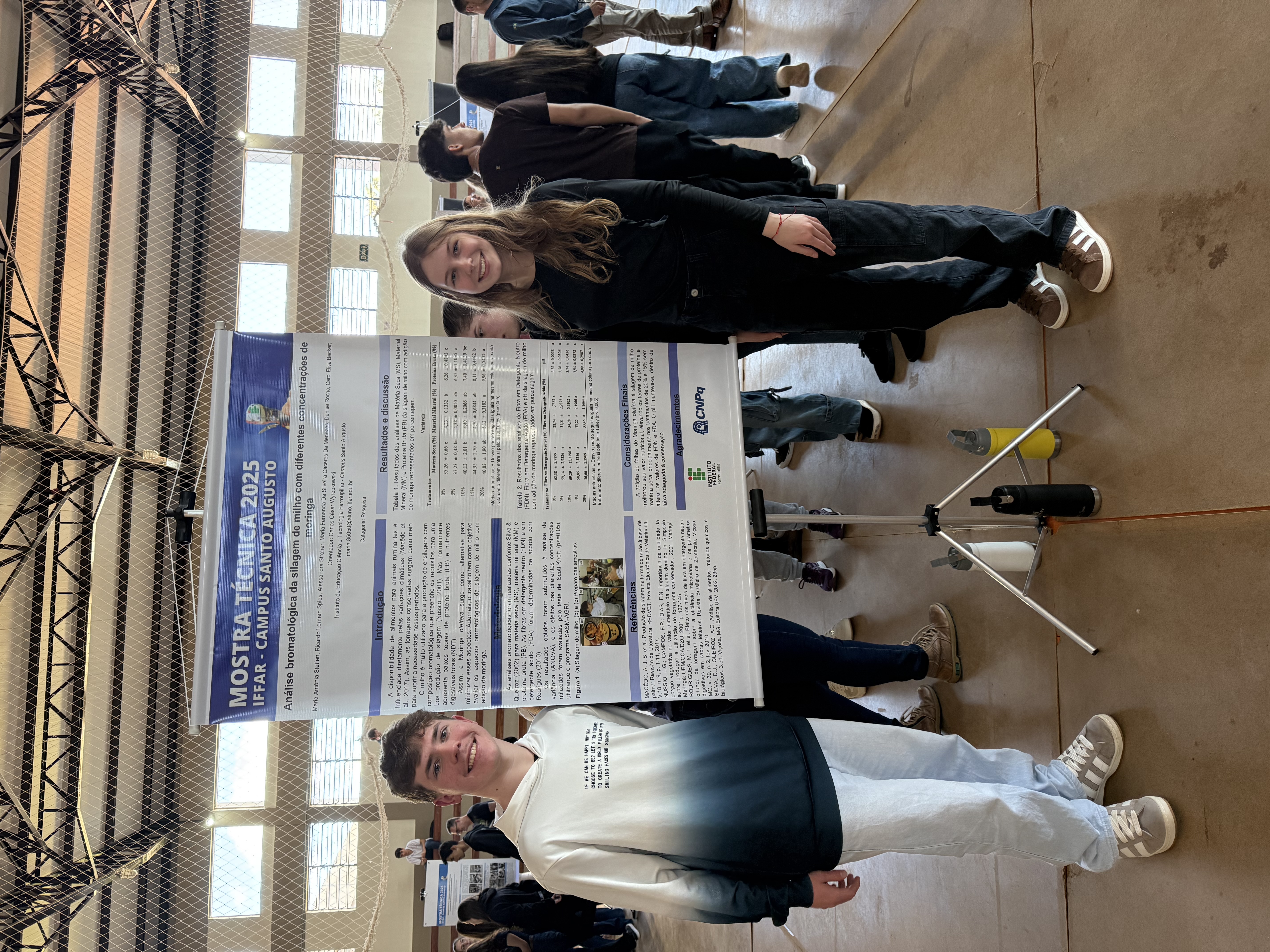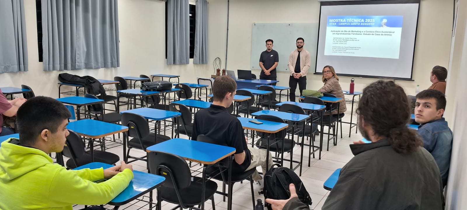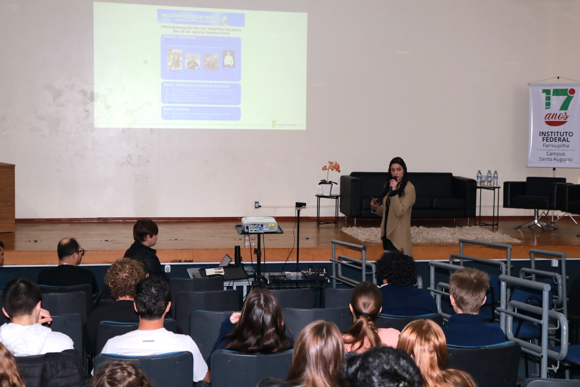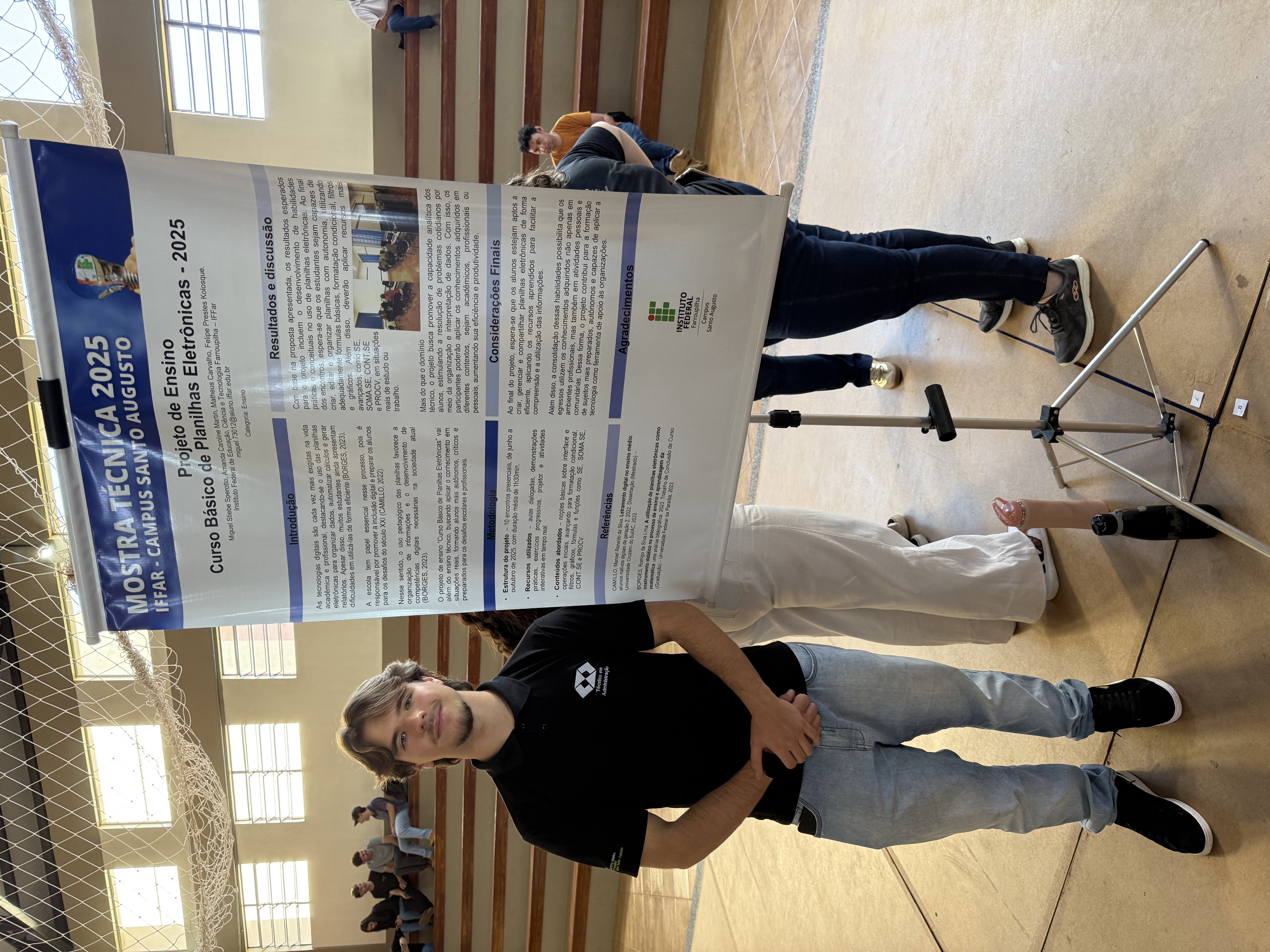 O IFFar – Campus Santo Augusto realizou no dia 28 de agosto a XIV Mostra Técnica da instituição. Nessa edição foram 90 trabalhos submetidos e avaliados nas modalidades de Ensino, Extensão, Inovação e Pesquisa, e após correções estes foram selecionadas para apresentação nas modalidades pôster no ginásio de esportes para estudantes dos cursos técnicos integrados ao ensino médio e do Bacharelado em Agronomia, e apresentação oral no turno da noite para os acadêmicos dos cursos superiores noturnos.