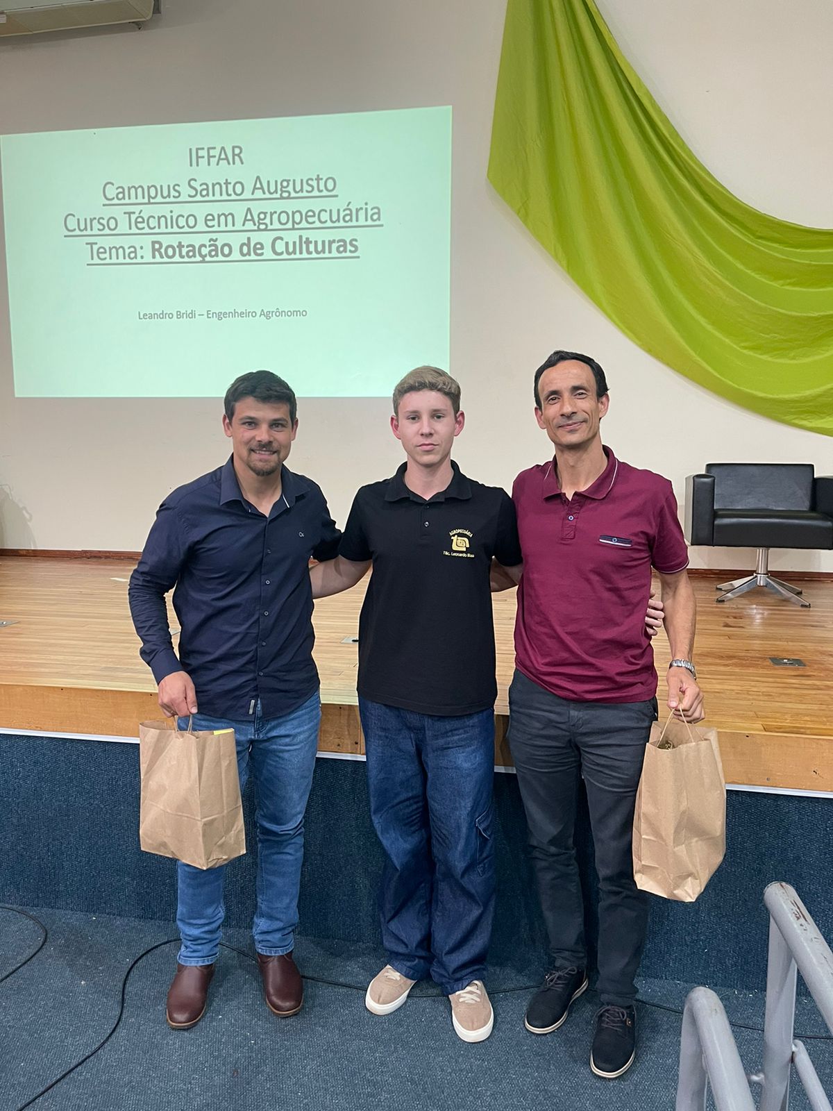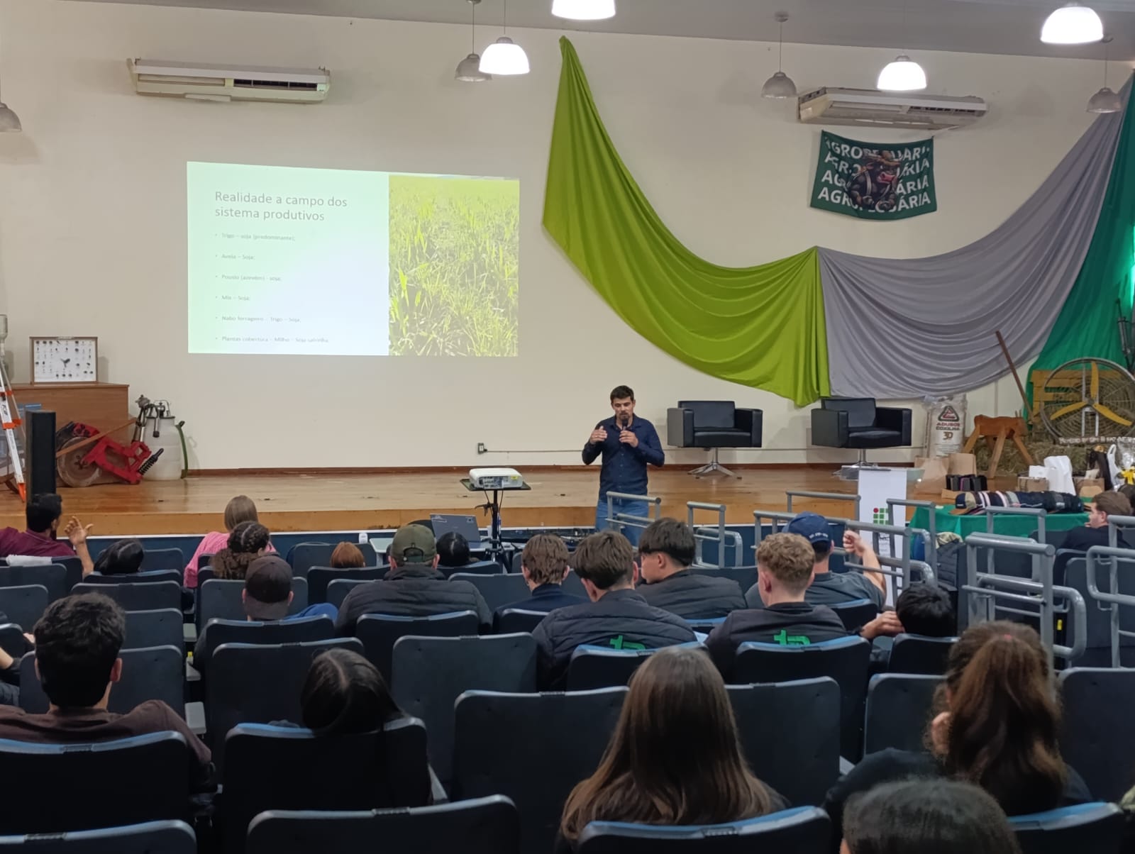 O evento teve início na segunda-feira, dia 22, às 10h, no auditório da instituição, com a palestra sobre “Prognóstico climático para os próximos meses e recomendações agronômicas”, ministrada por Sidinei Radons. À tarde, às 13h30 aconteceu a palestra com o tema “Do asfalto à estrada de terra: descobrindo propósito no agro”, ministrada por Mateus Strada, seguida pela palestra sobre Rotação de Culturas, com Leandro Bridi.