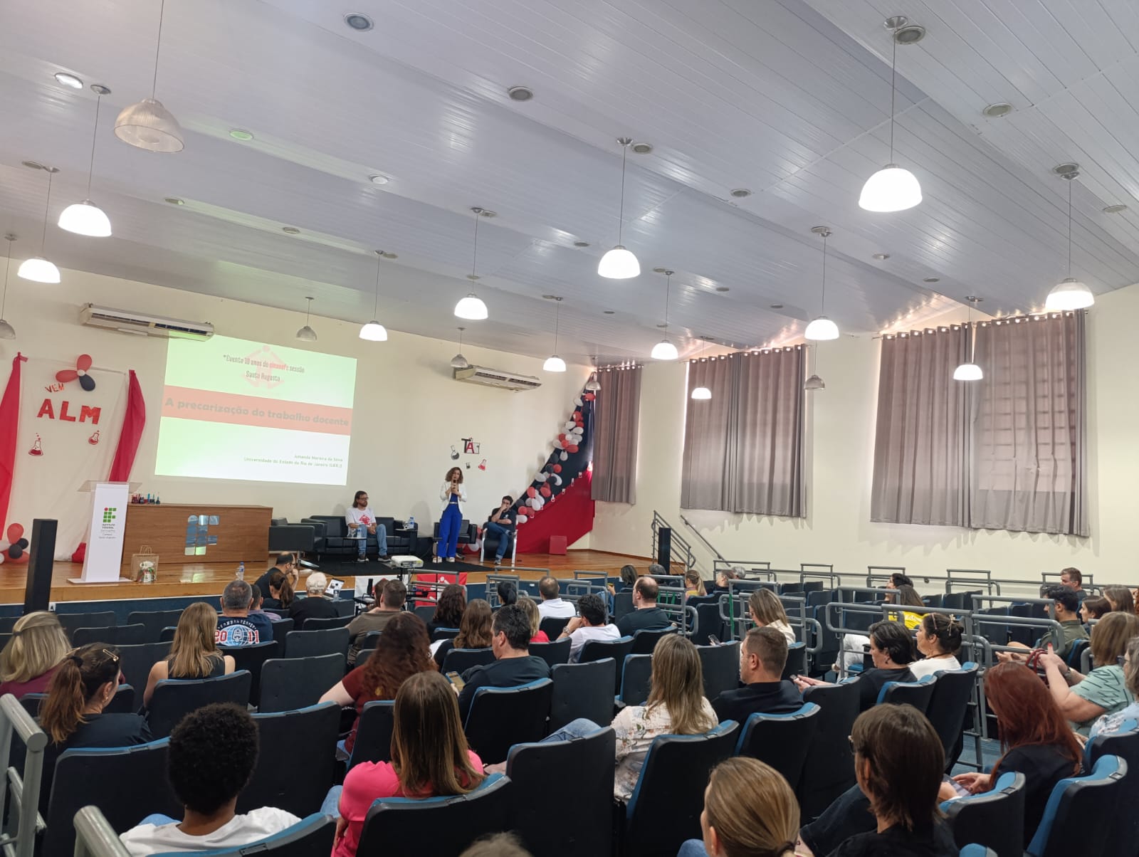 Na ocasião, foram realizadas as palestras sobre “A Precarização do Trabalho Docente" ministrada pela Dra. Amanda Moreira (UERJ) e "O Papel do Sindicato no Serviço público" ministrada pelo Dr. Manoel Porto (IFSul - Pelotas), sob a mediação do professor Dr. Maurício Azevedo (IFFar - SA).