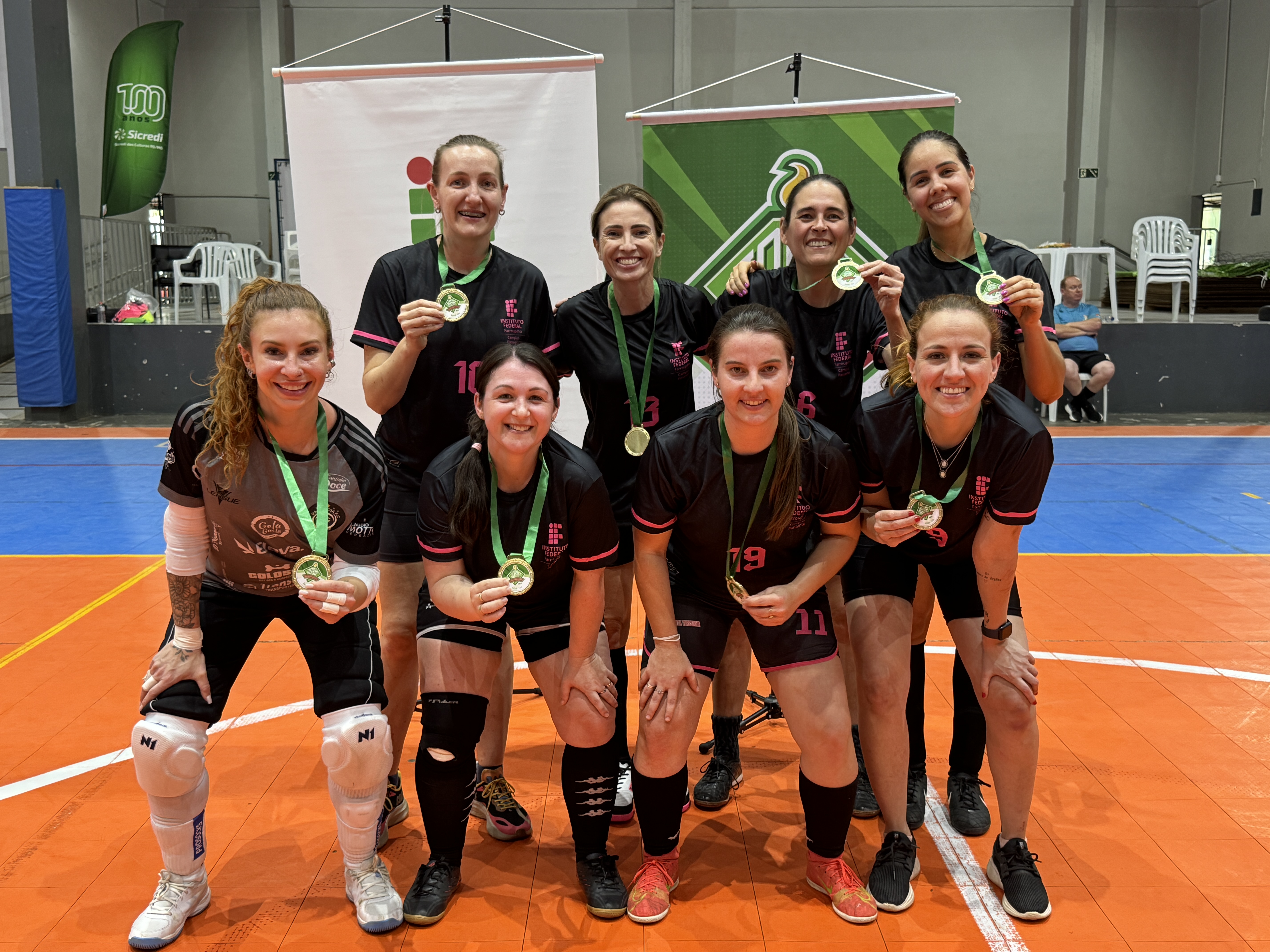 A professora Thamara Luísa Staudt Schneider, integrou a equipe de Futsal feminino do Campus Panambi e conquistou a medalha de 1º lugar com a equipe da casa.