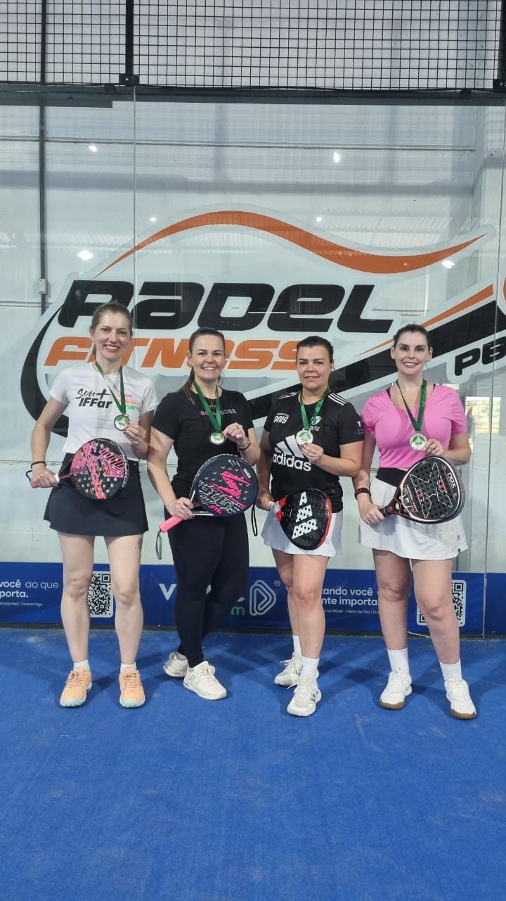 Lizandra Forgiarini Lucca e Edna Nunes Gonçalves 2º lugar no padel e Giovana Kafer e Tatiane Storch 3º lugar no padel
