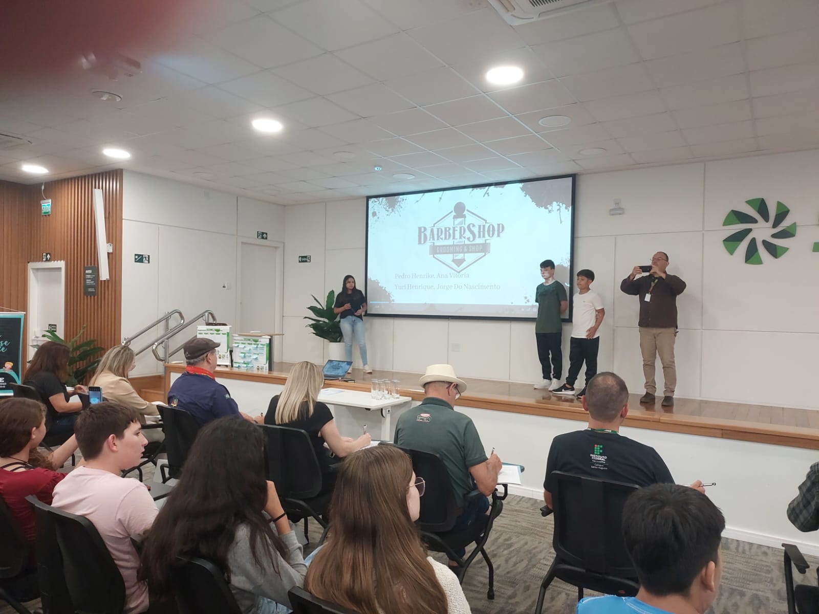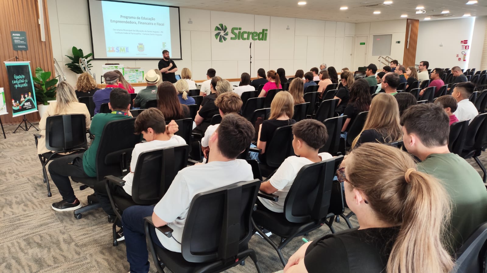 Na ocasião, seis grupos de estudantes do 8º ano das escolas municipais apresentaram suas ideias de empreendimento, resultado do trabalho coletivo orientado pelas temáticas de empreendedorismo, matemática financeira e educação fiscal. Cada grupo teve até 5 minutos para apresentar sua proposta de negócio sobre produtos ou serviços que não são ofertados em Santo Augusto.