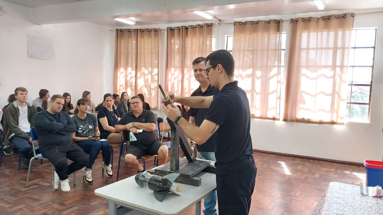 A atividade realizada envolveu o projeto de ensino “Foguetes de Garrafas PET”, coordenado pelo professor Carlos Wyrepkowski e contou com a participação do aluno do 3º ano do técnico em Administração, Higor Bueno e do acadêmico de Licenciatura em Computação, Luan Delaflora Guth.
