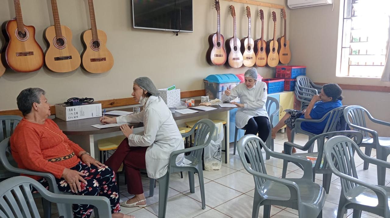 Na tarde de terça-feira, 16 de dezembro, foi realizada uma ação do projeto, no Centro de Referência em Assistência Social – CRAS Carmen Maria Andrighetto, onde as cirurgiãs-dentistas, Débora Cristina Speroni, Cristiane Maria Speroni e Elis Regina Agnes Weiller, realizaram exames de diagnósticos com integrantes do grupo de idosos.