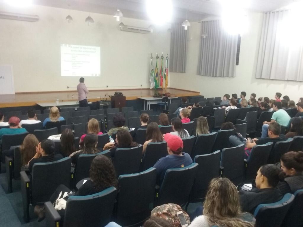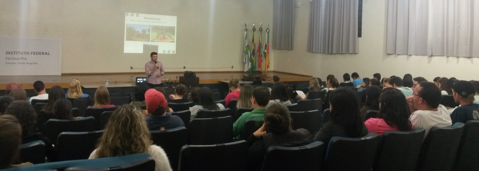 A palestra, ministrada pelo biólogo Alexandre Hüller, do Balcão de Licenciamento Ambiental Unificado de Santa Rosa, órgão da Secretaria Estadual do Meio Ambiente, foi destinada para os alunos do Curso Superior de Tecnologia em Agronegócio, da Licenciatura em Biologia e do Técnico em Agroindústria na modalidade PROEJA.