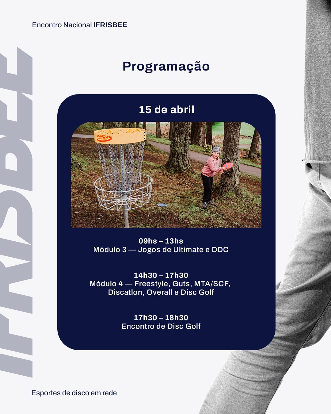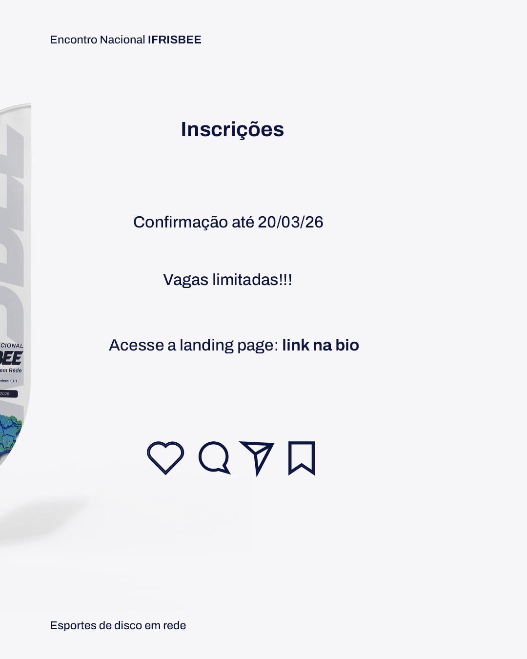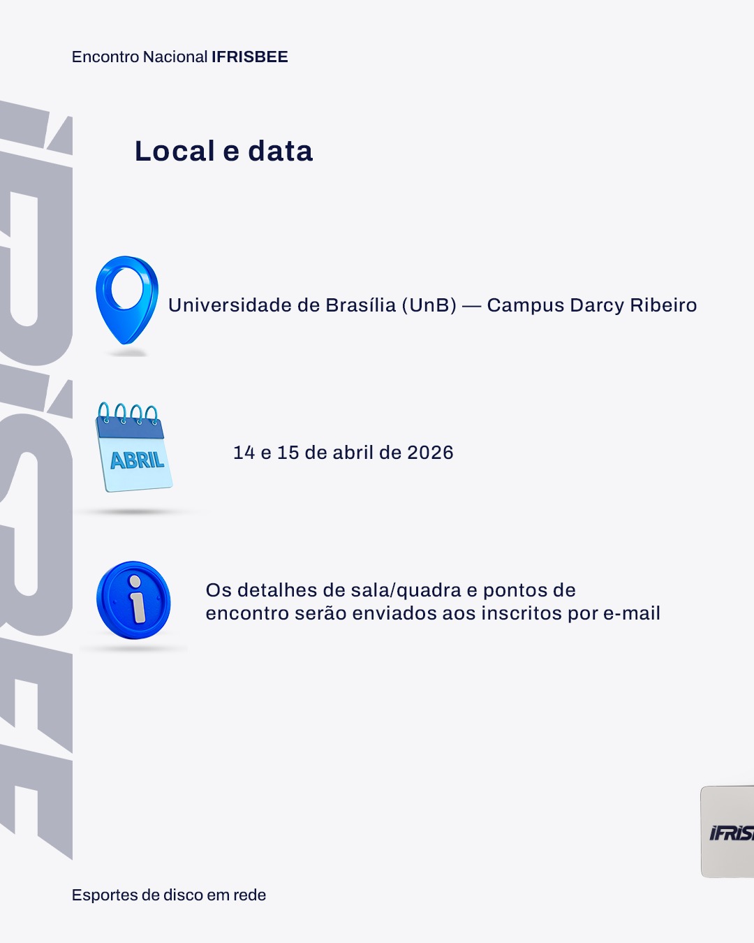 As inscrições para o evento podem ser feitas até dia 20 de março, pelo site https://ifrisbee.com.br/evento/. As vagas são limitadas.