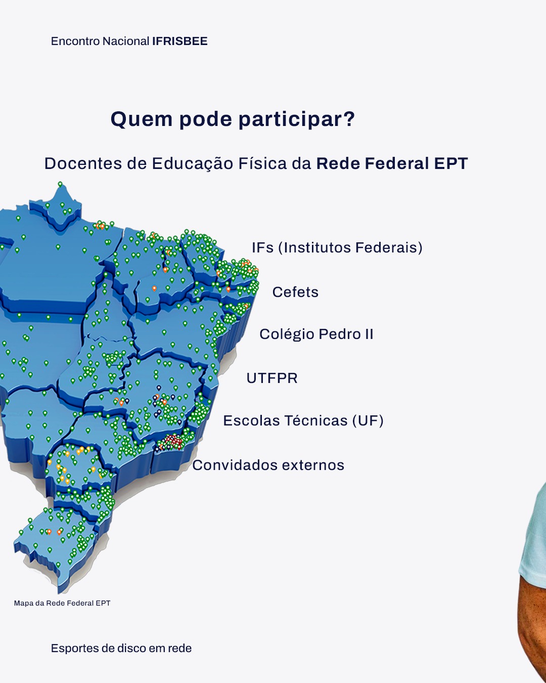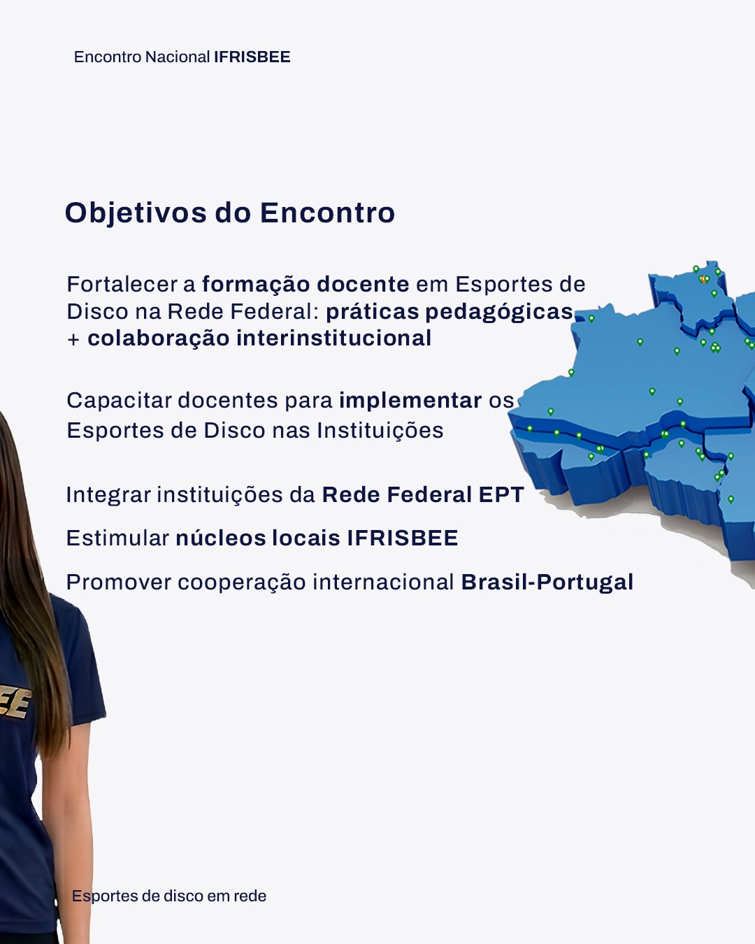 O encontro, com certificação de 16h, será voltado para docentes de Educação Física da Rede Federal de Educação Profissional, Científica e Tecnológica (EPT), com foco em formação docente, práticas pedagógicas e colaboração interinstitucional, a partir dos Esportes de Disco.